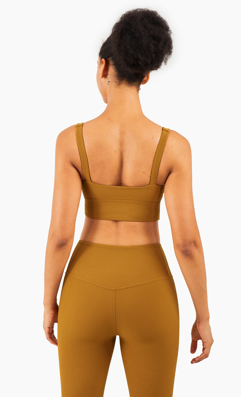 Womens deep U neck rib sports bras fitness sling straps fitness training workout running crop top