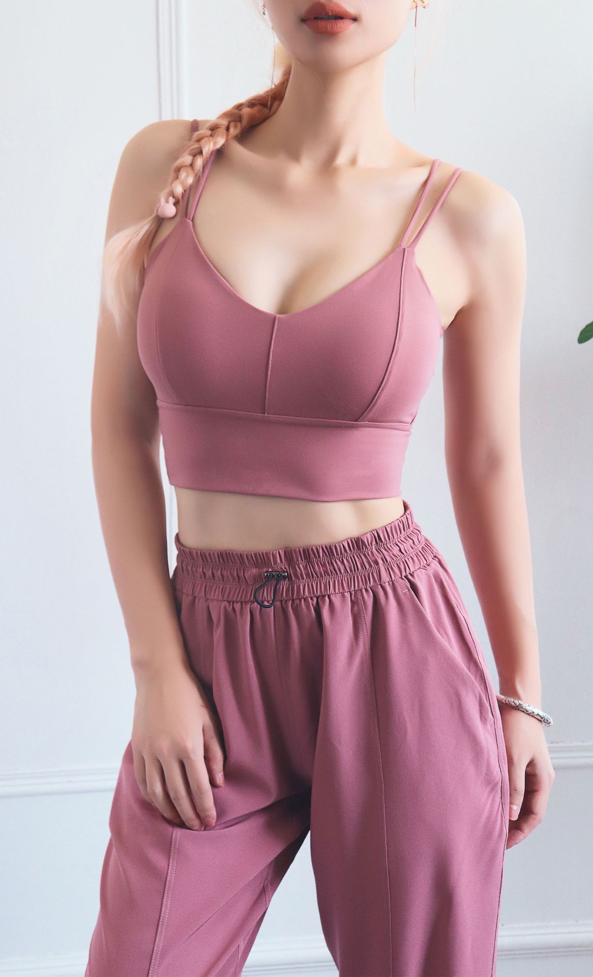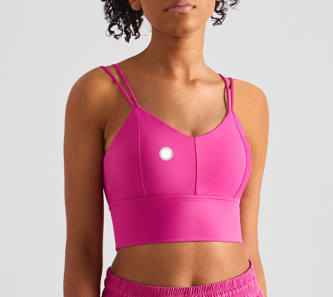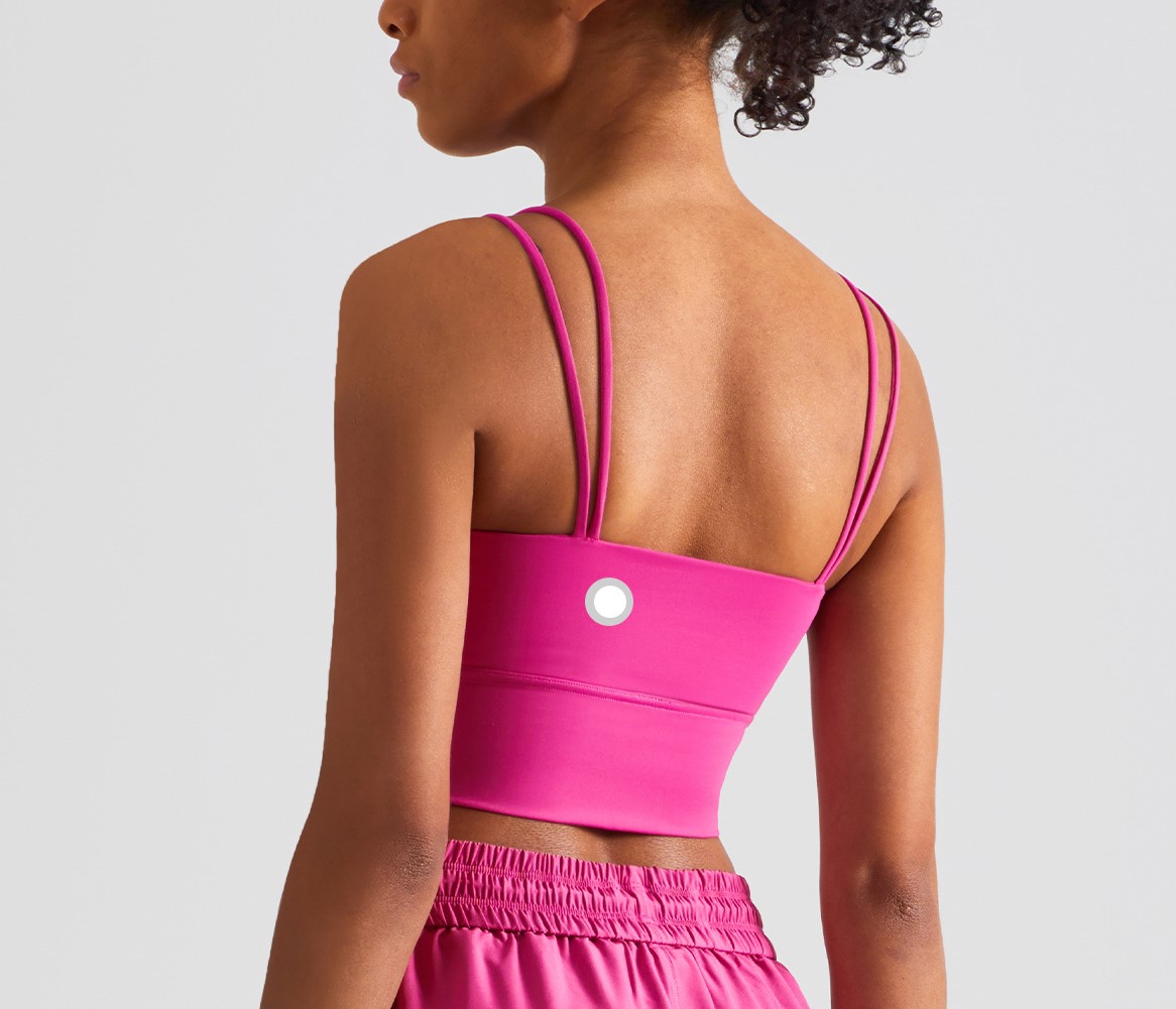 Womens deep V neck yoga sports bras double spaghetti straps gym workout running athletic top