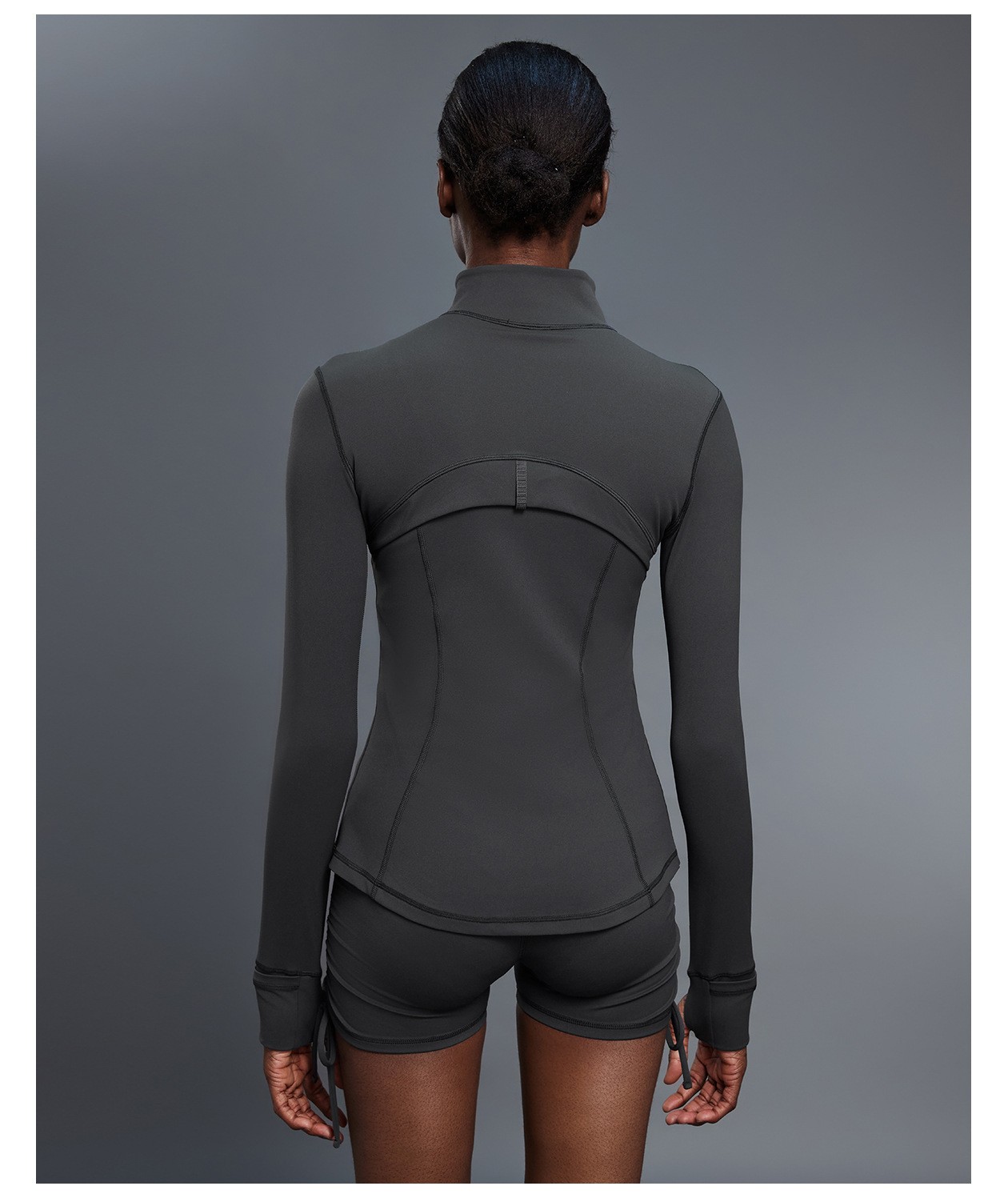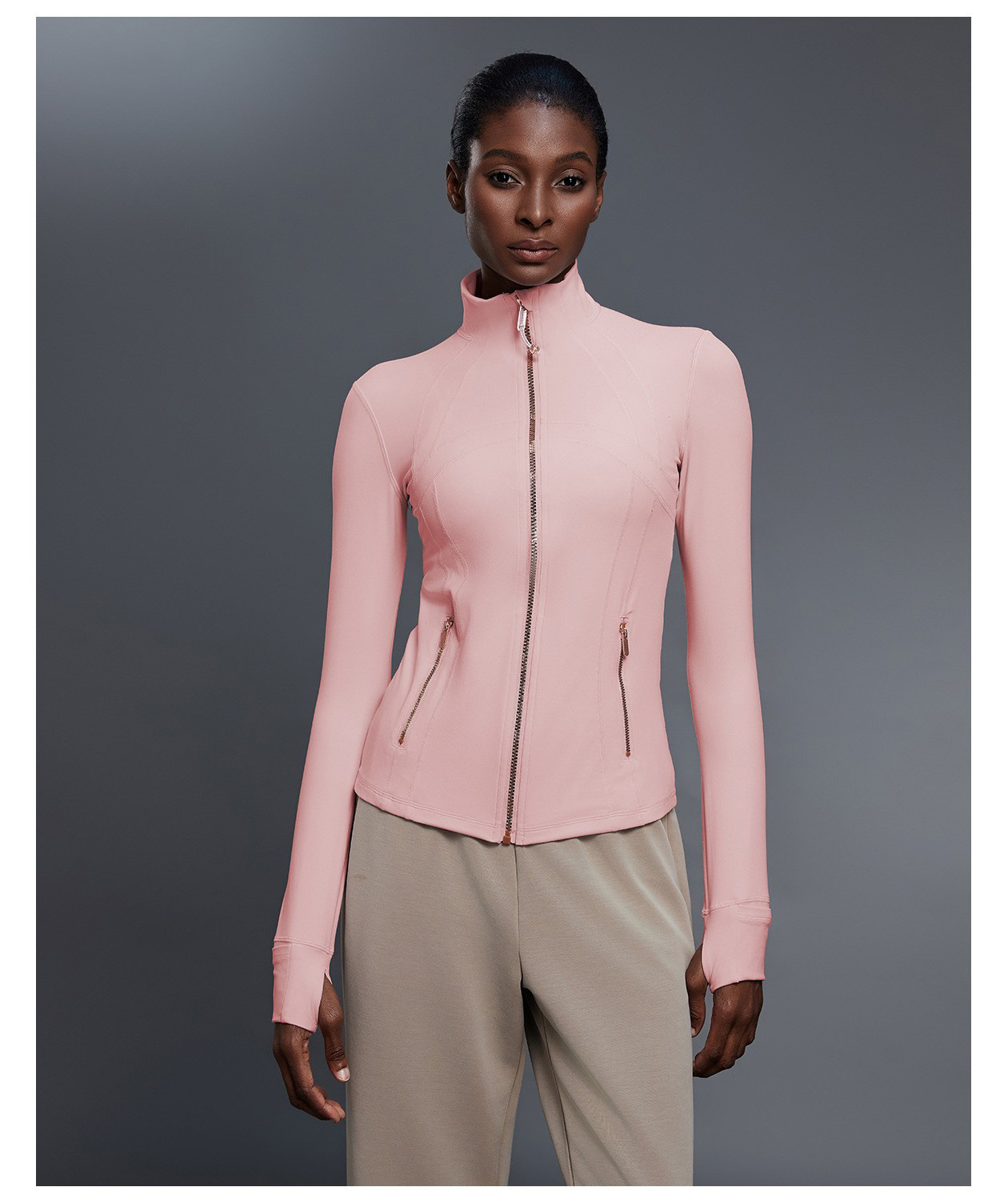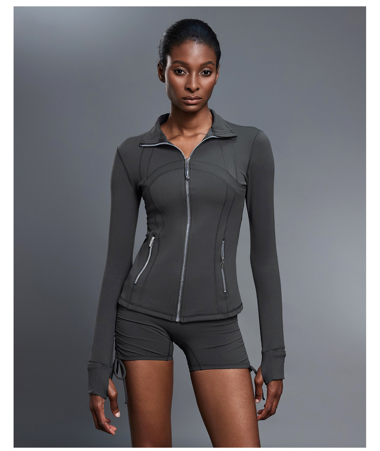 Omi Apparel’s fall yoga jacket for women: long sleeve, stretchy & slim-fit. Perfect for outdoor running, yoga & fitness. Breathable, figure-flattering and warm. Factory-direct bulk customization, blending comfort and style for autumn workouts.