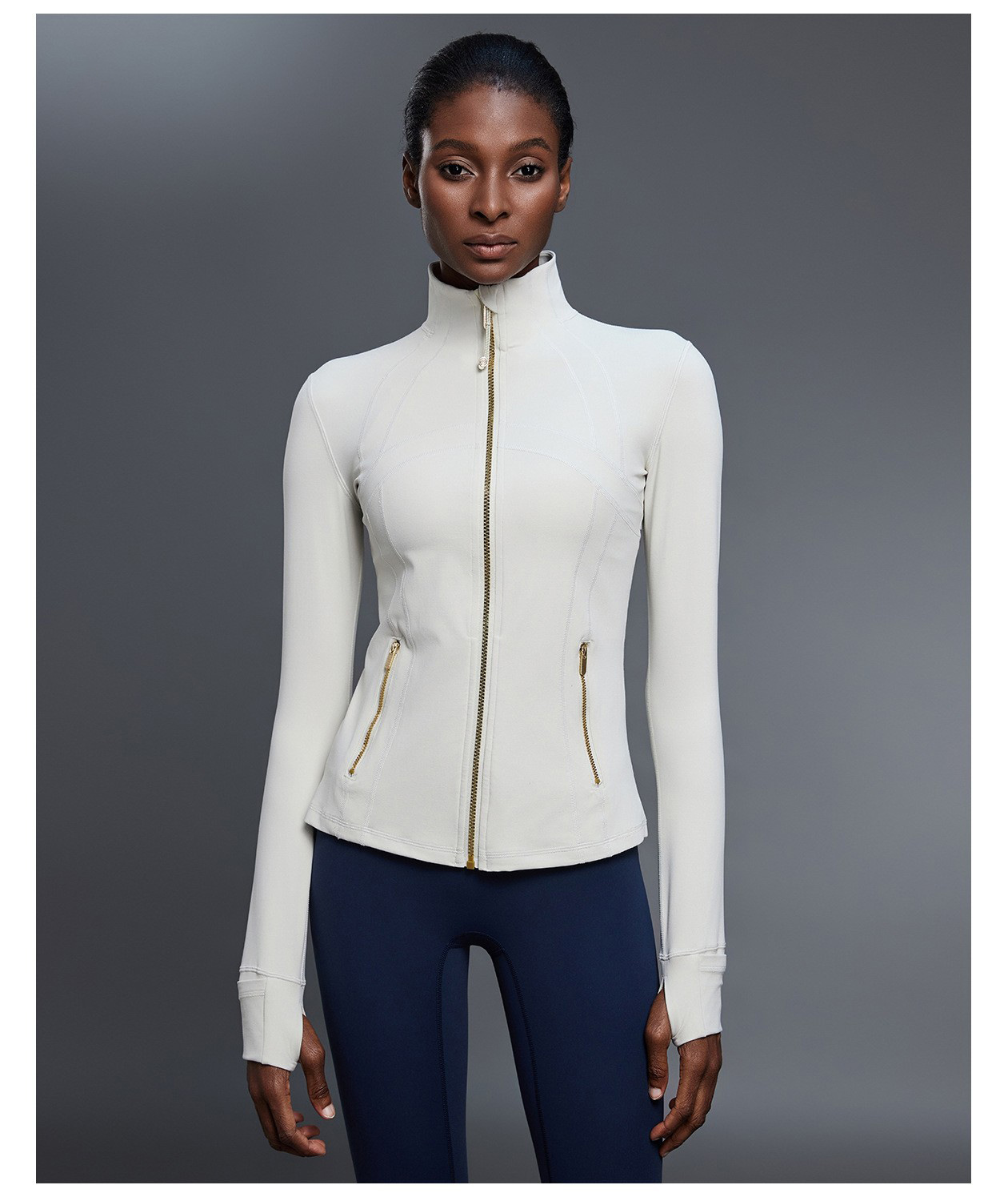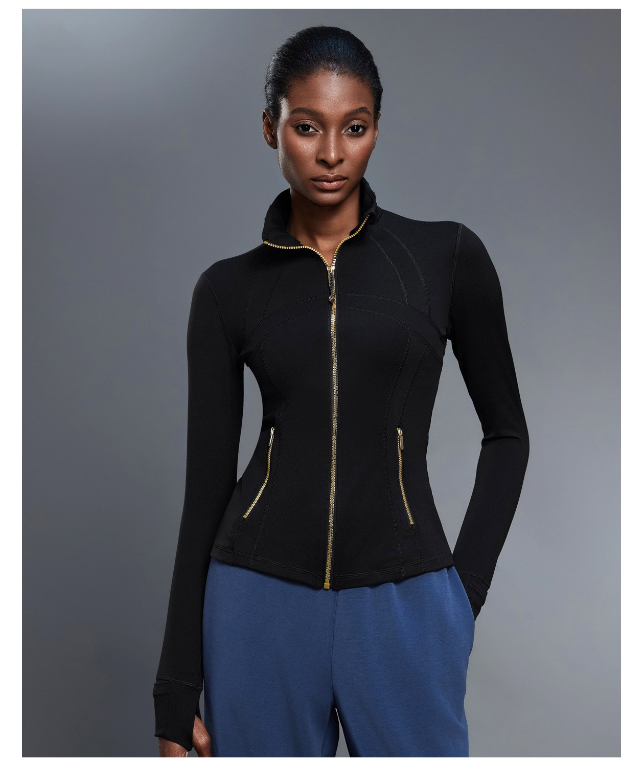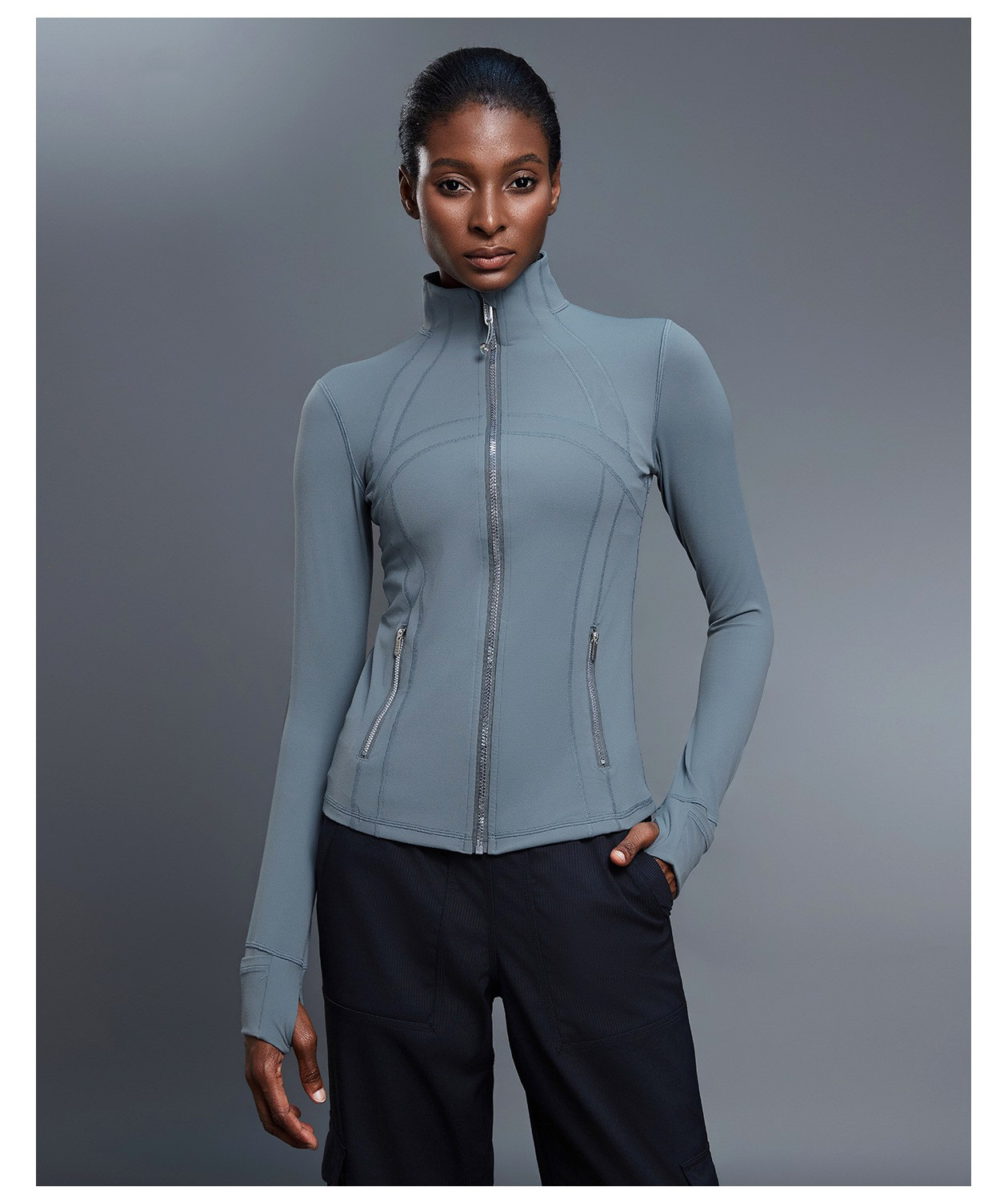 Omi Apparel’s fall yoga jacket for women: long sleeve, stretchy & slim-fit. Perfect for outdoor running, yoga & fitness. Breathable, figure-flattering and warm. Factory-direct bulk customization, blending comfort and style for autumn workouts.