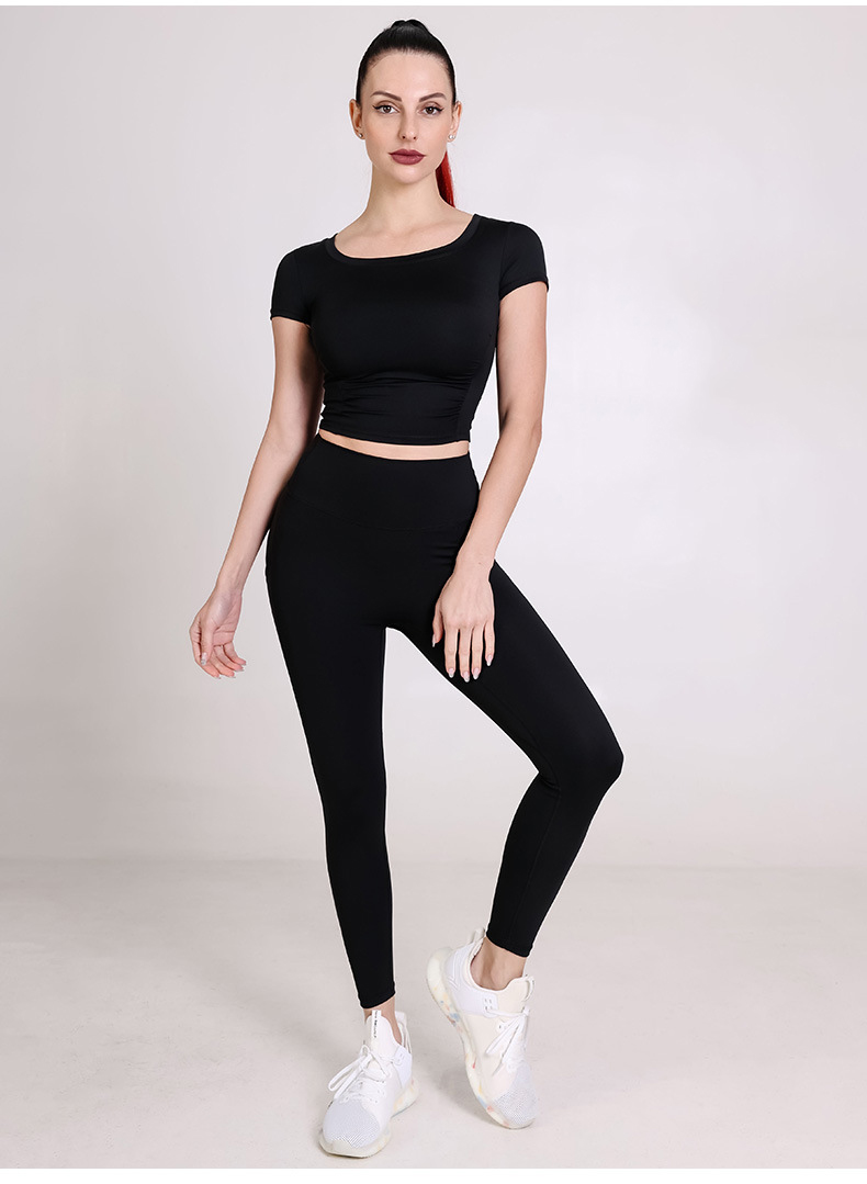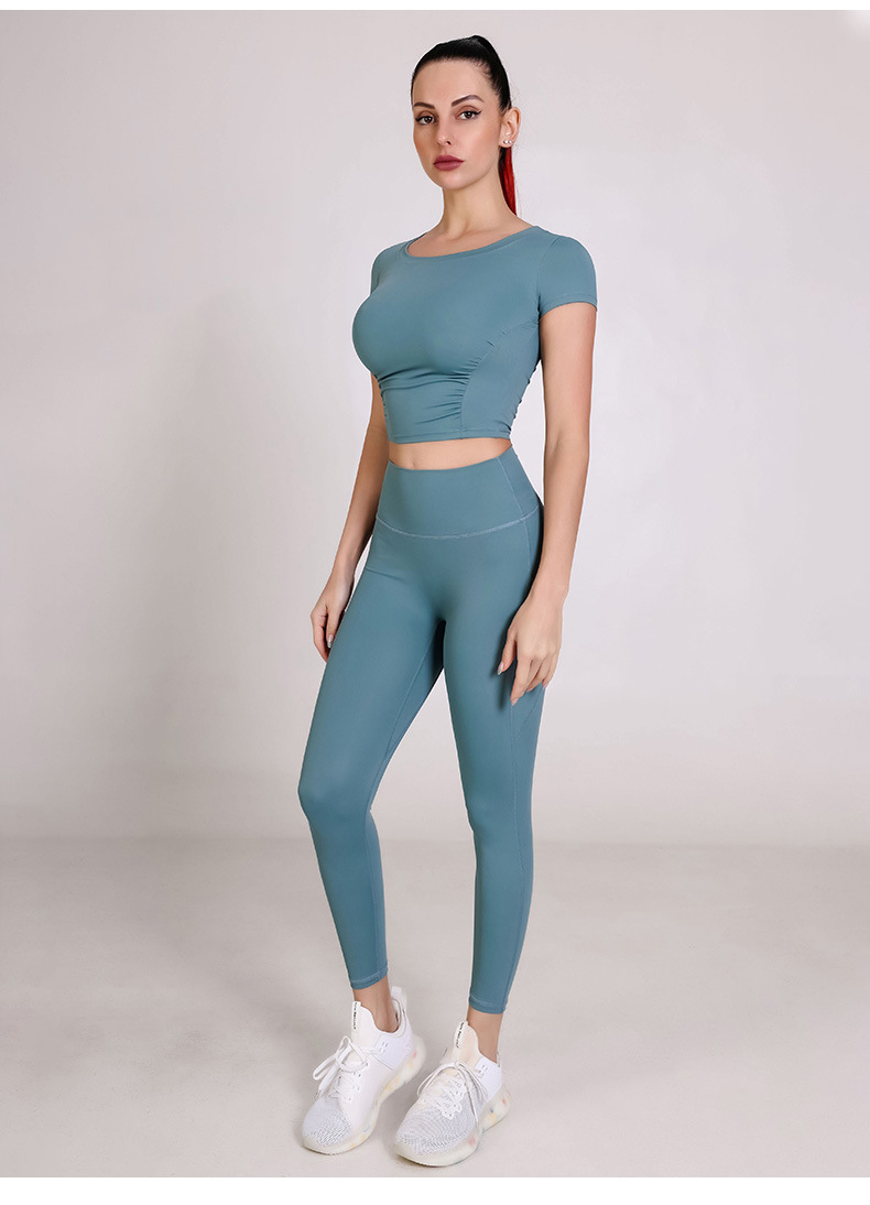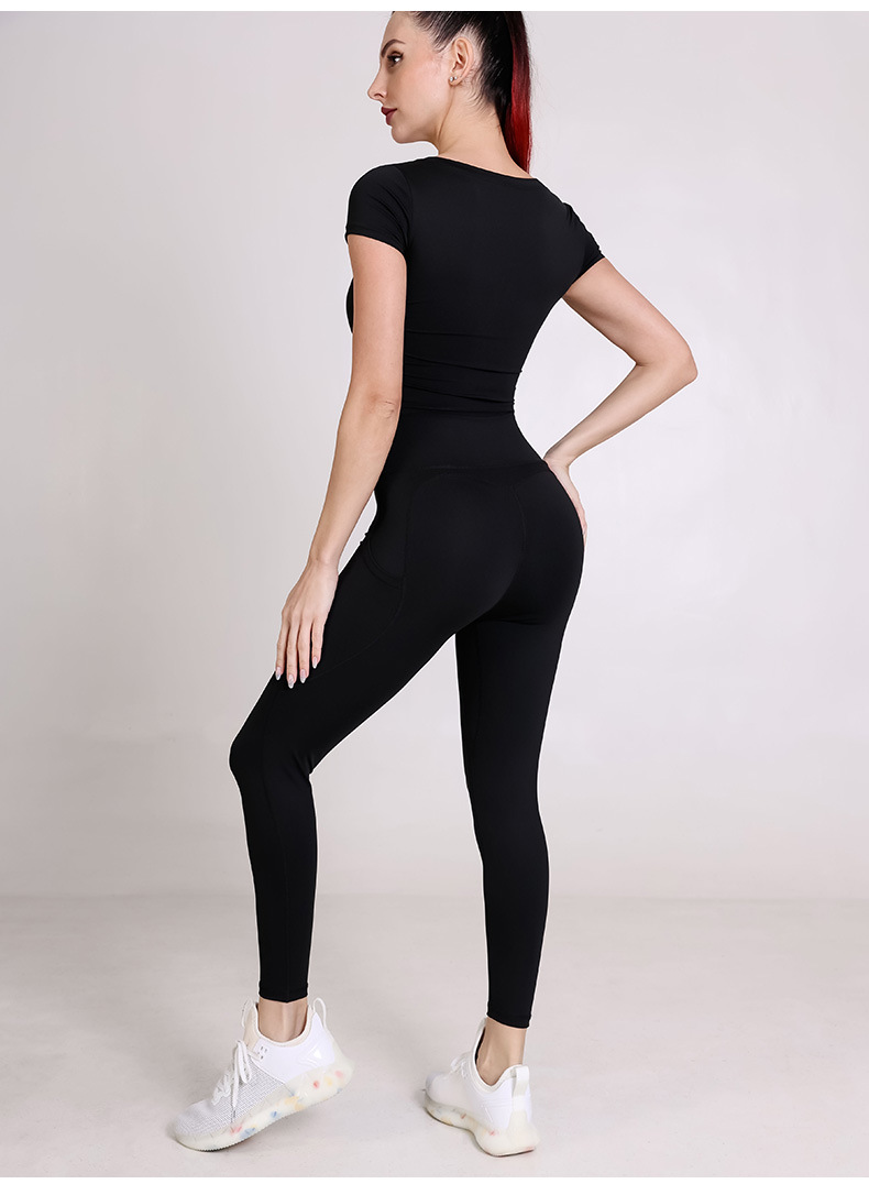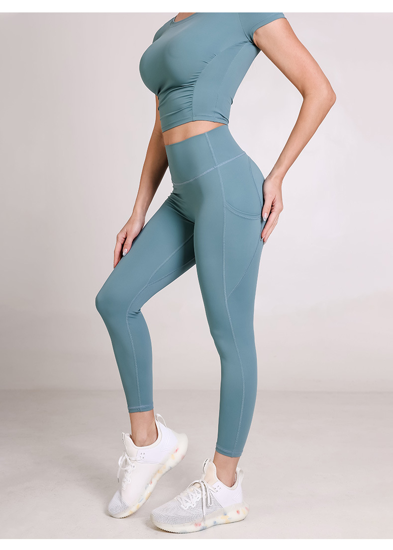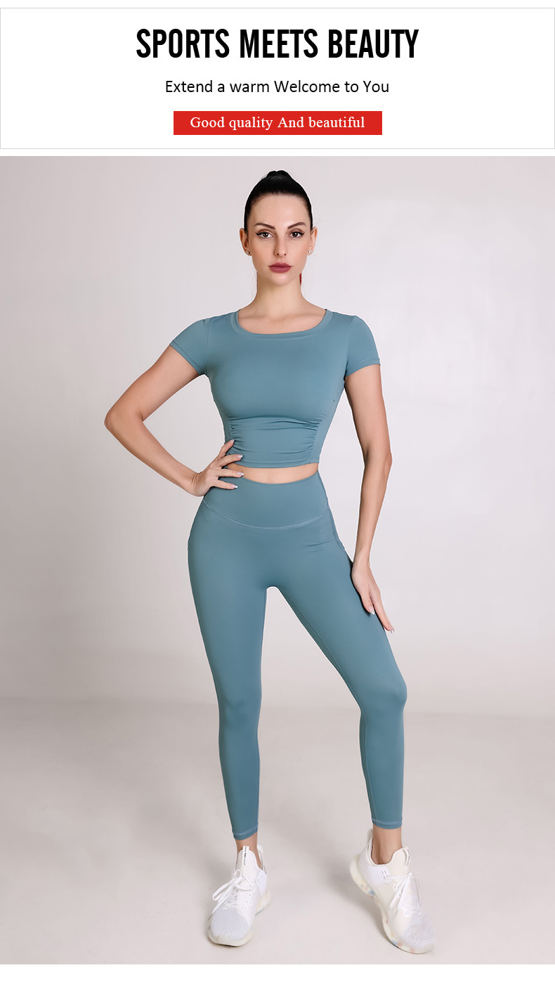 Womens fold padded shorts sleeve yoga T-shirts pockets fitness workout leggings activewear