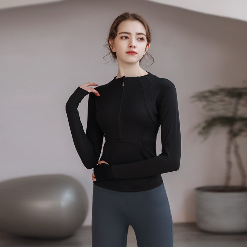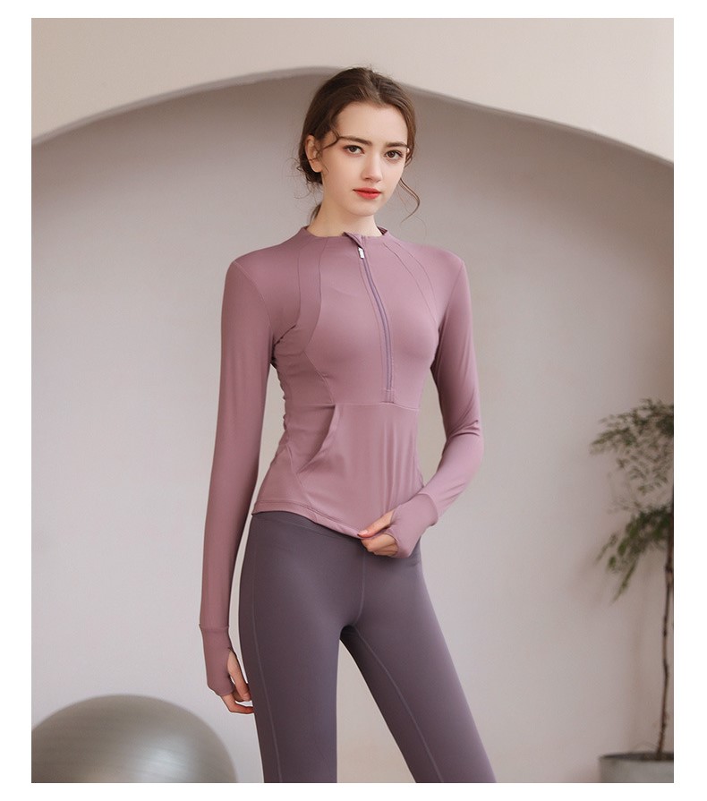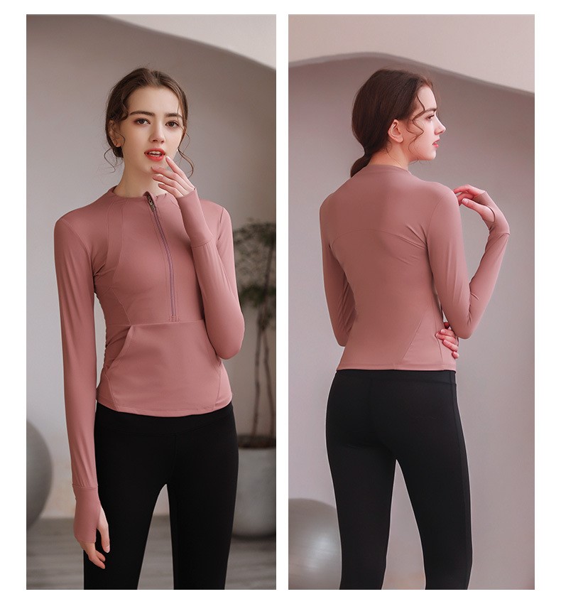 Womens half zip long sleeve jackets outdoor running jogging sports sweatshirts