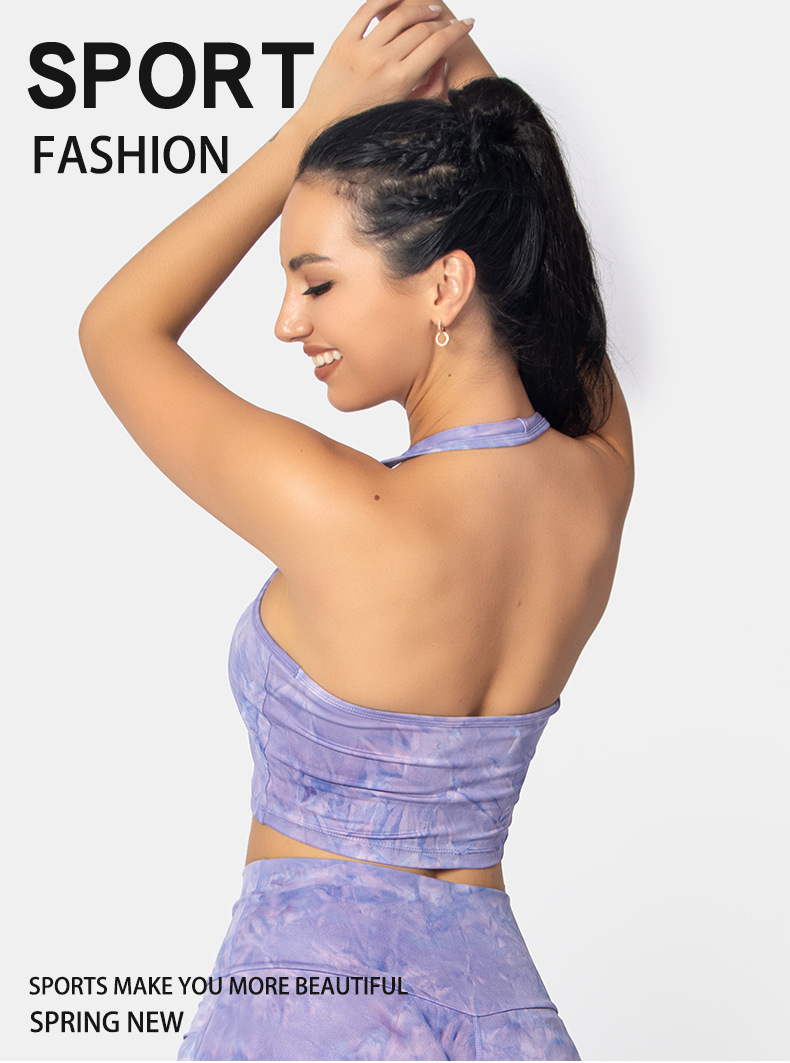 Womens halter gym running sport bra custom printed backless workout fitness yoga sports bras