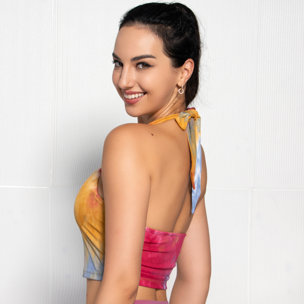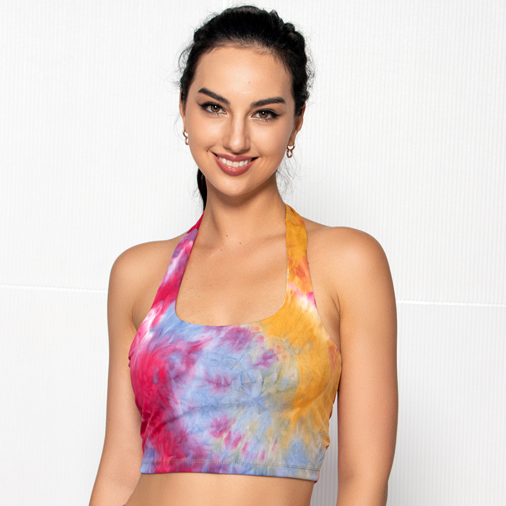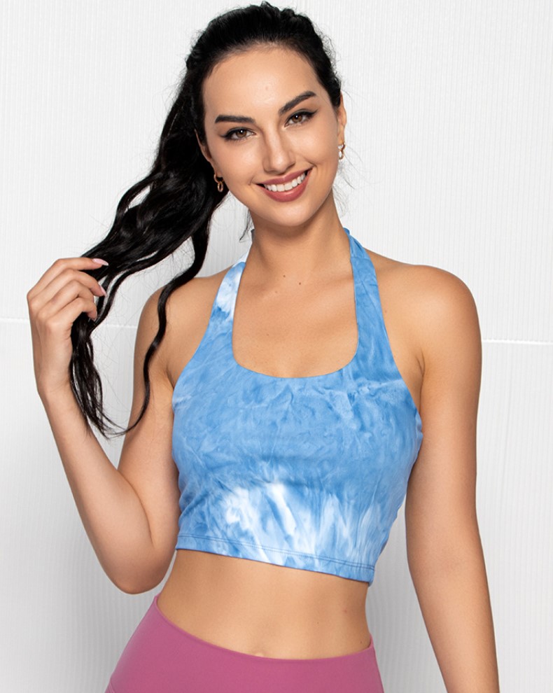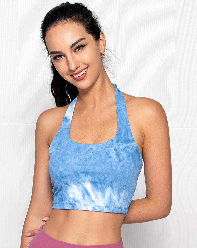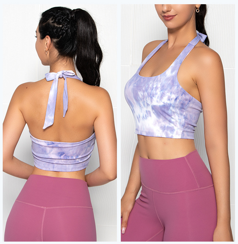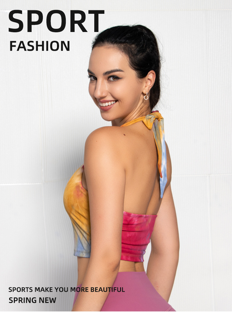 Womens halter sports bras printed sexy backless workout fitness running tops