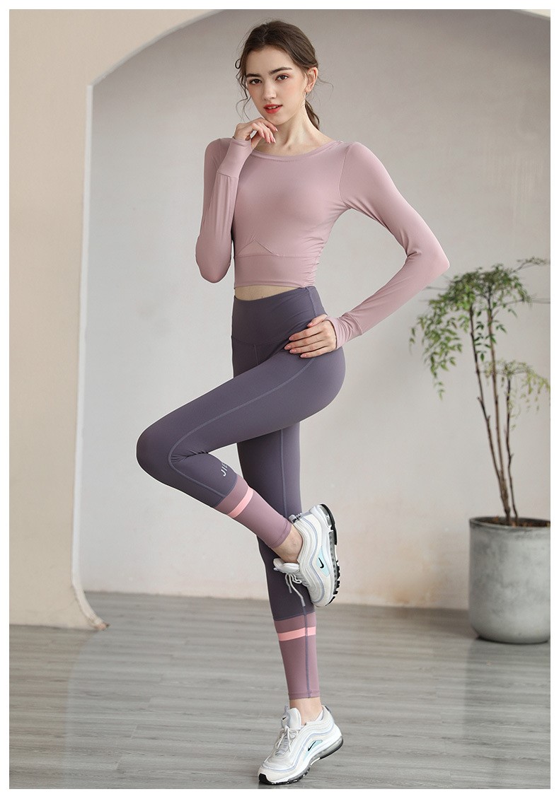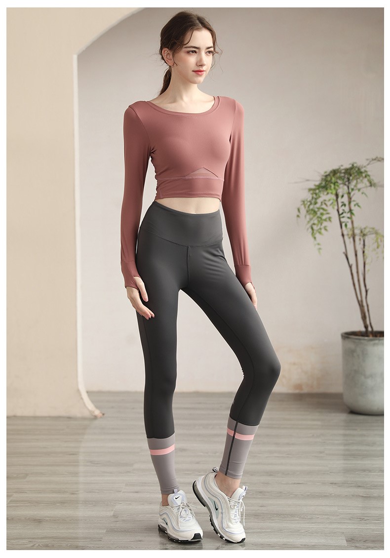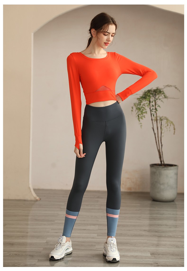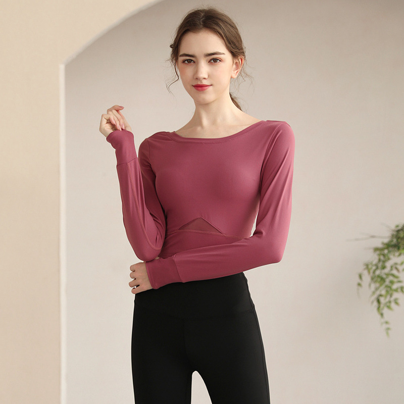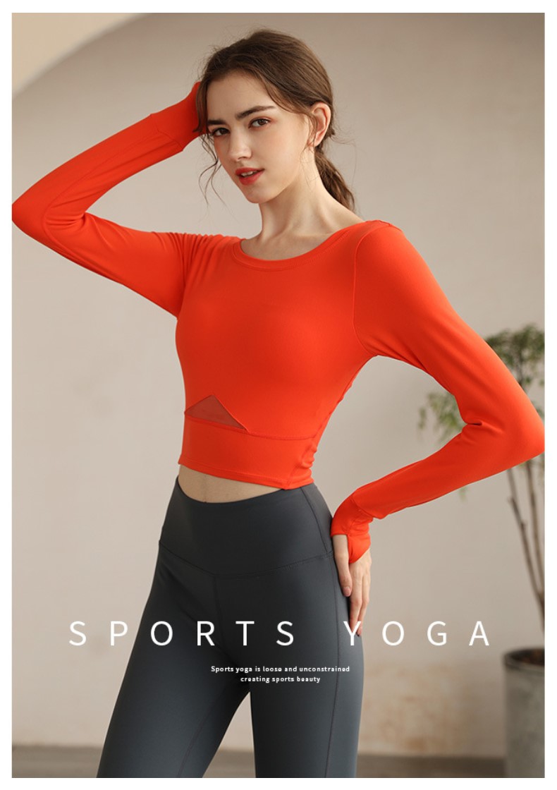 Womens long sleeve crop top U neck mesh fitness yoga padded workout tshirt with thumb hole