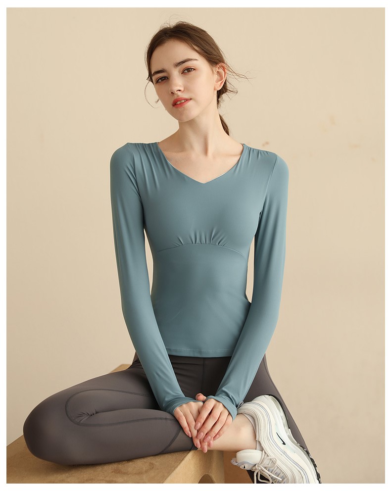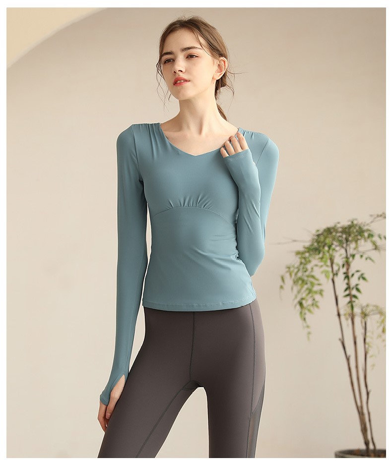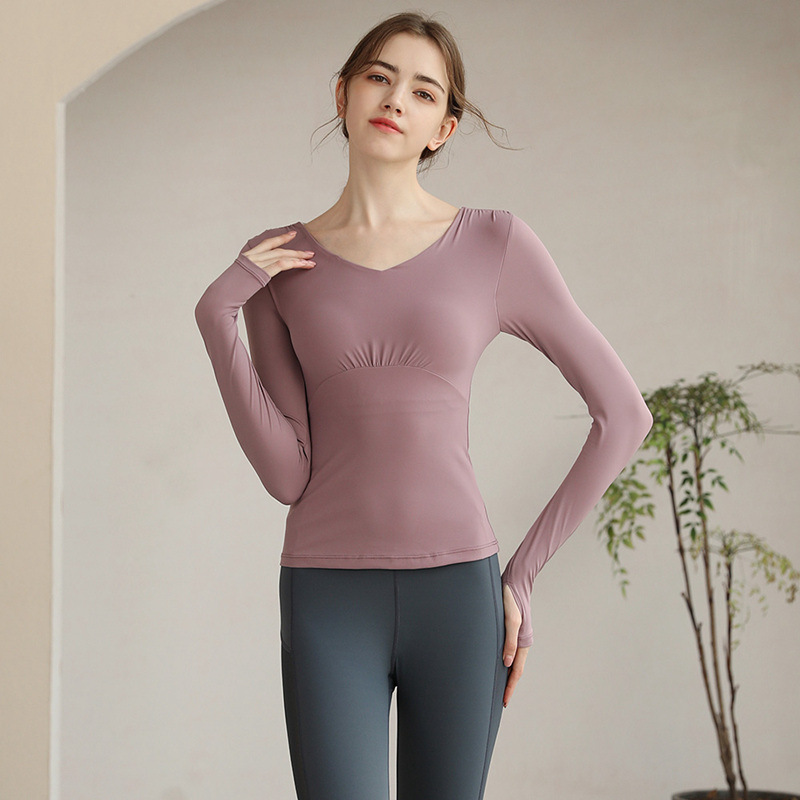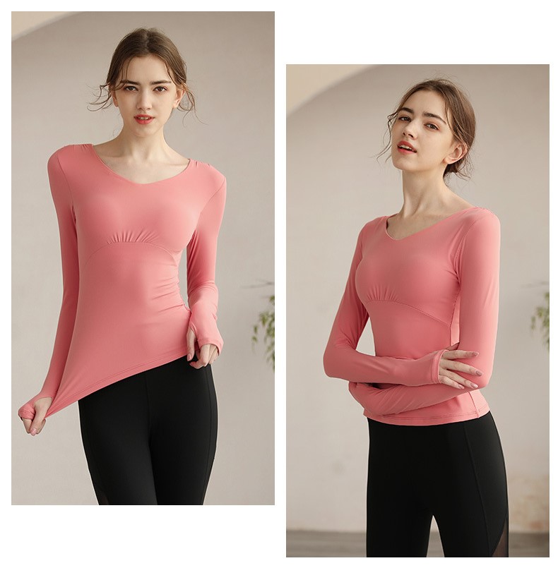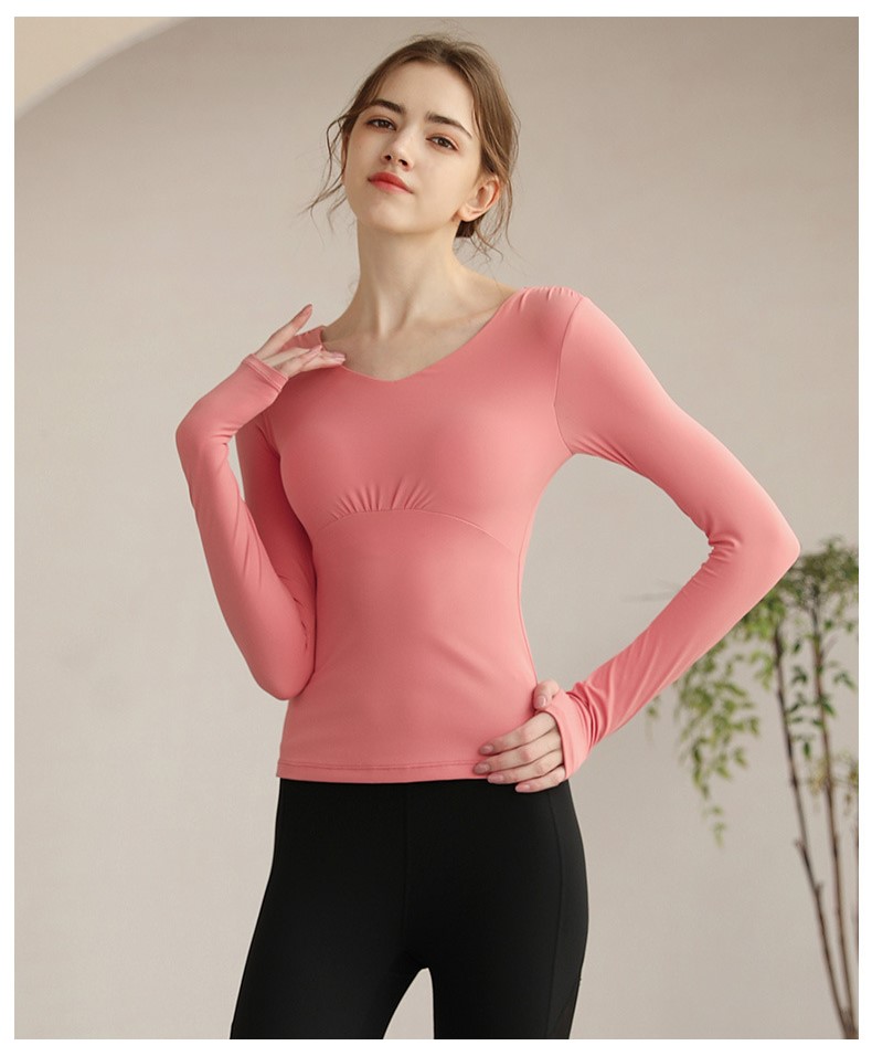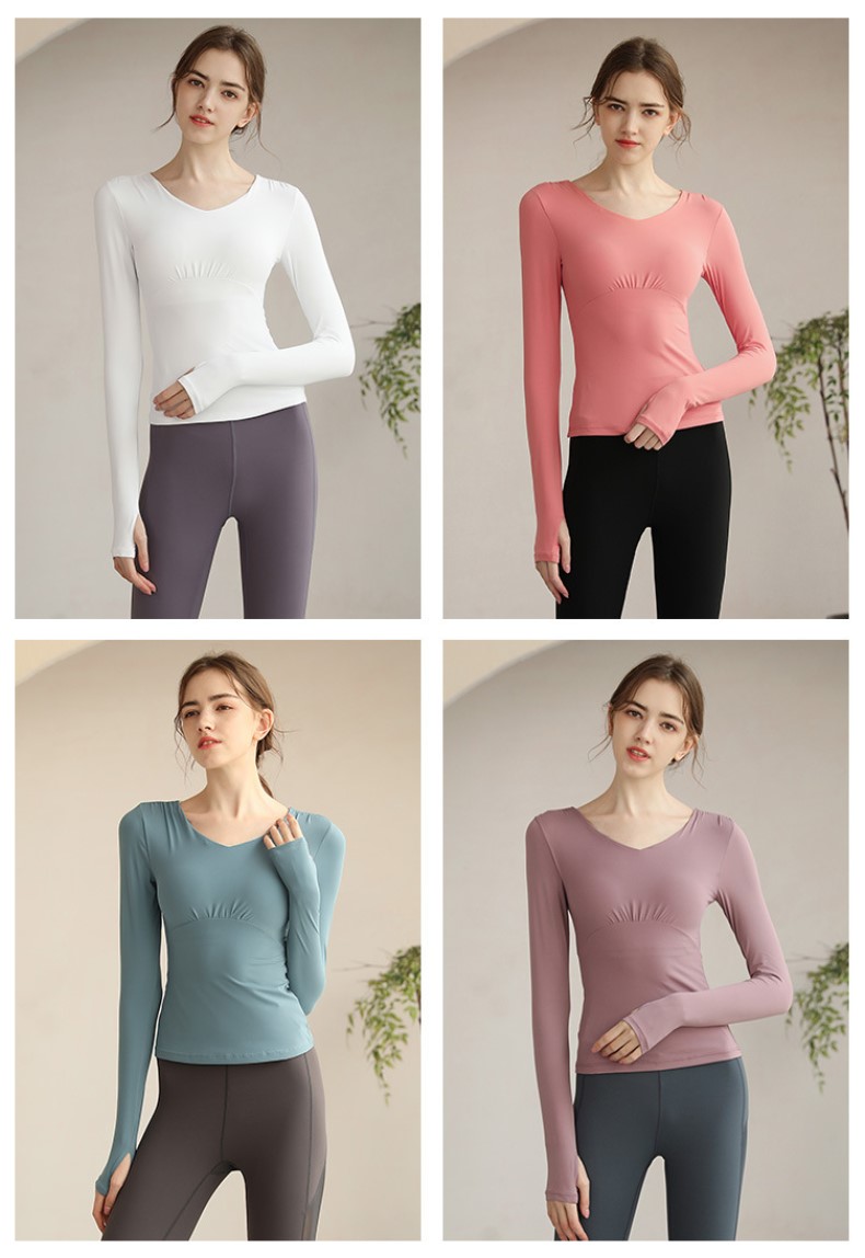 Womens long sleeve fitness sweatshirts quick dry running V neck padded tshirt with thumb hole