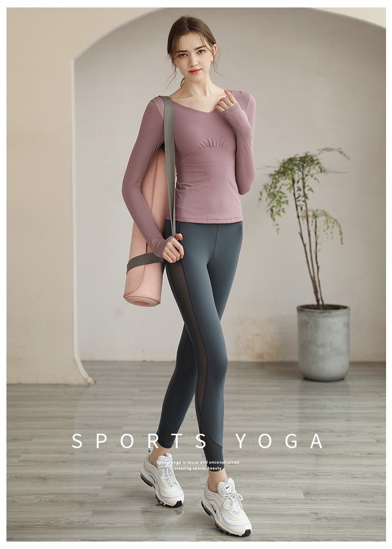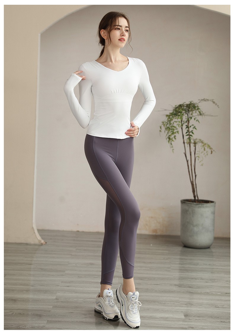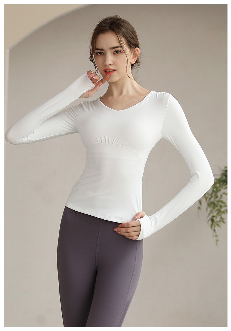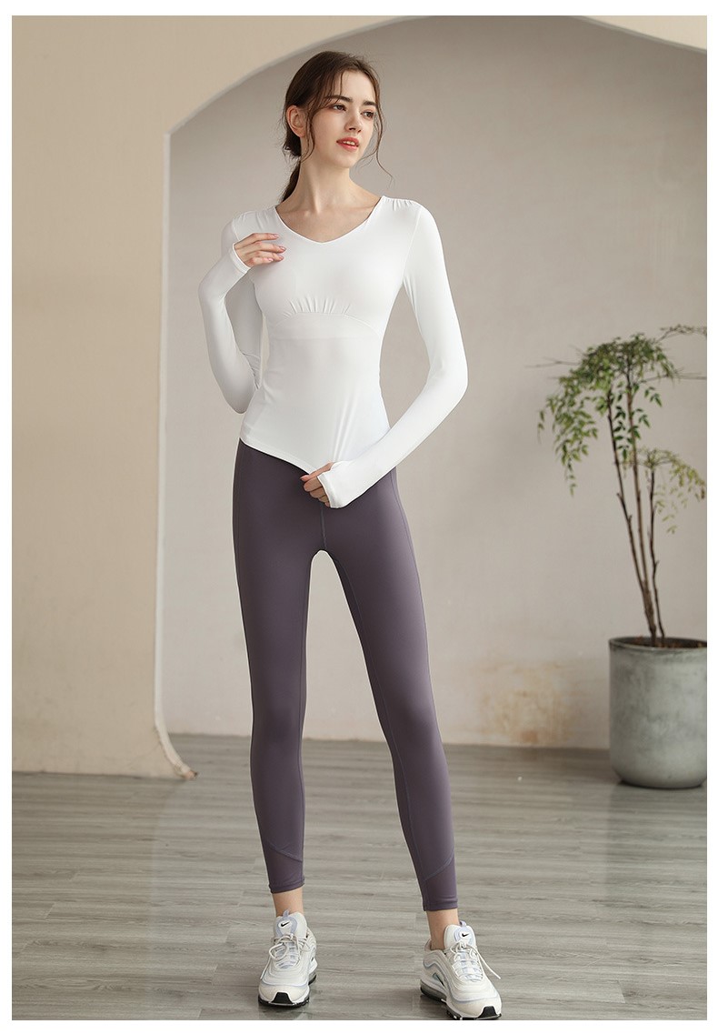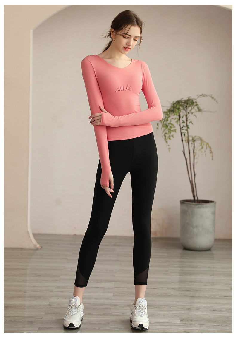 Womens long sleeve fitness sweatshirts quick dry running V neck padded tshirt with thumb hole