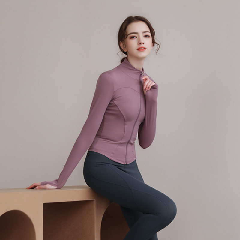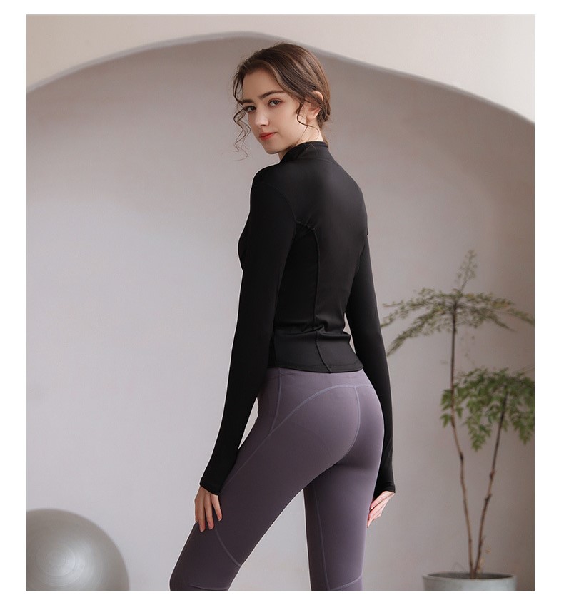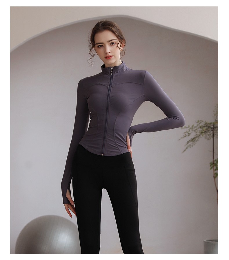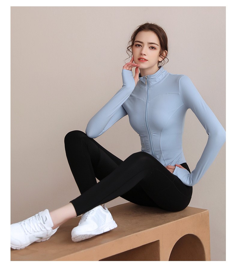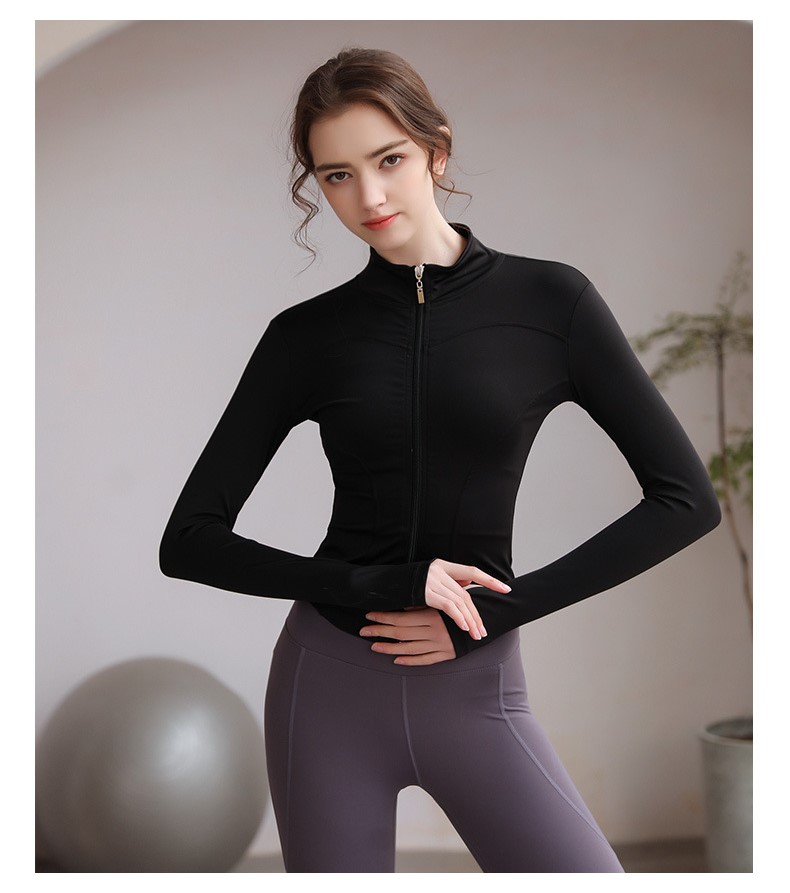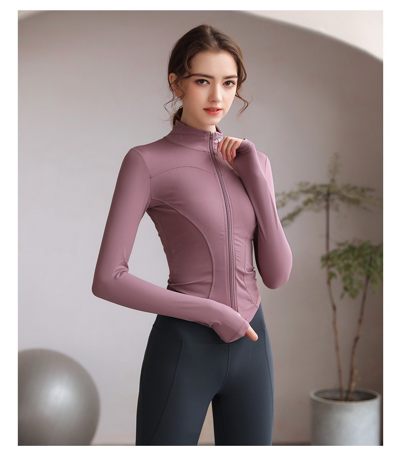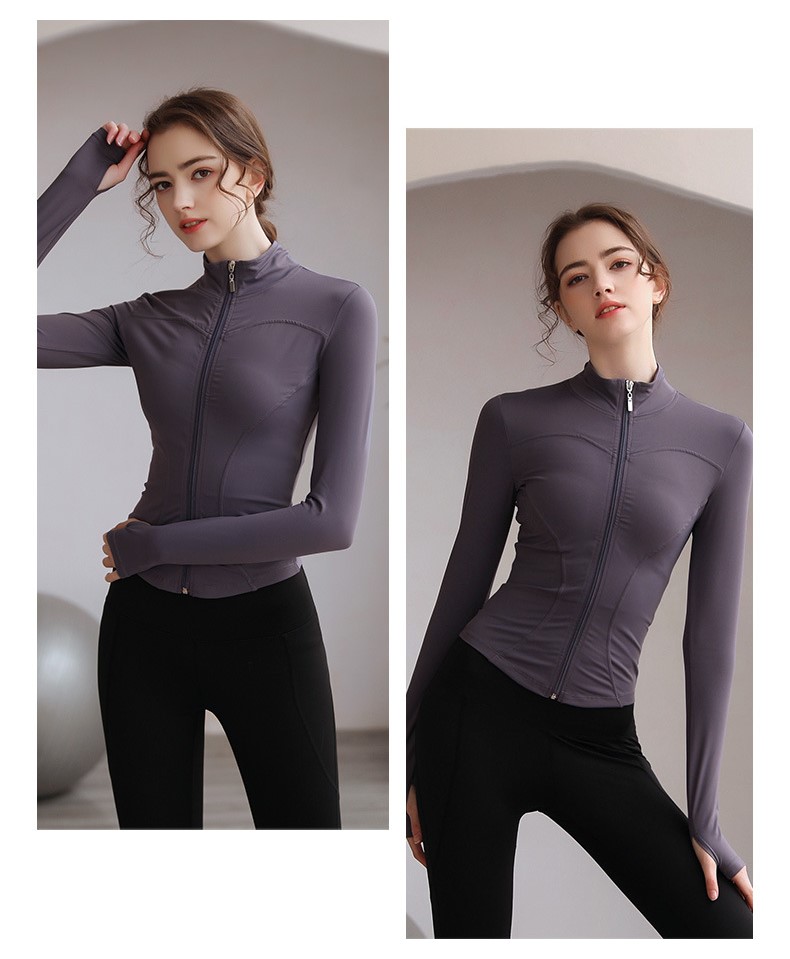 Womens long sleeve zip up yoga jacket running outdoor workout sweatshirtws with thumb holes
