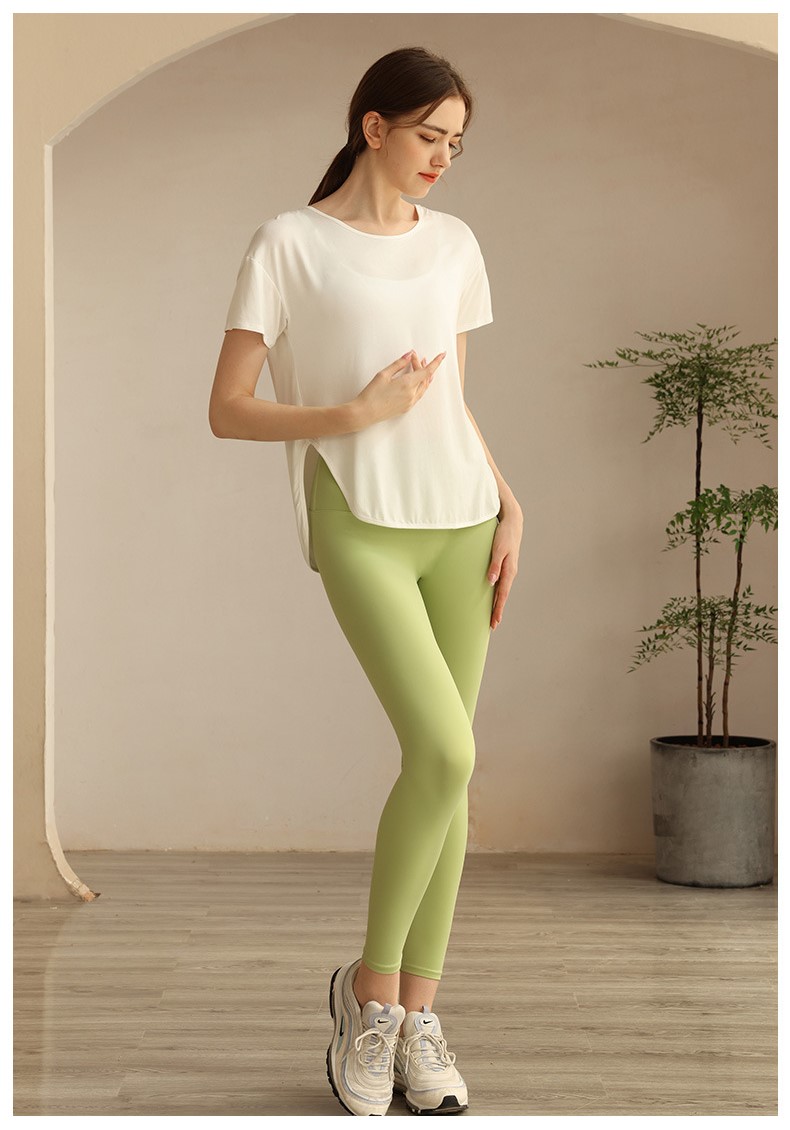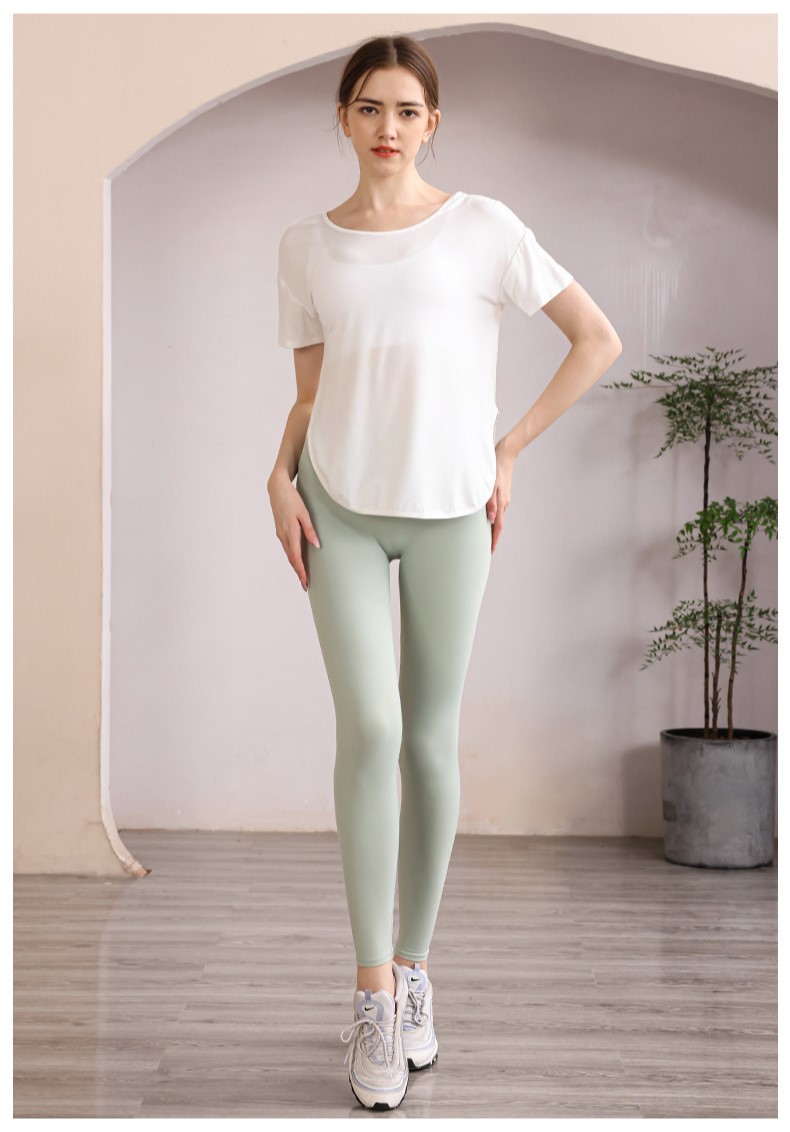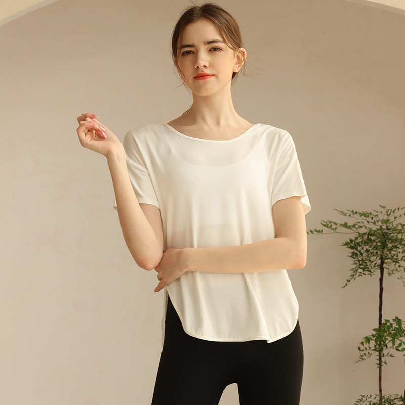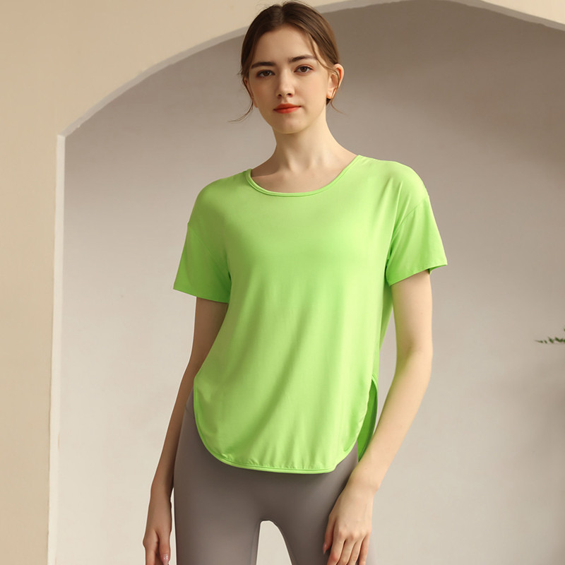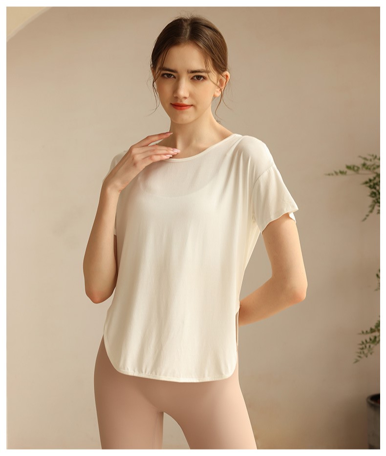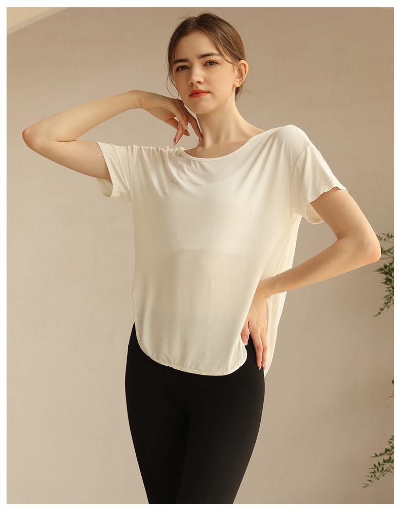 Womens loose tshirt U back with strappy curved hem short sleeve workout yoga t shirt