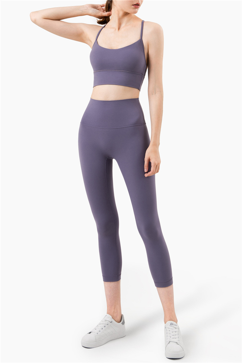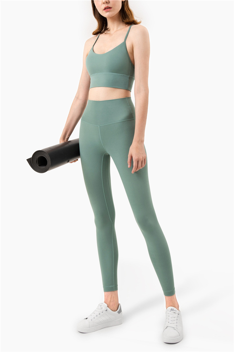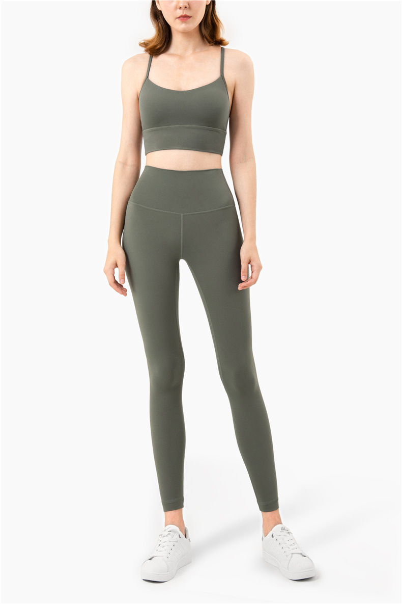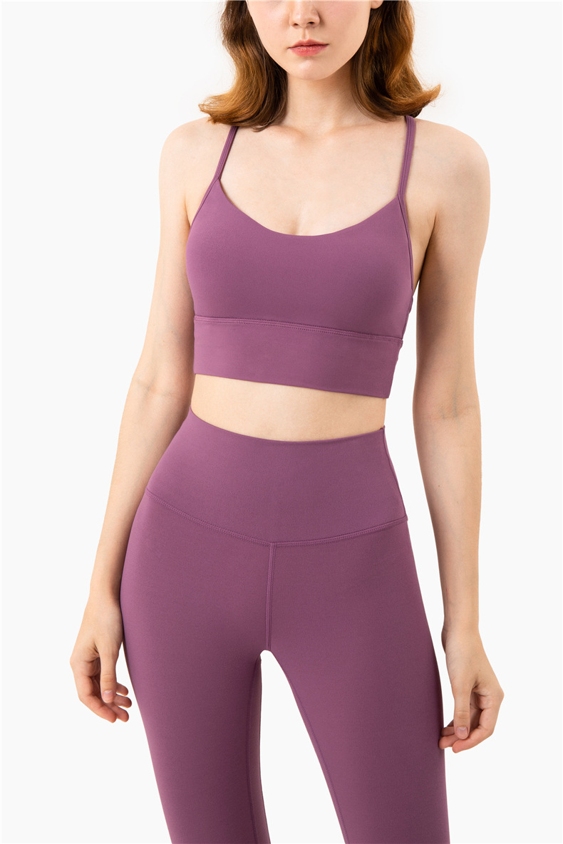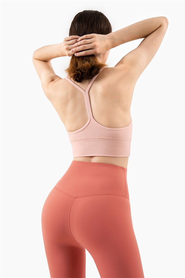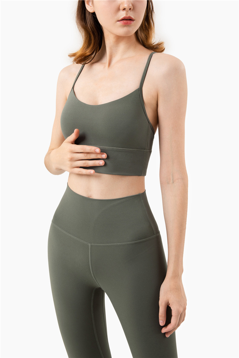 Womens nude sports bra u neck spaghetti straps sexy Y back workout fitness running tank top