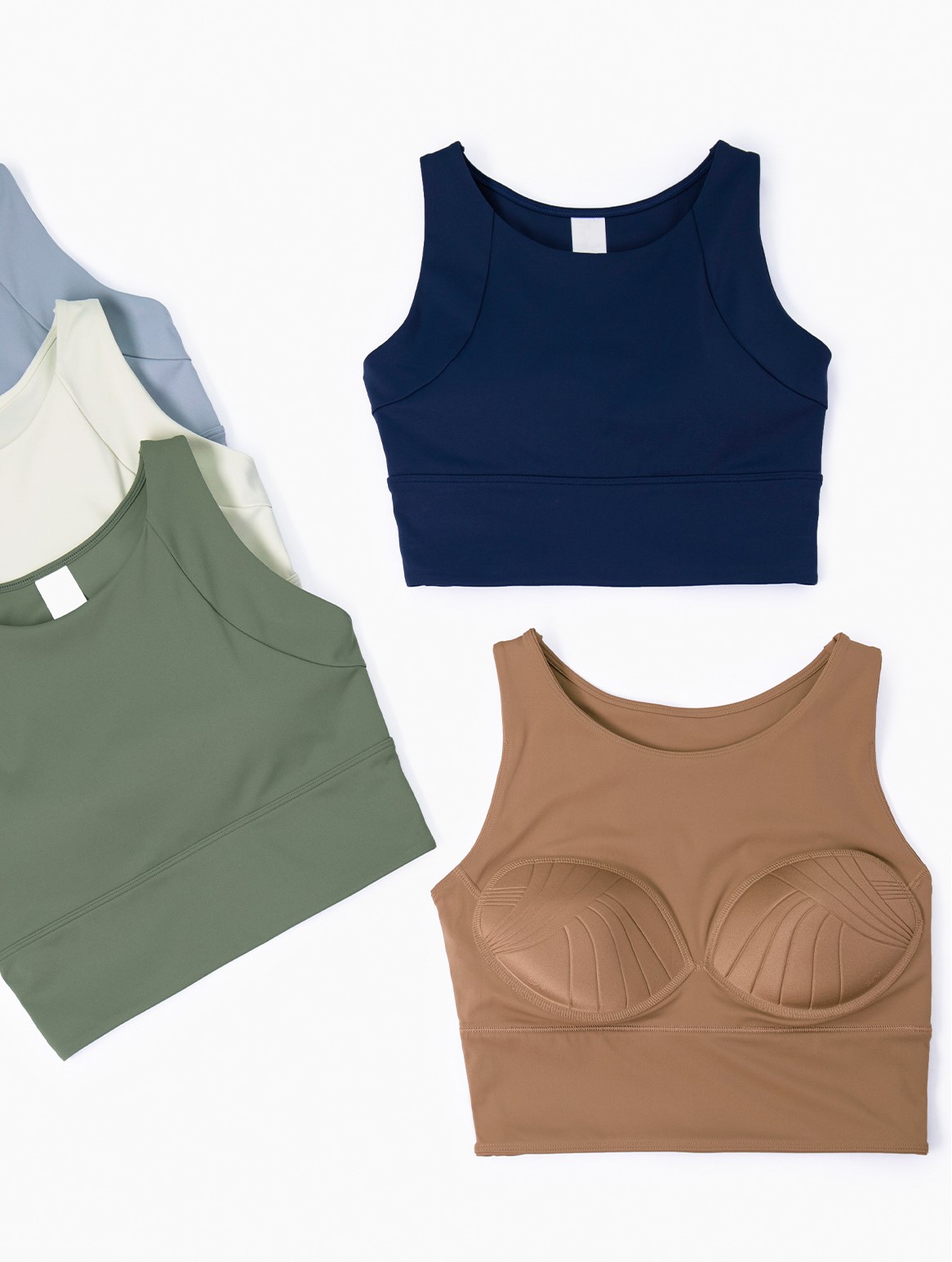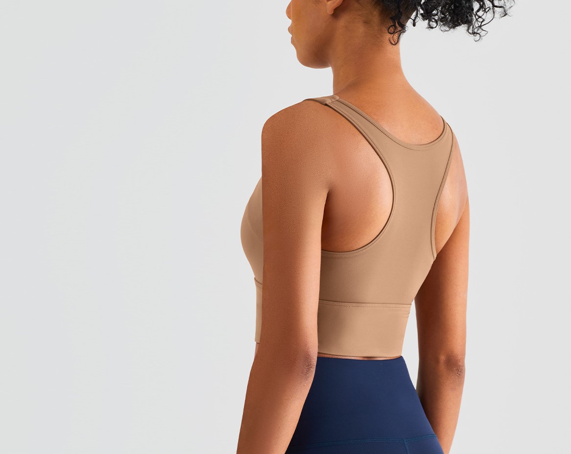 Womens racerback crop tank top yoga insert fixed cup fitness workout gym running sports bras