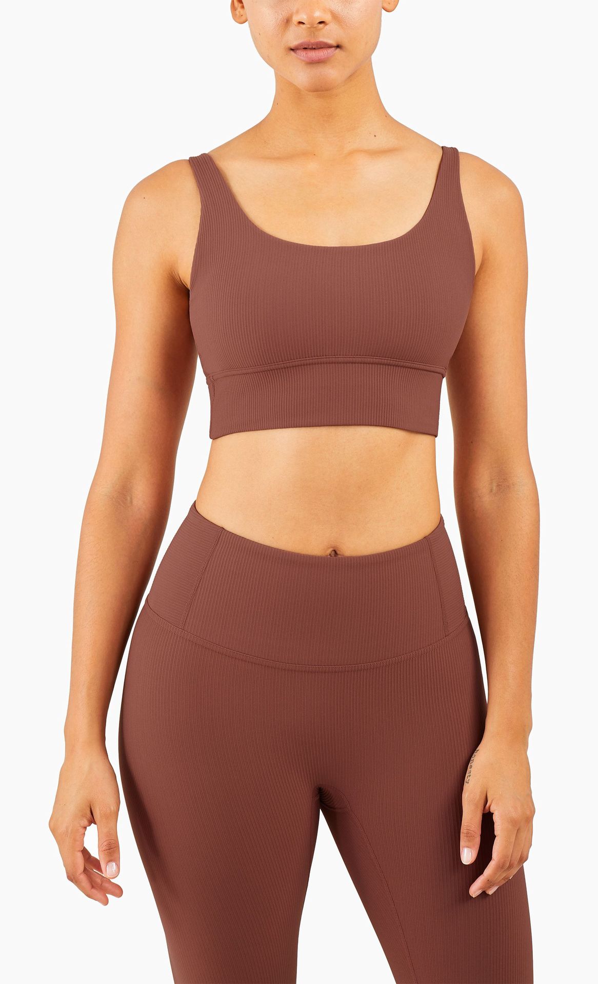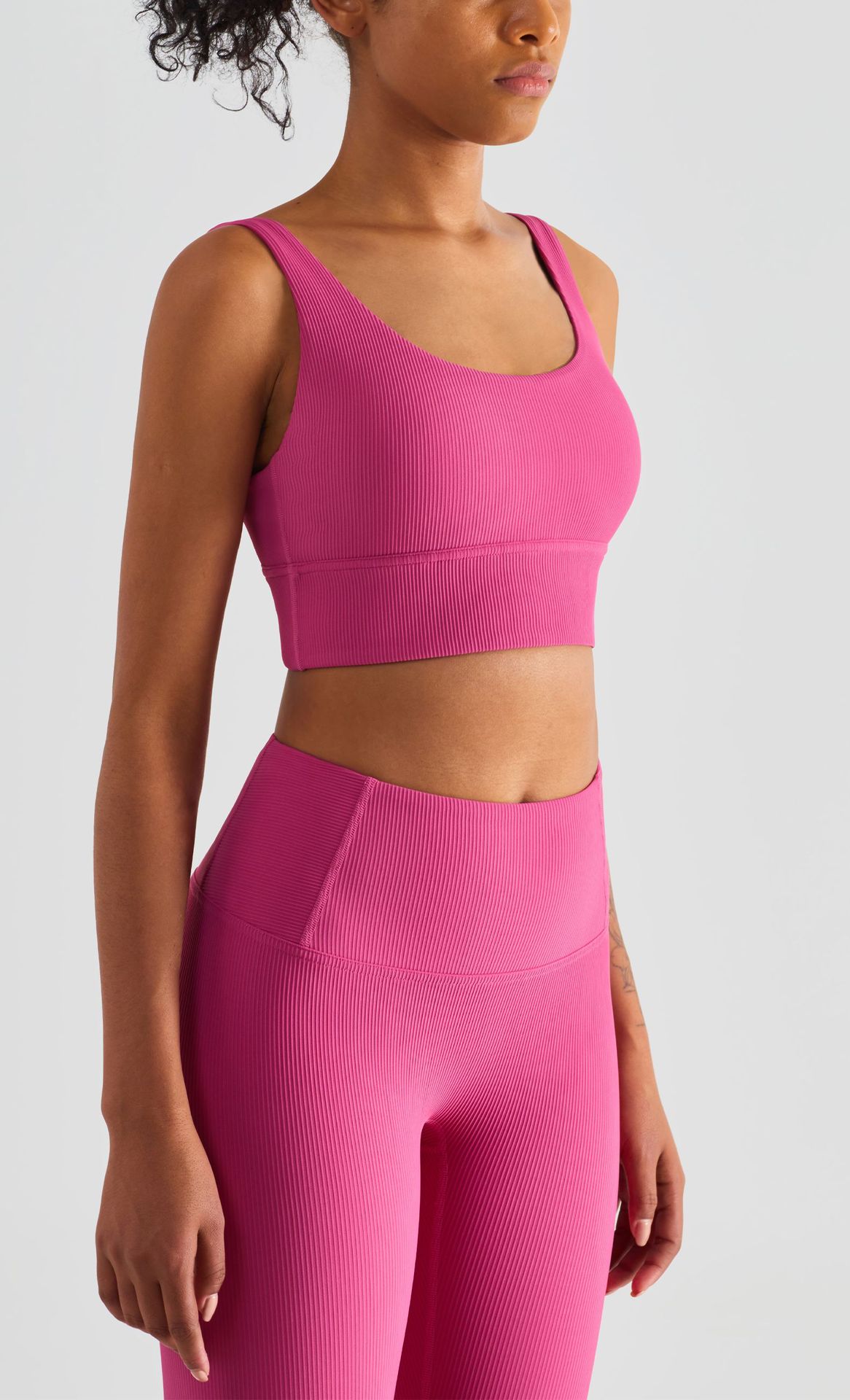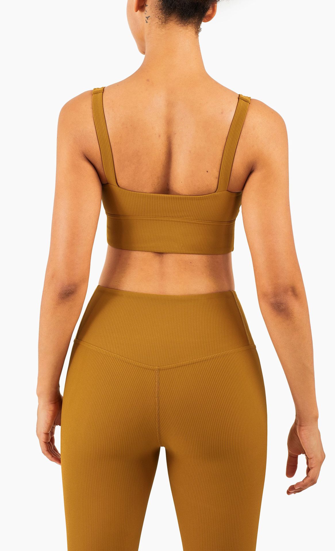 Womens rib deep U neck sports bras fitness training tummy control running worktou crop tank top