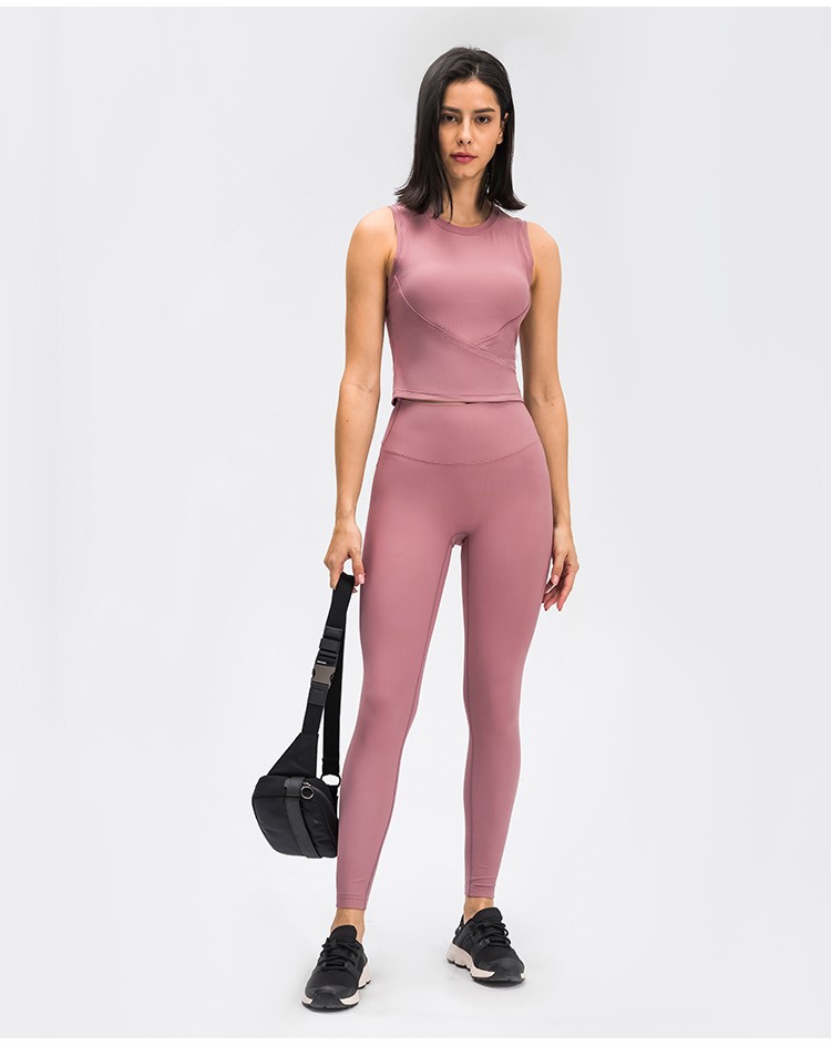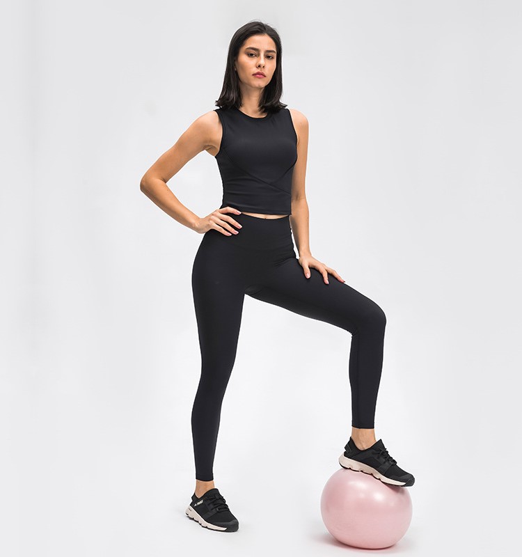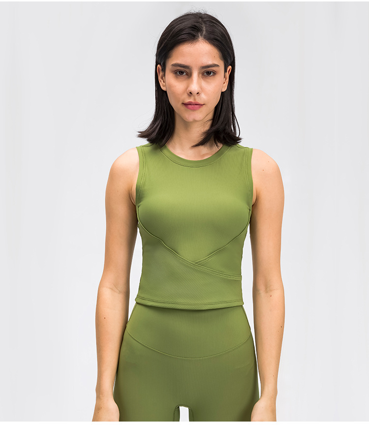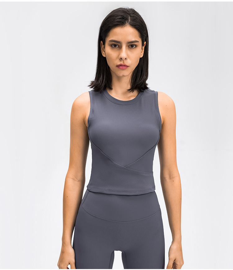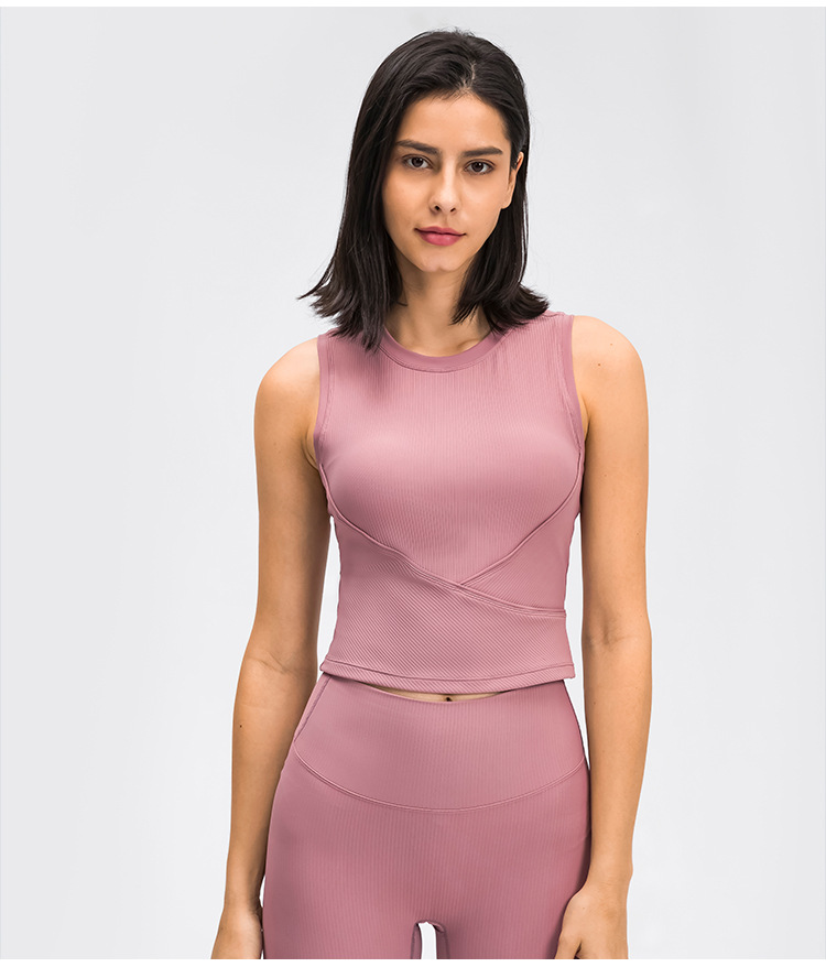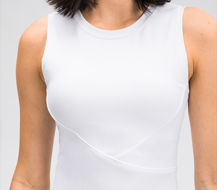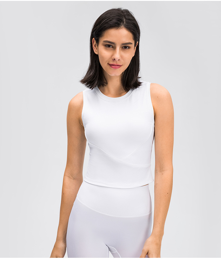 Womens rib tank top high neck padded crop tops running fitness yoga gym sleeveless vest