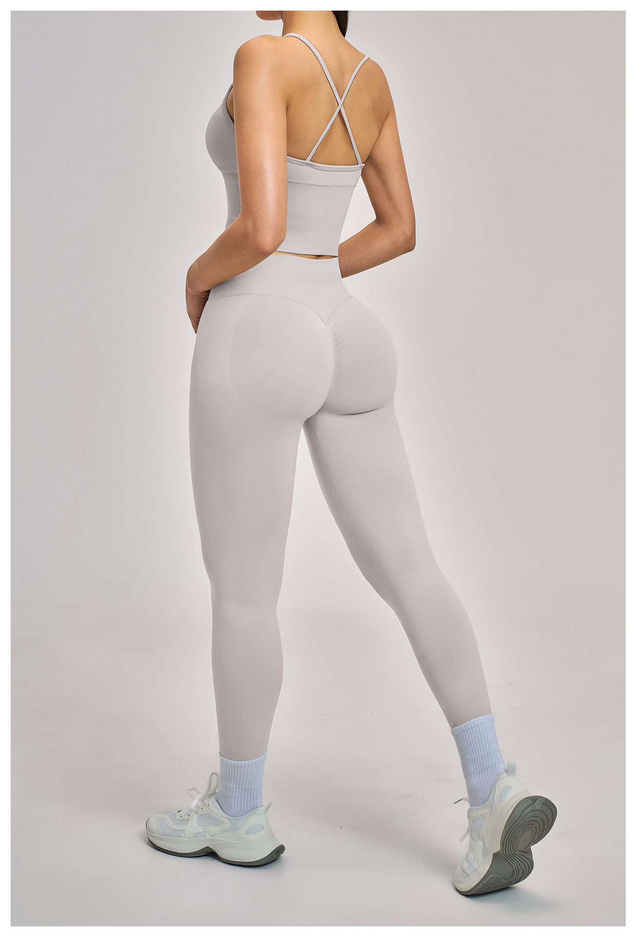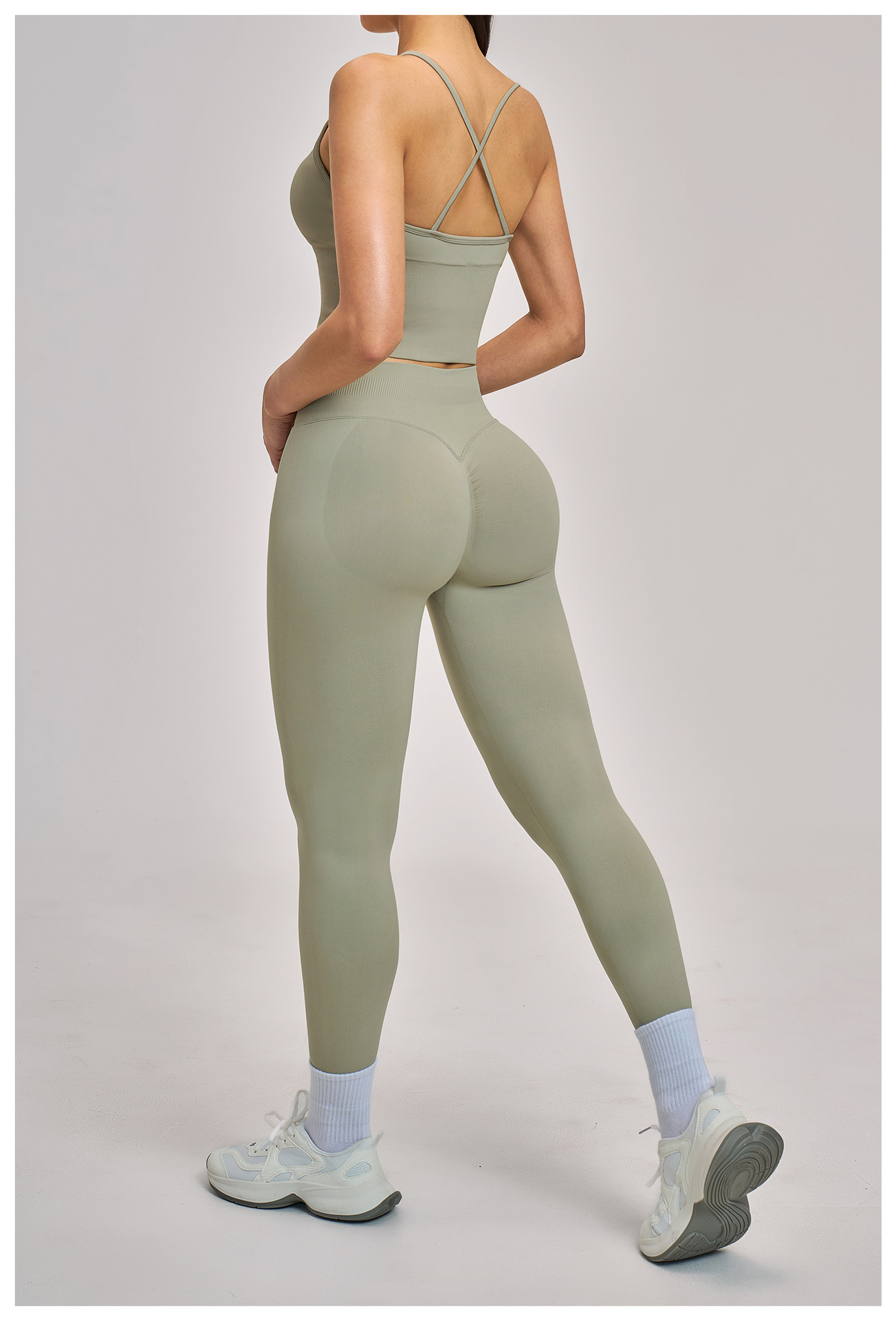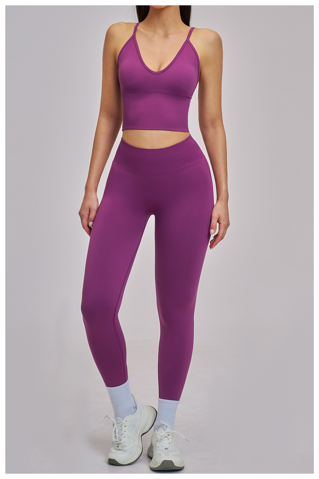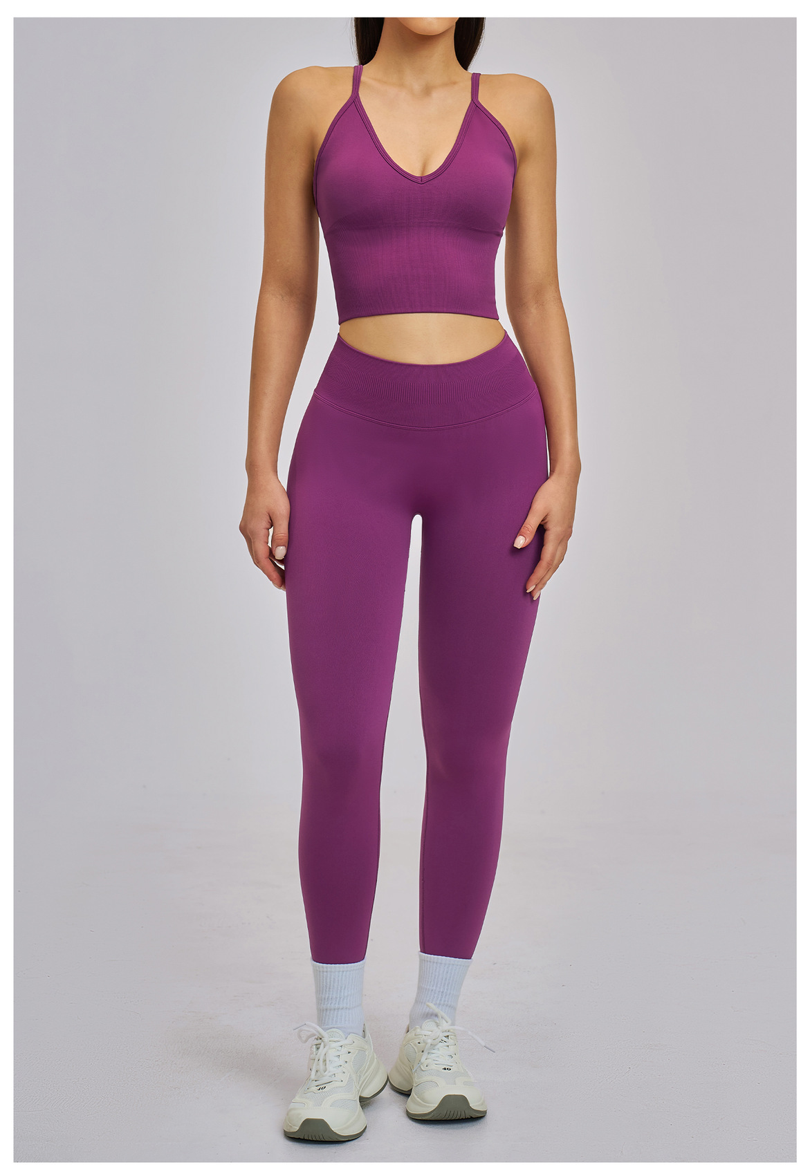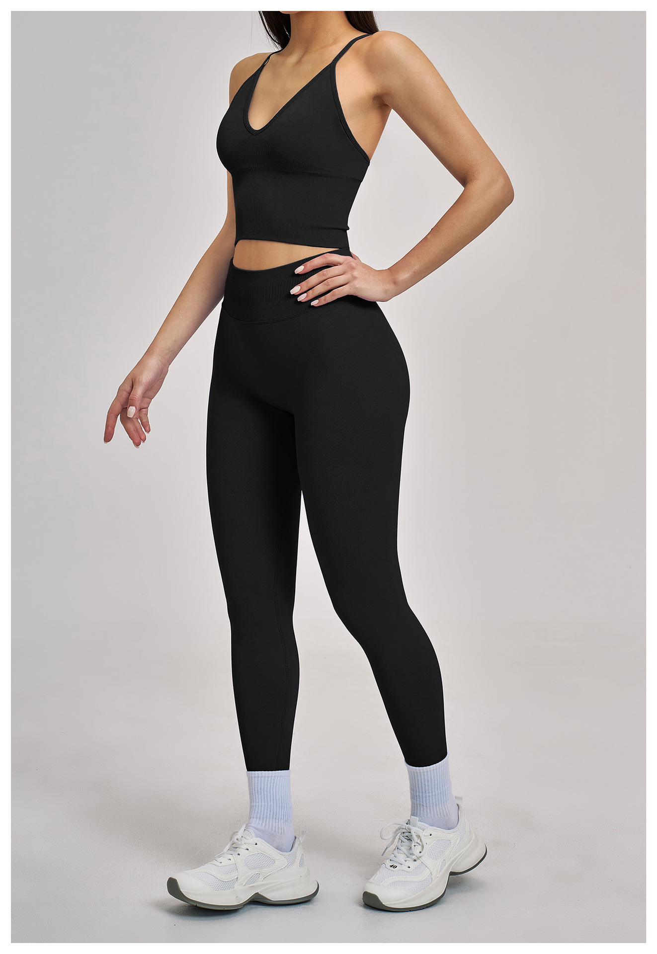 • Custom Women’s Seamless 2 Piece Yoga Set Racerback Beauty Back Crop Top High Stretch Running Activewear: This women’s seamless yoga set includes a racerback beauty back sports bra and high-waist tight leggings. Made of high-stretch, soft, breathable and moisture-wicking seamless fabric, it provides all-day comfort for yoga, gym, fitness and running. Racerback design offers better support and shows beautiful back lines. High-waist & butt-lifting cut perfectly shapes your body. Support custom logo, color and size.