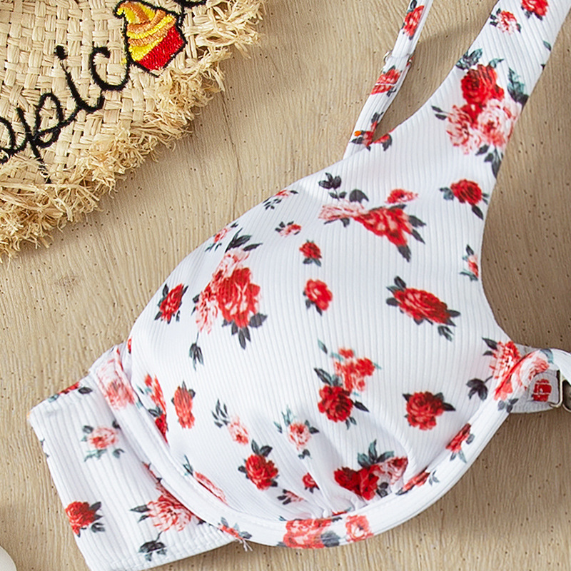 Womens sexy bathing suits spaghetti strap small floral printed bikini set two piece swimsuit