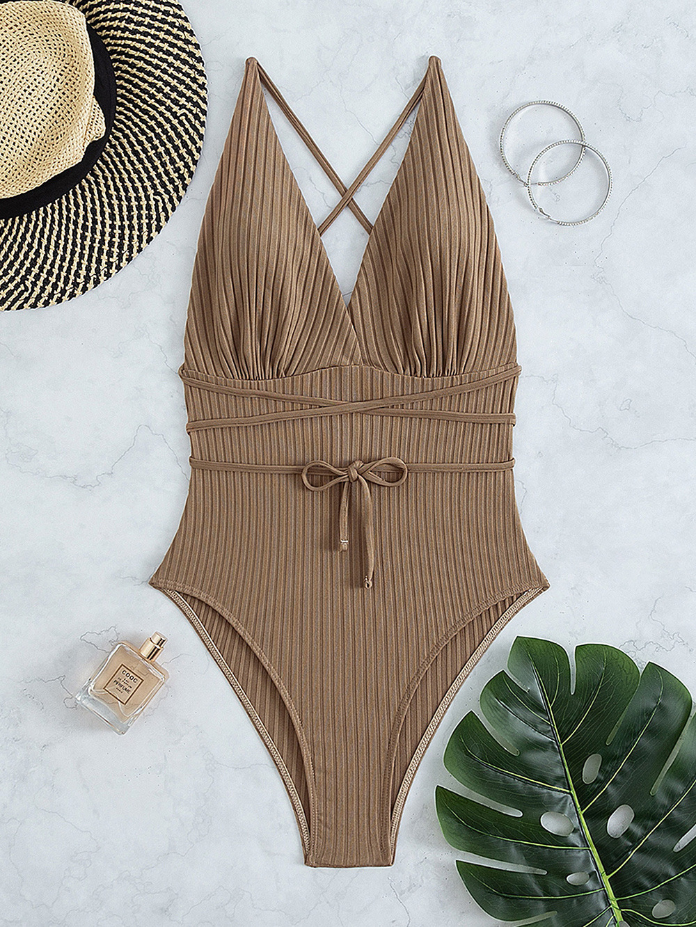 Womens sexy one piece lace up straps swimsuit cross back high cut bathing suit swimwear