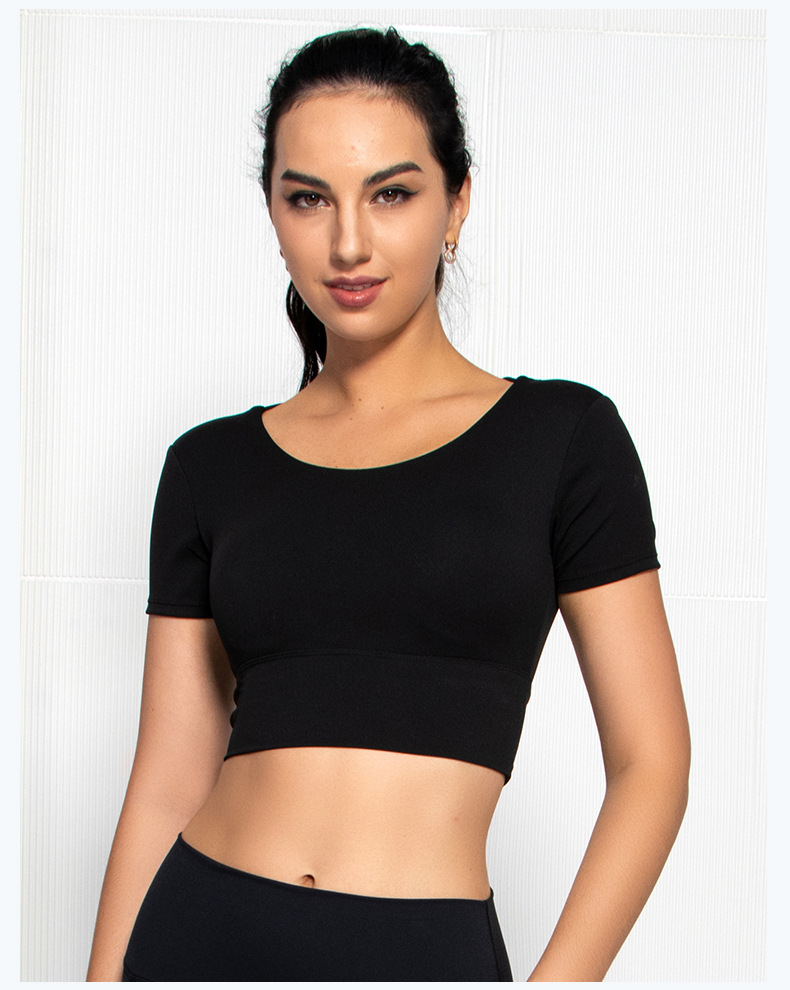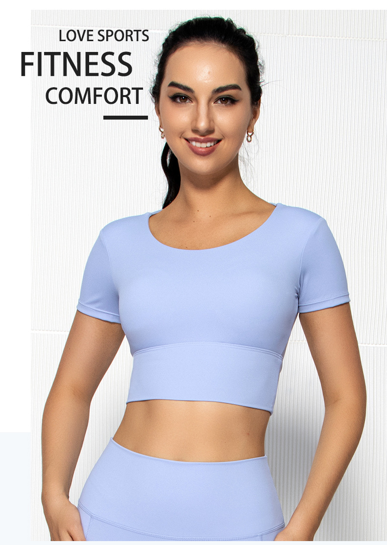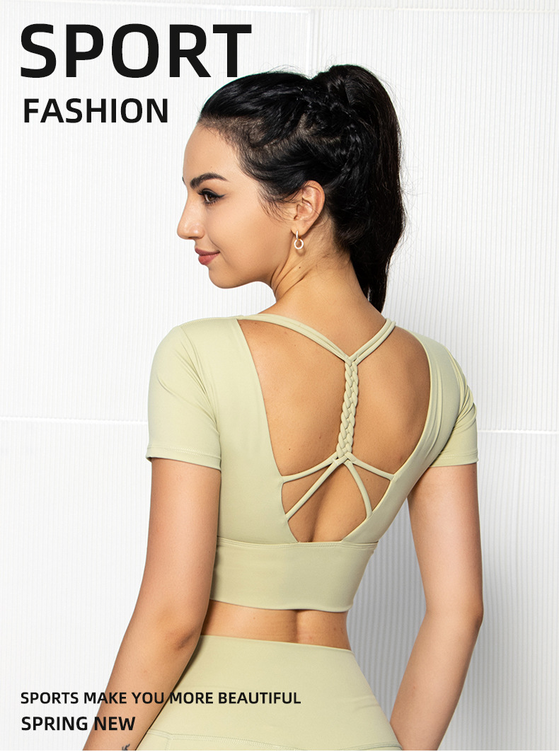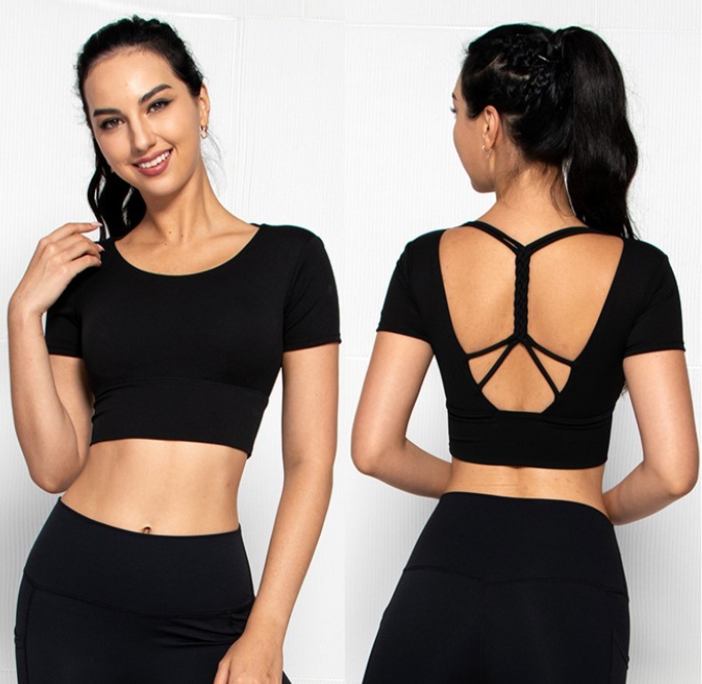 Womens short sleeve crop top padded Y back strap quick dry yoga wear
