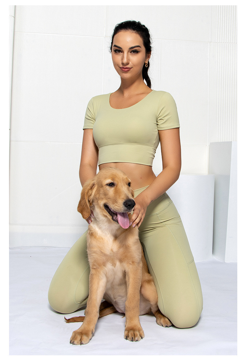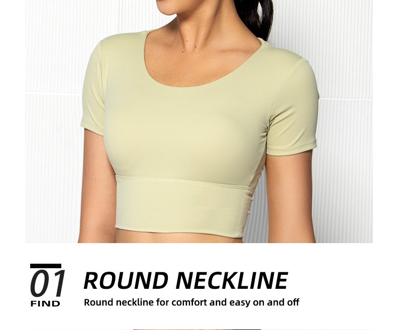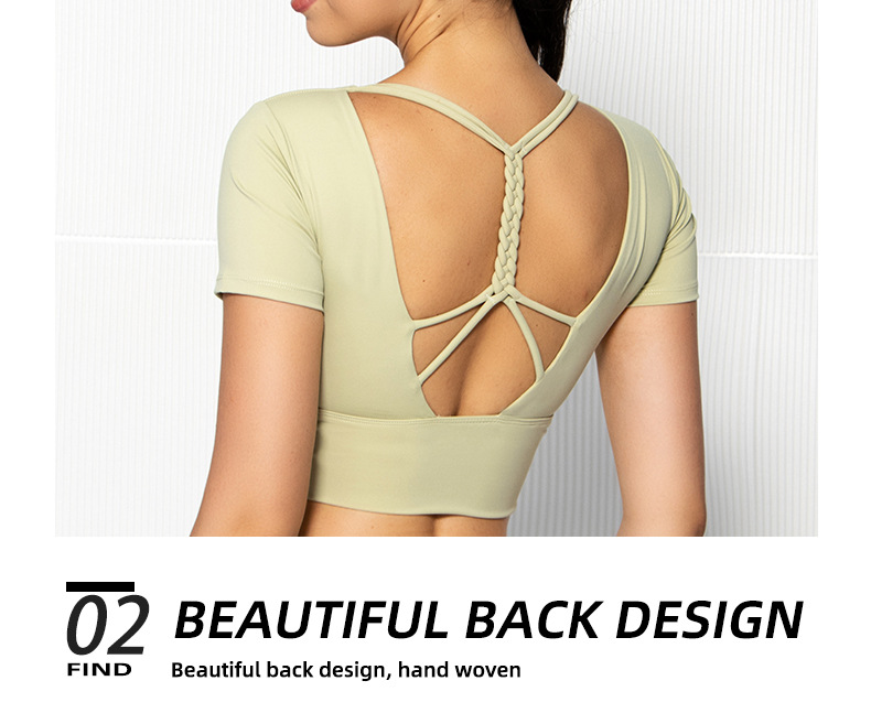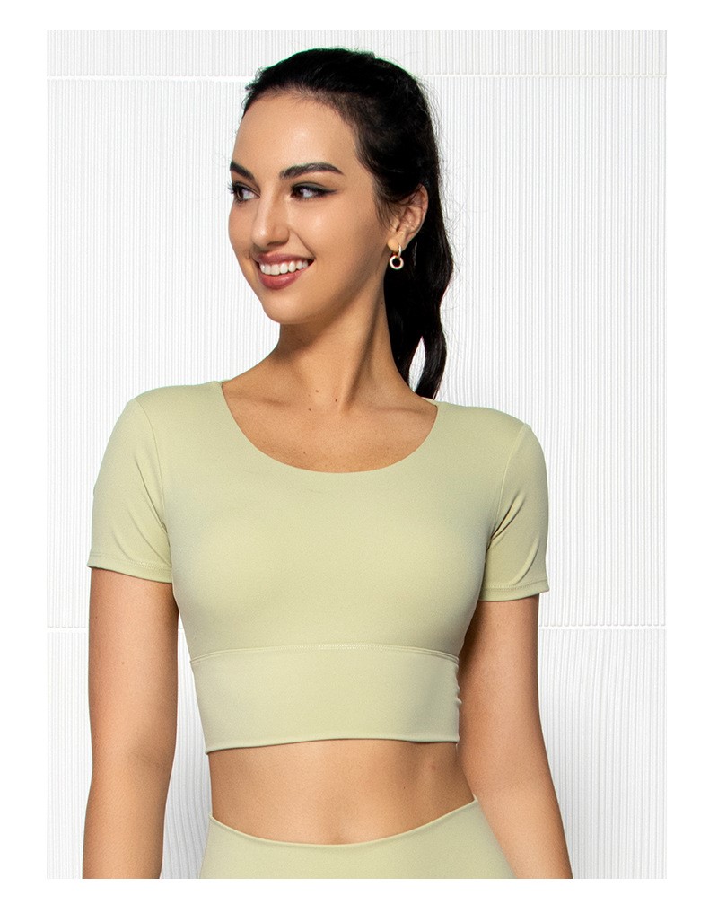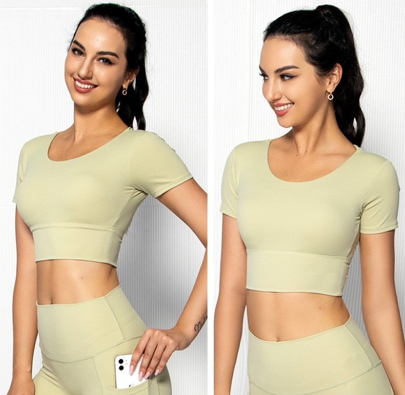 Womens short sleeve crop top padded Y back strap quick dry yoga wear