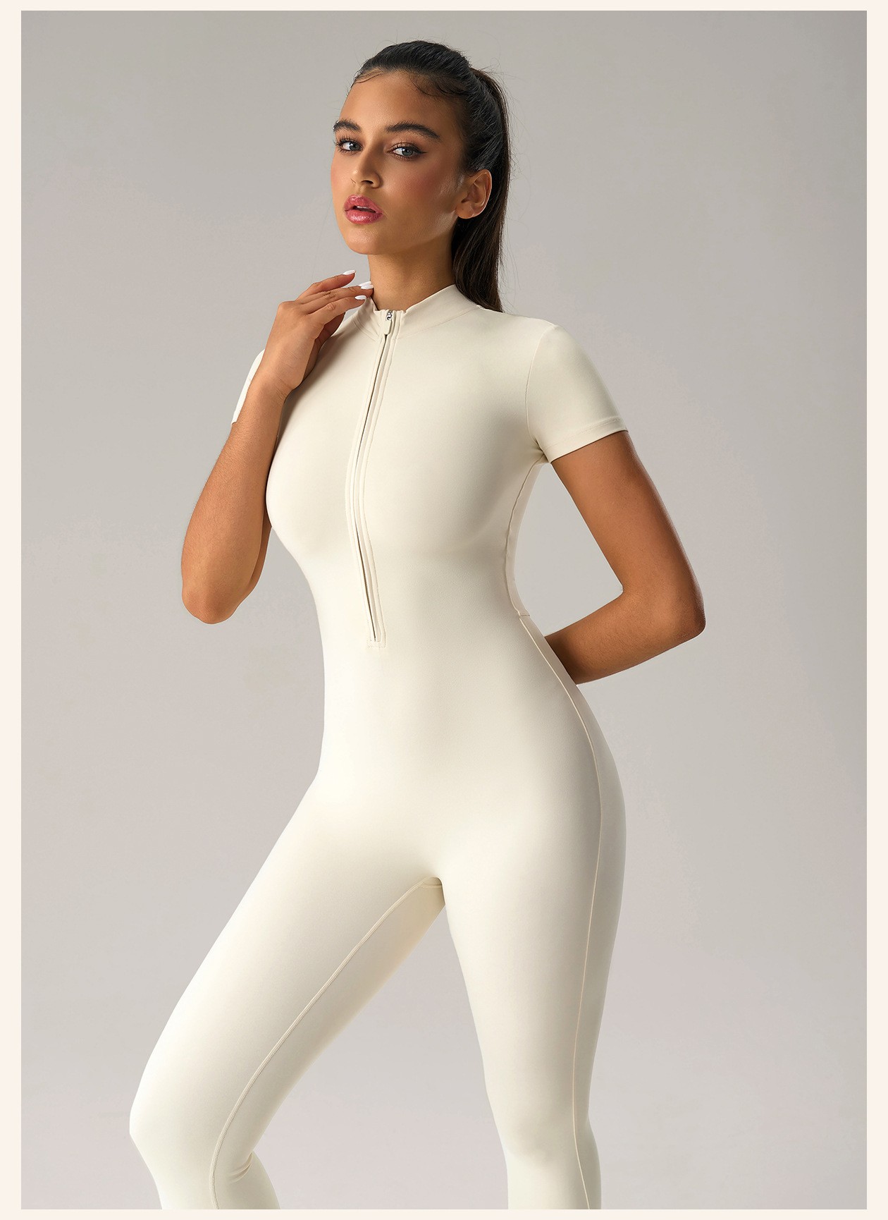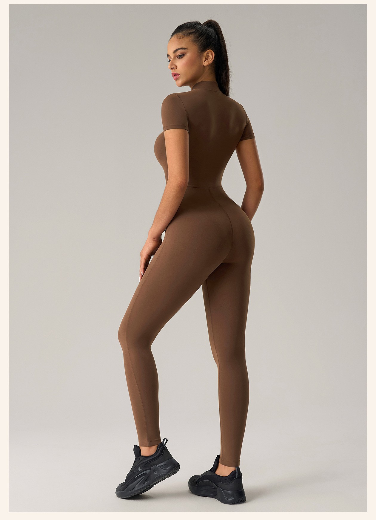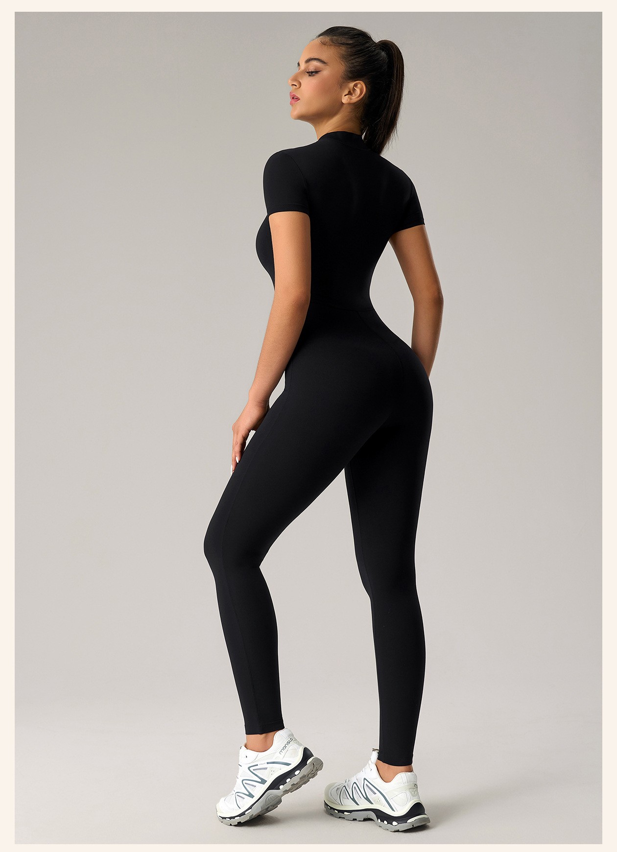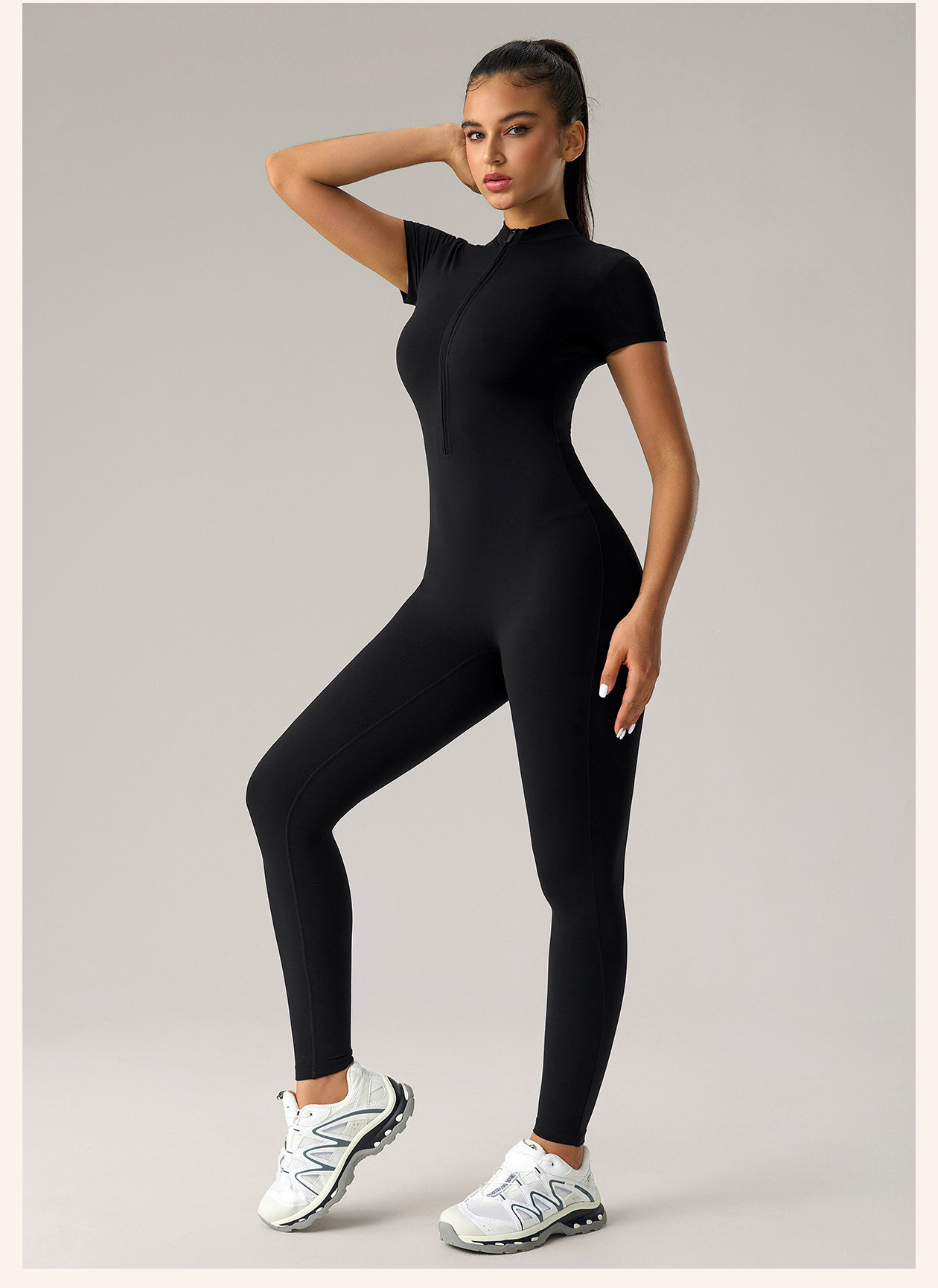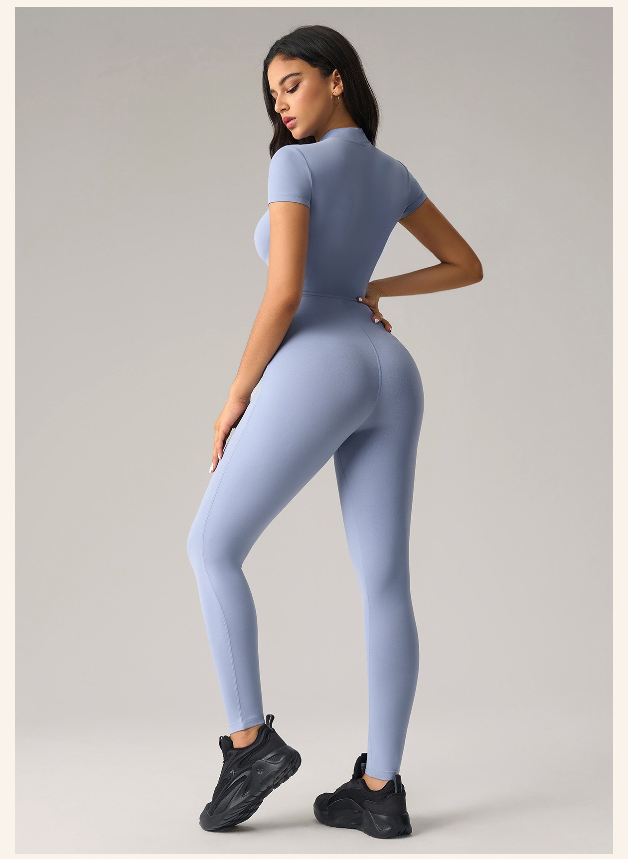 Women’s Short Sleeve Zipper Closure Fitness Jumpsuit Slim Fit Butt Lifting Sports Yoga Bodysuit