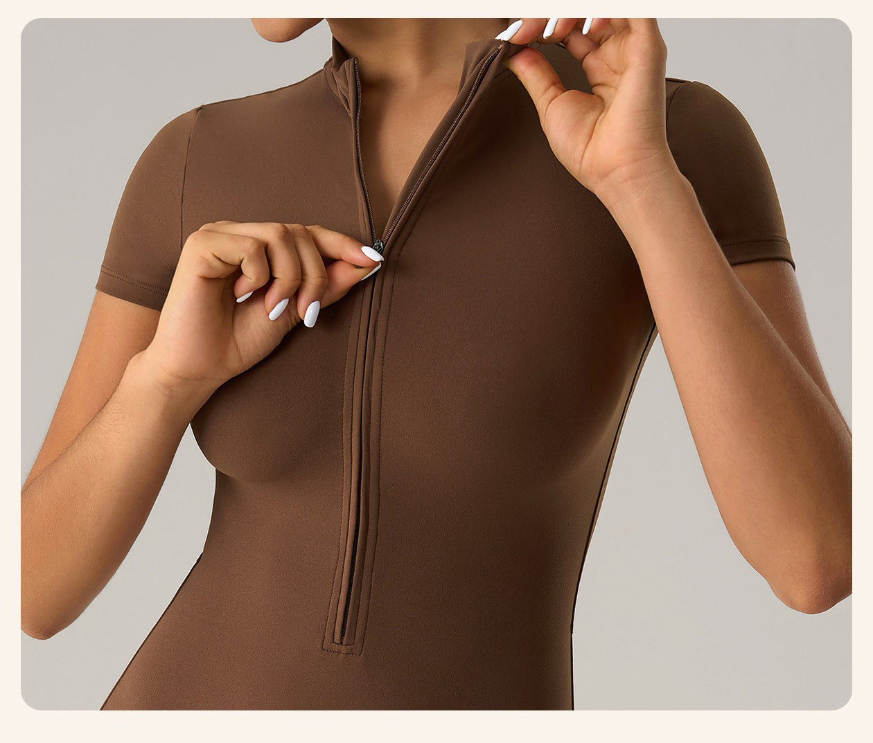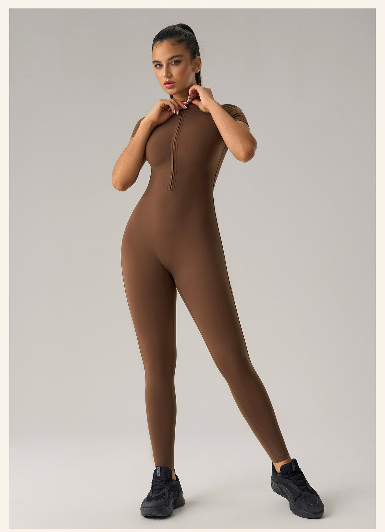 yoga jumpsuit, fitness bodysuit, short sleeve jumpsuit, zipper front, yoga bodysuit, butt lifting, tummy control, slim fit, high stretch, seamless, breathable, quick dry, moisture wicking, women activewear, gym outfit, workout jumpsuit, custom jumpsuit, custom logo, factory direct, Omi Apparel, plus size friendly, fashion fitness, comfortable, stretch fabric, sports bodysuit, training wear, outdoor sport, casual sport, stylish design, bodycon, athletic wear