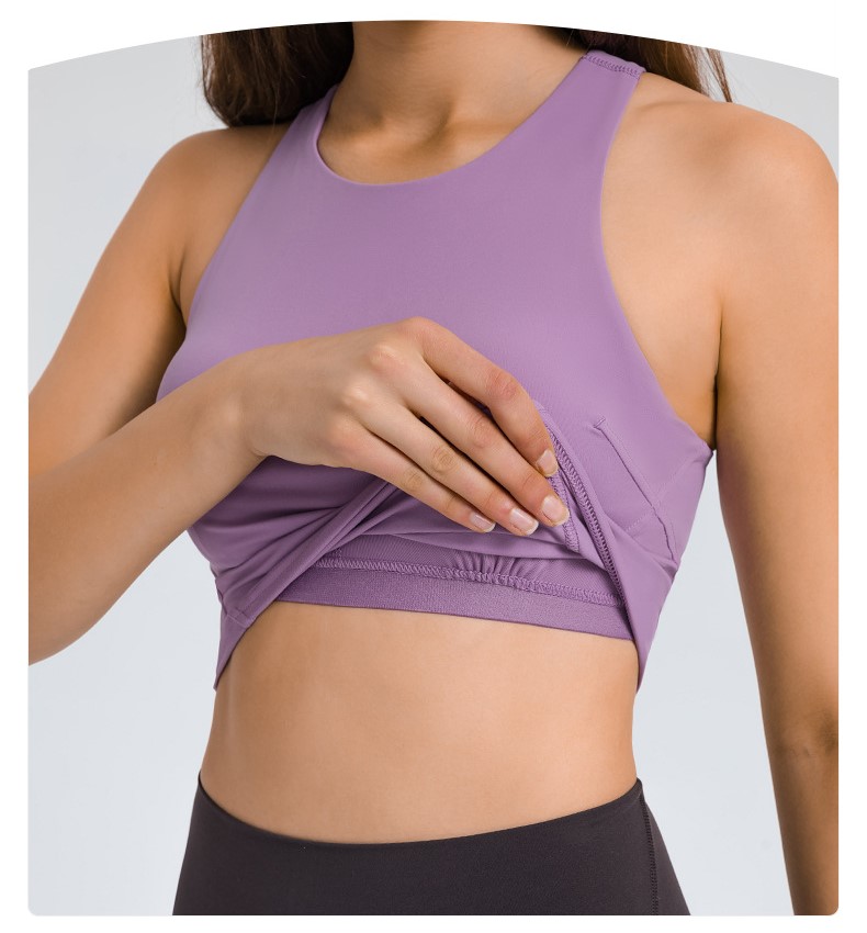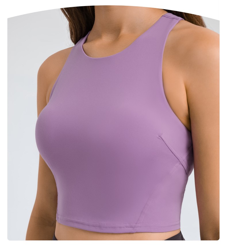 Womens sleeveless tshirts round neck padded yoga crop tank tops with built in shelf bra
