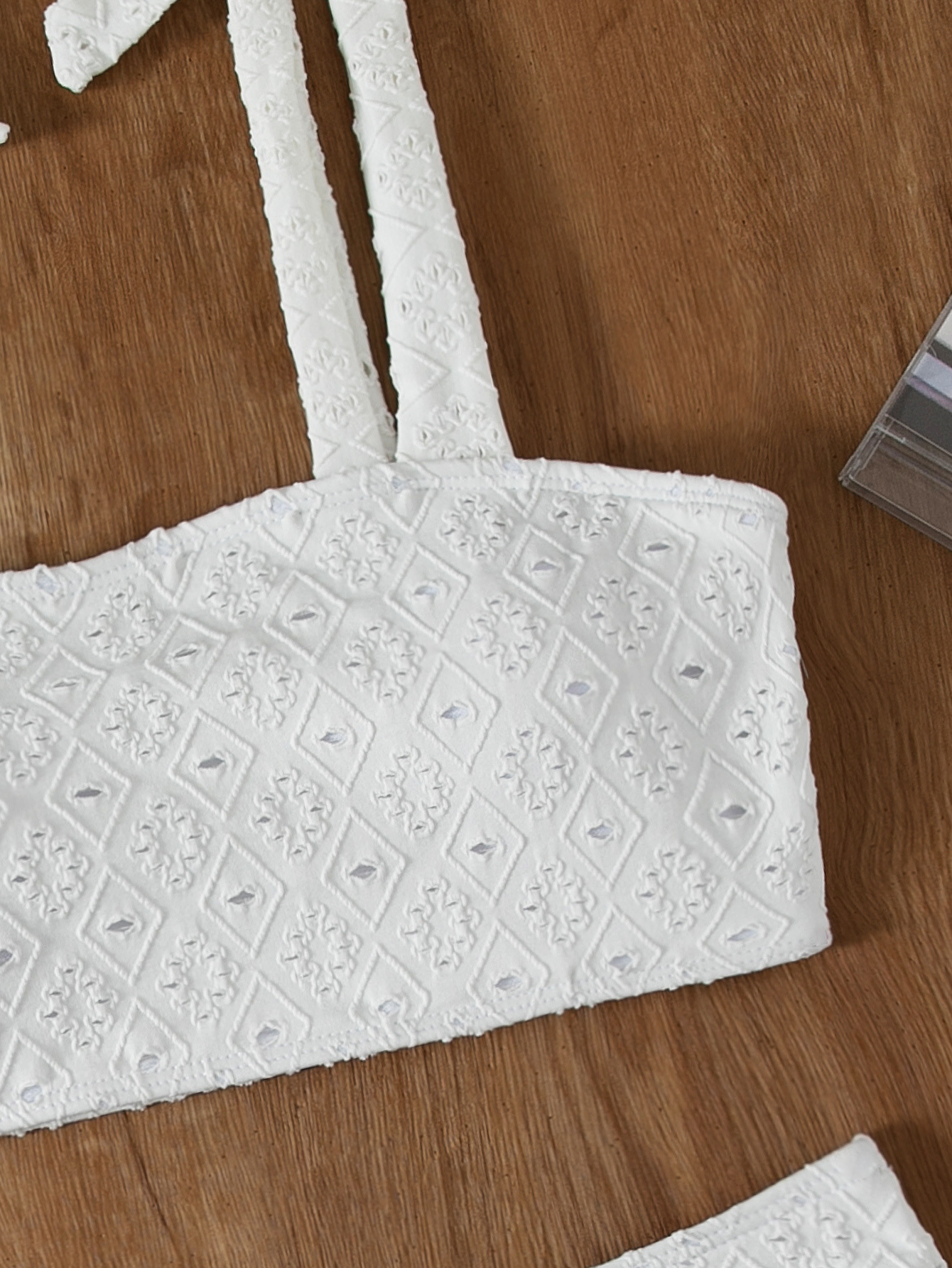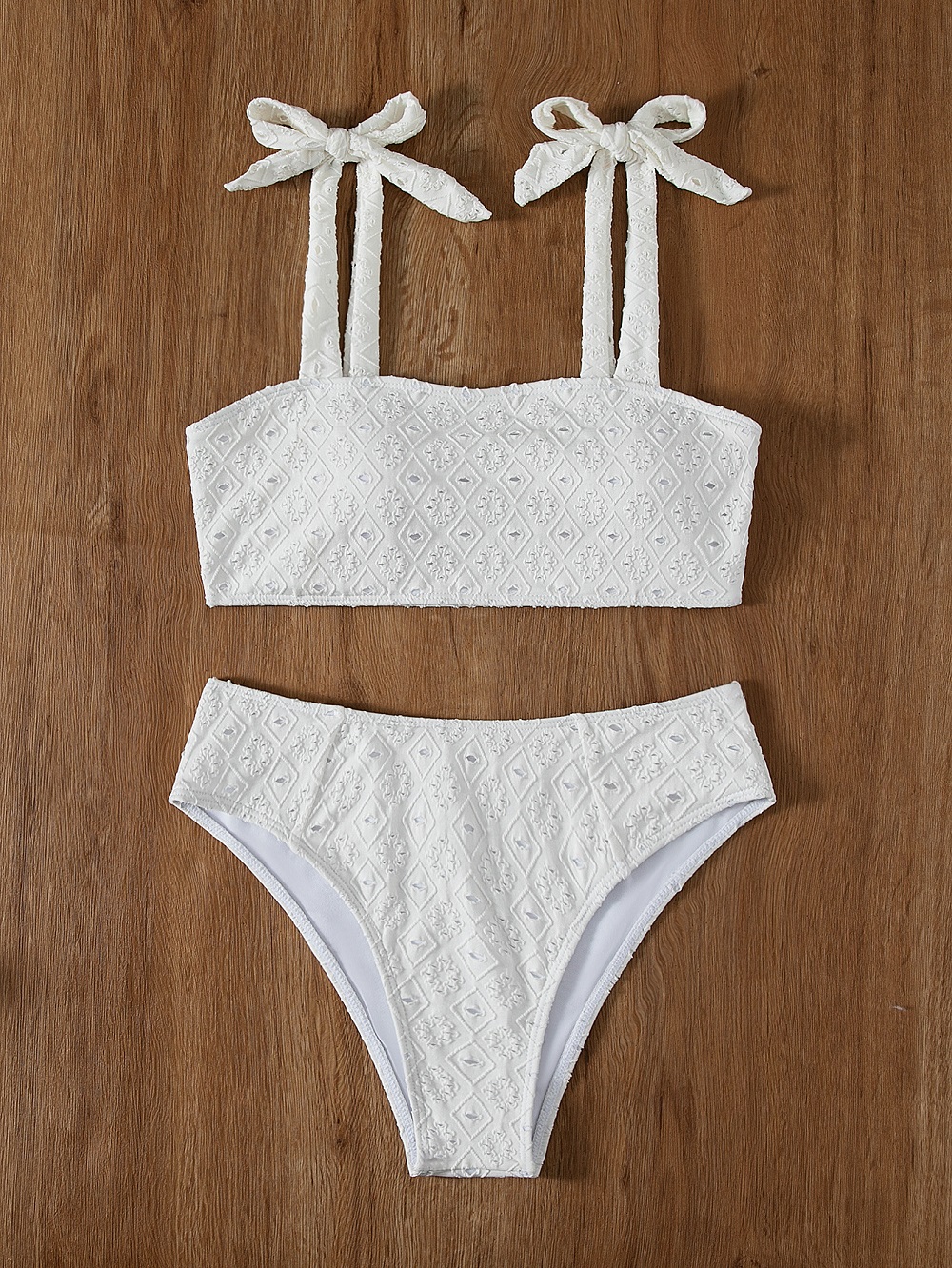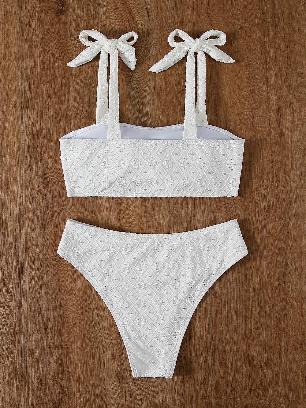Womens smocked strappy bikini high cut triangle swimsuits two piece white bathing suits