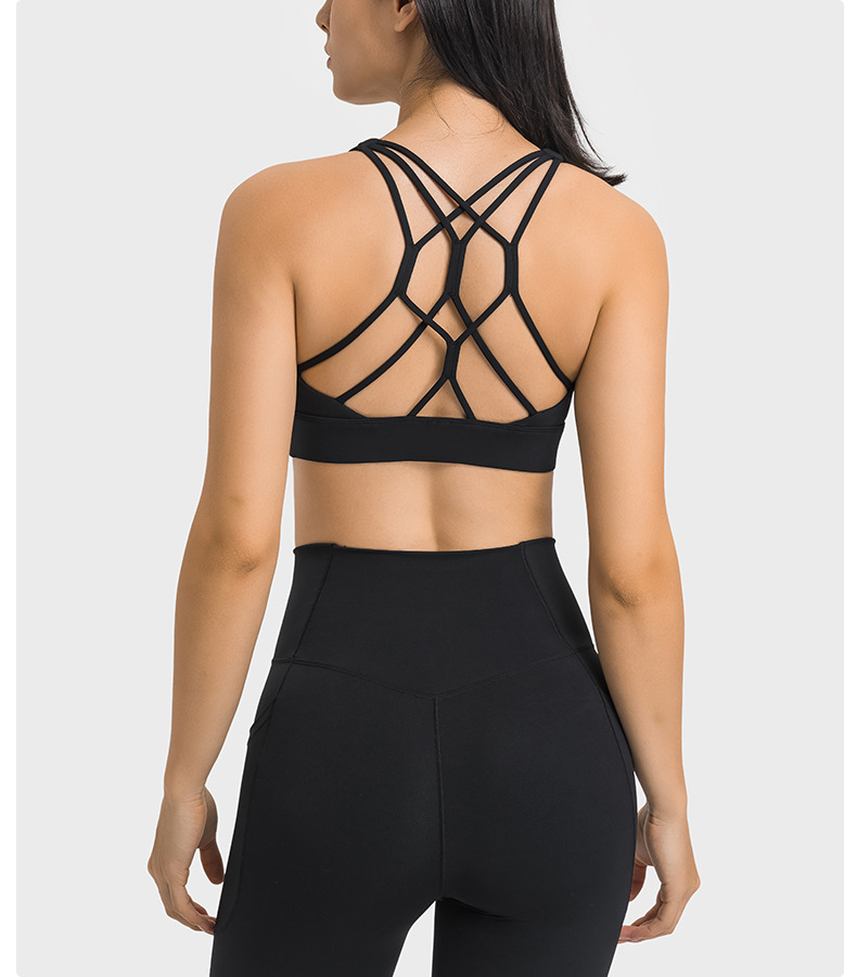Womens sports bra criss cross strappy yoga fitness workout gym cropped bras