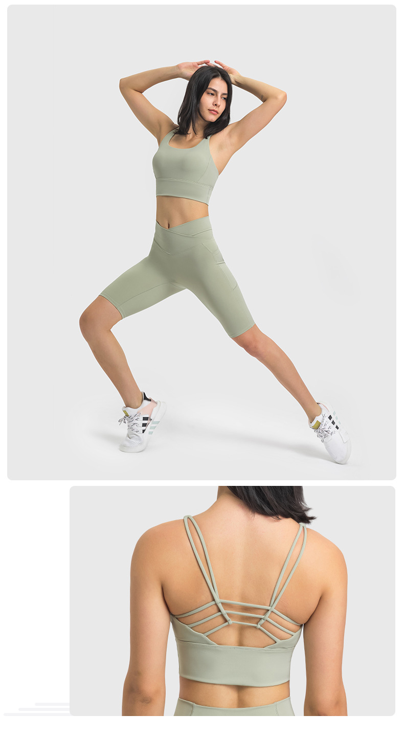 Womens sports bras V back cross spaghetti straps high strength gym bra