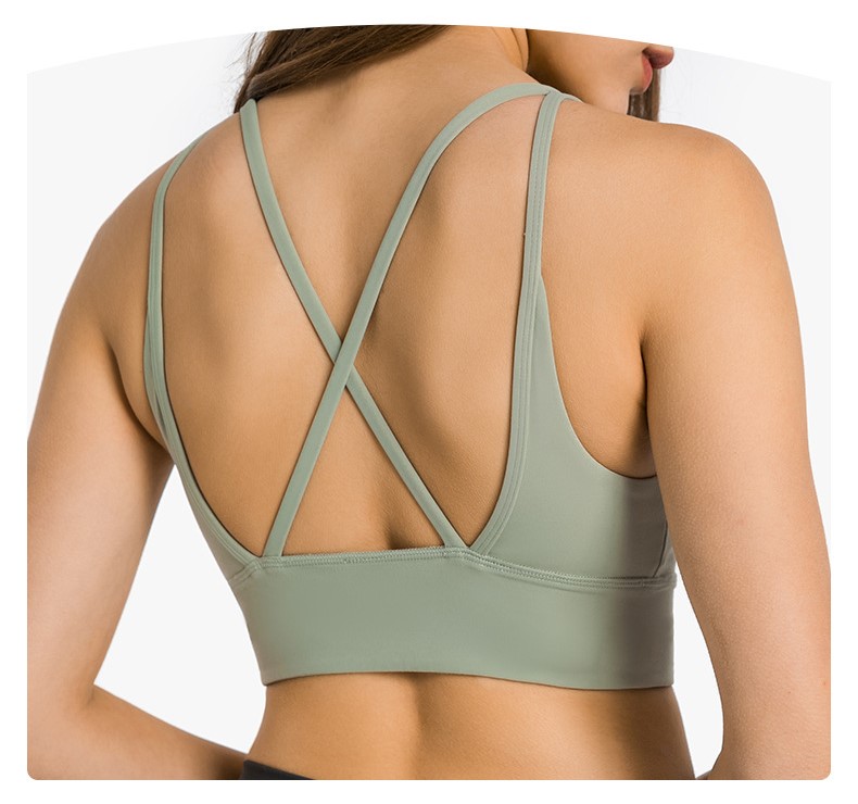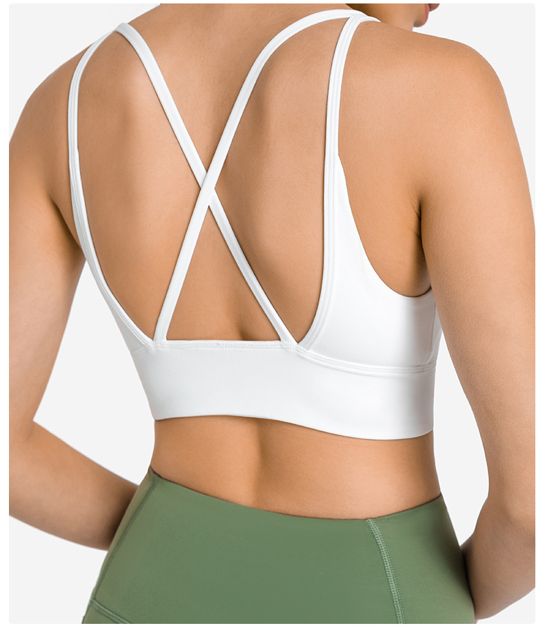 Womens sports bras V neck criss cross strappy gym fitness yoga workout running bra