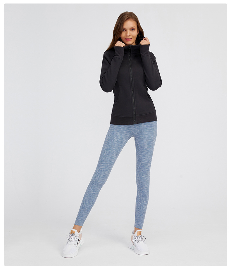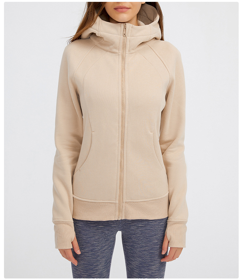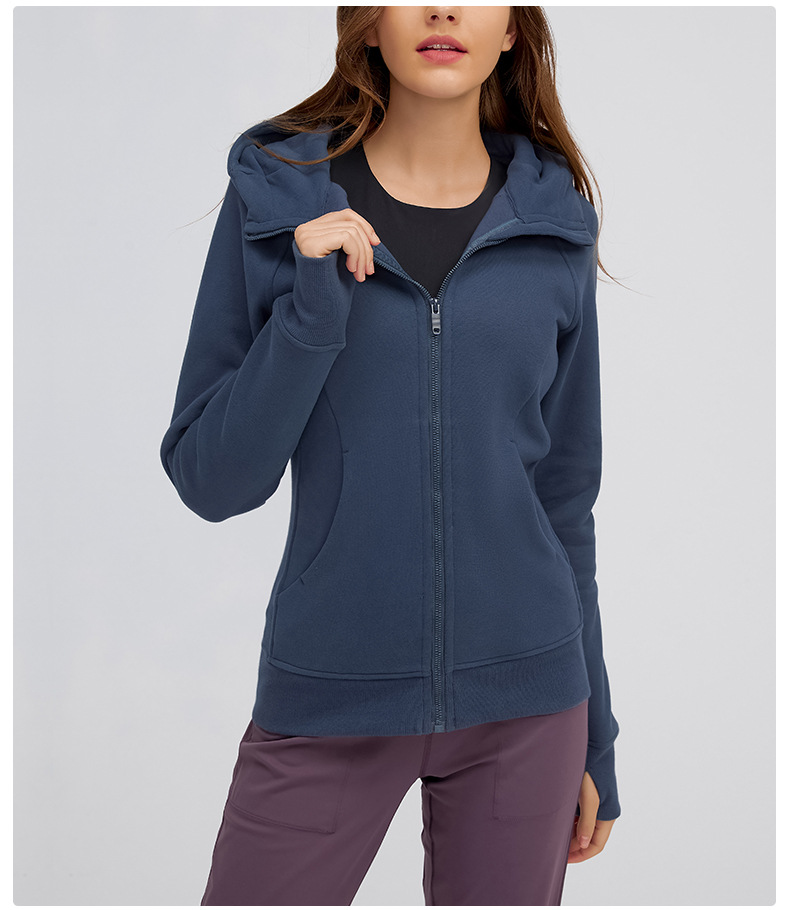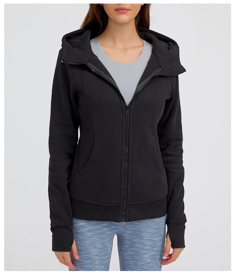 Womens sports hoodies full zip outdoor winter jackets slim fit casual coat with thumb hole