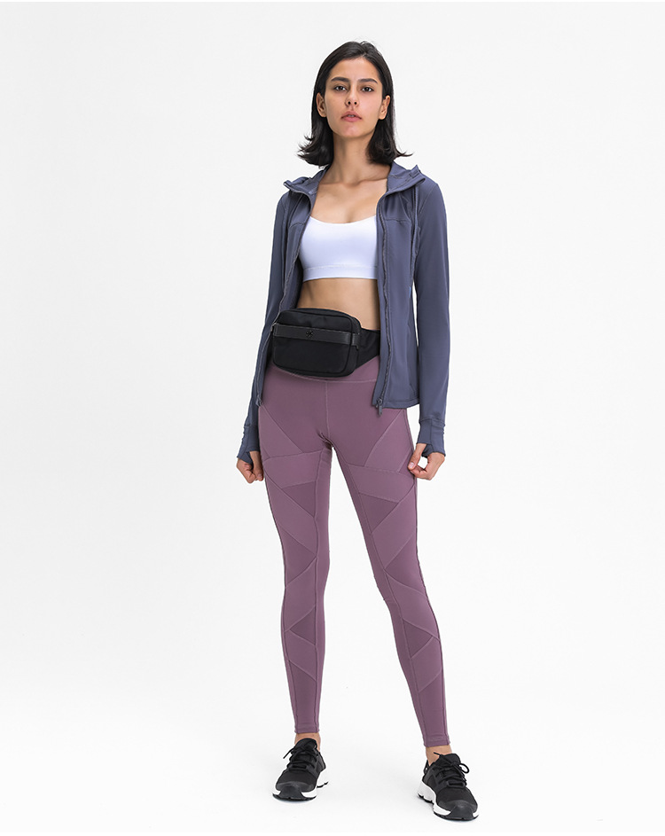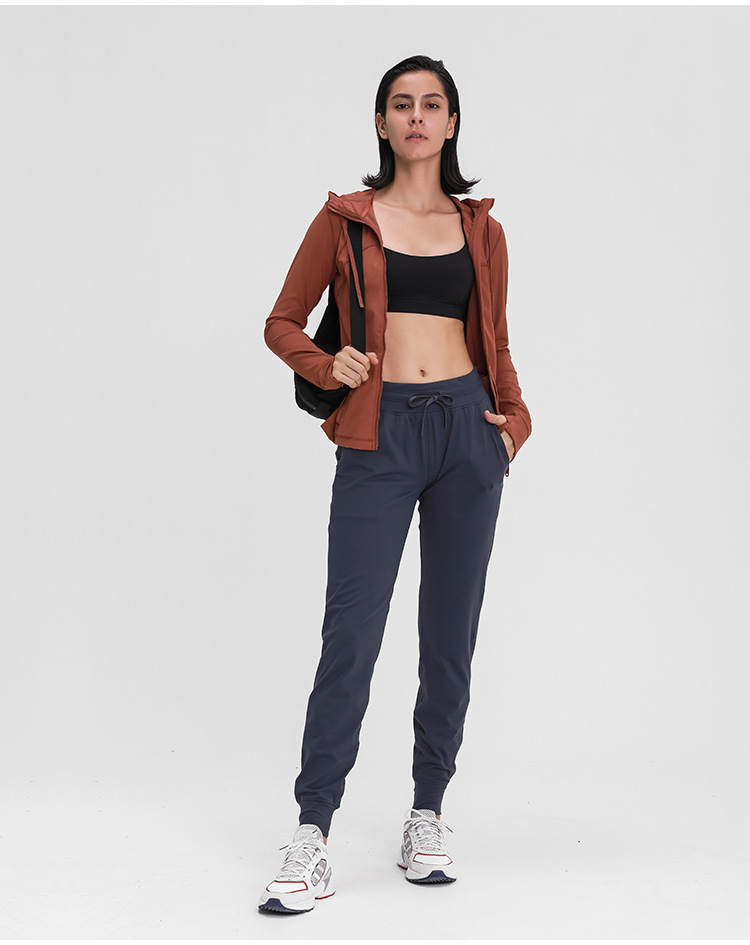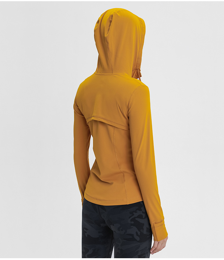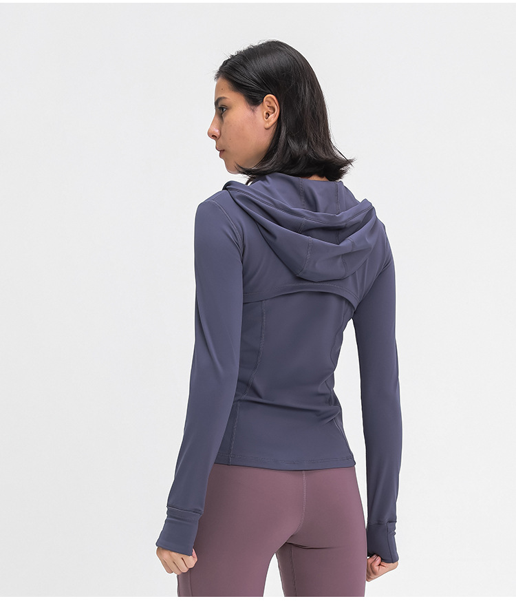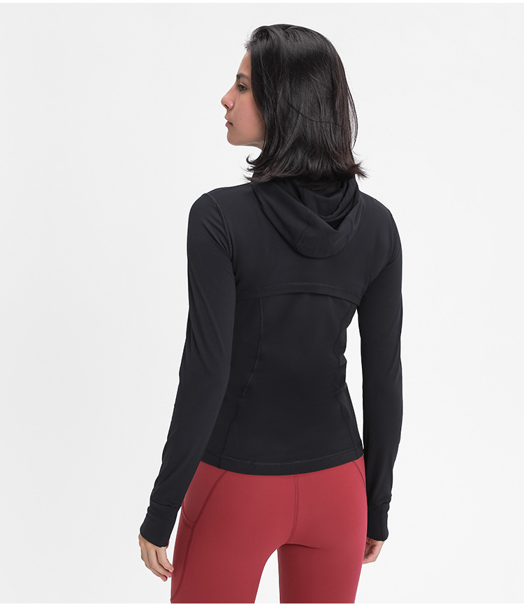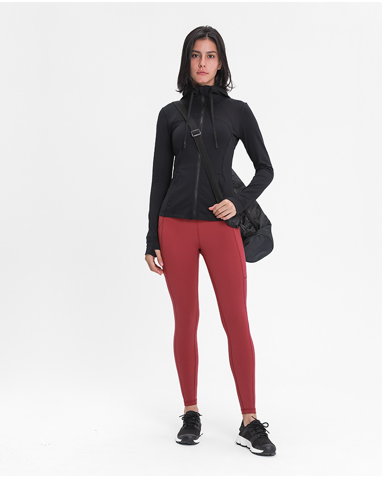 Womens sports hoodies slim fit full zip running tights hooded jacket with thumb hole