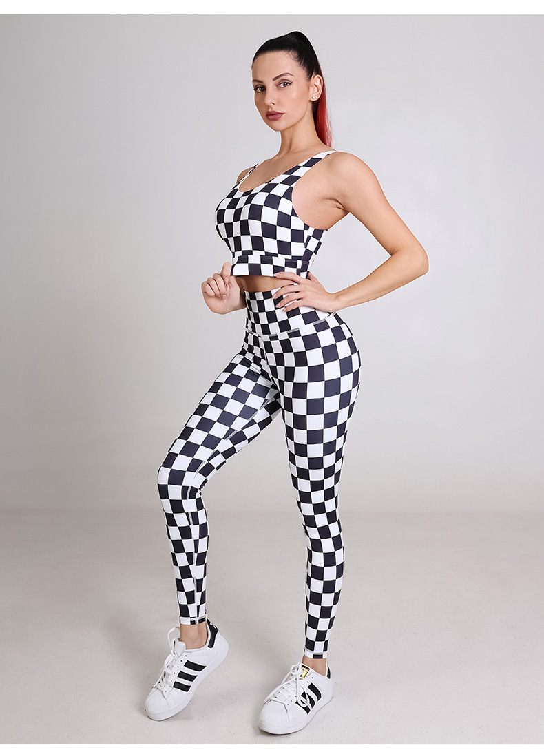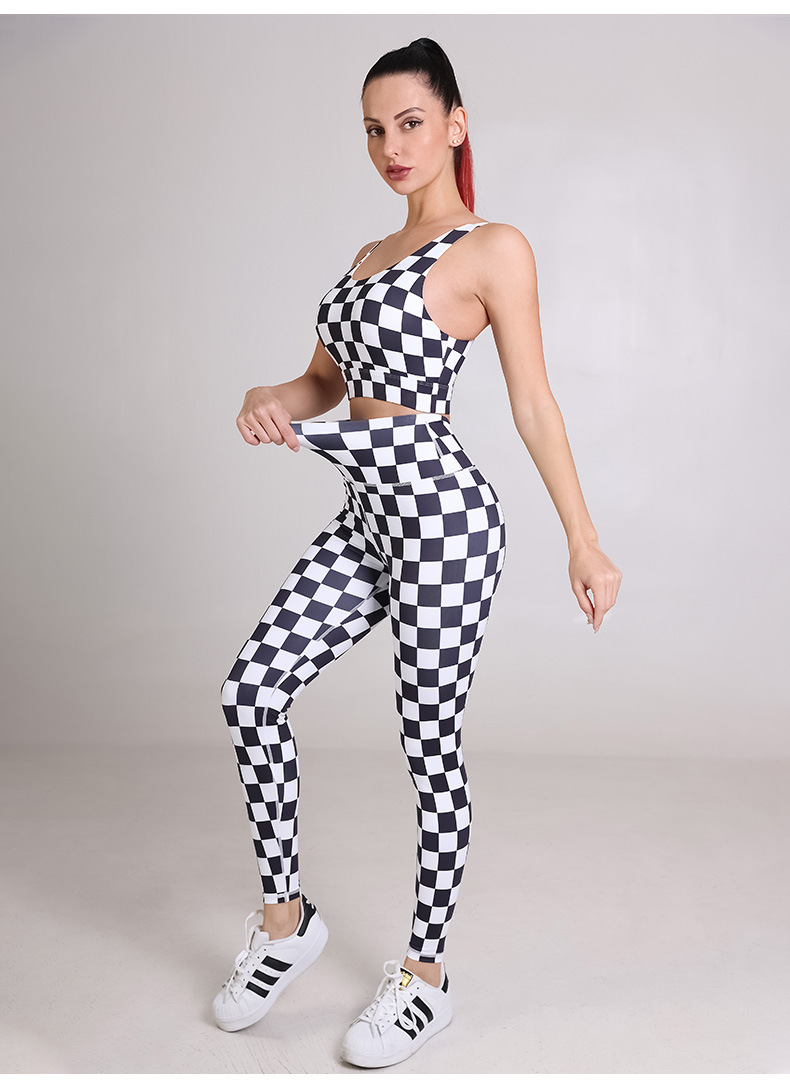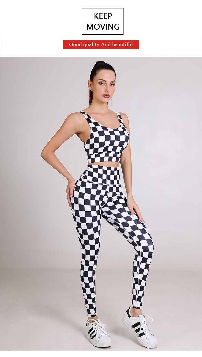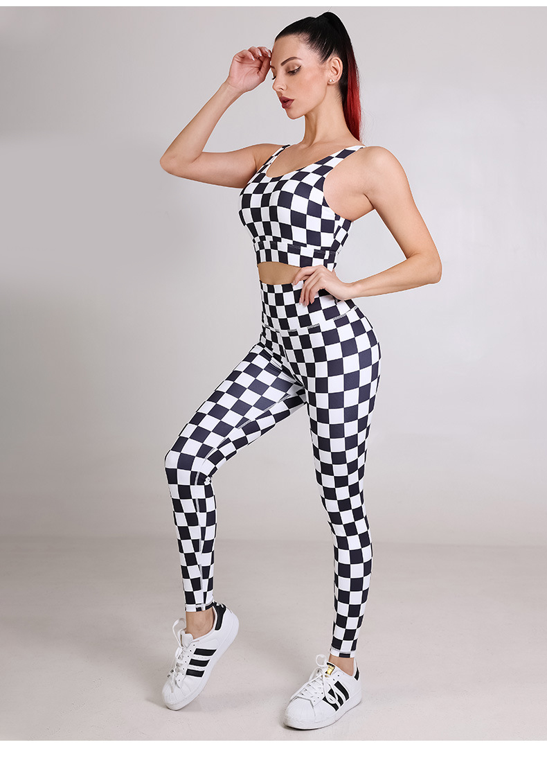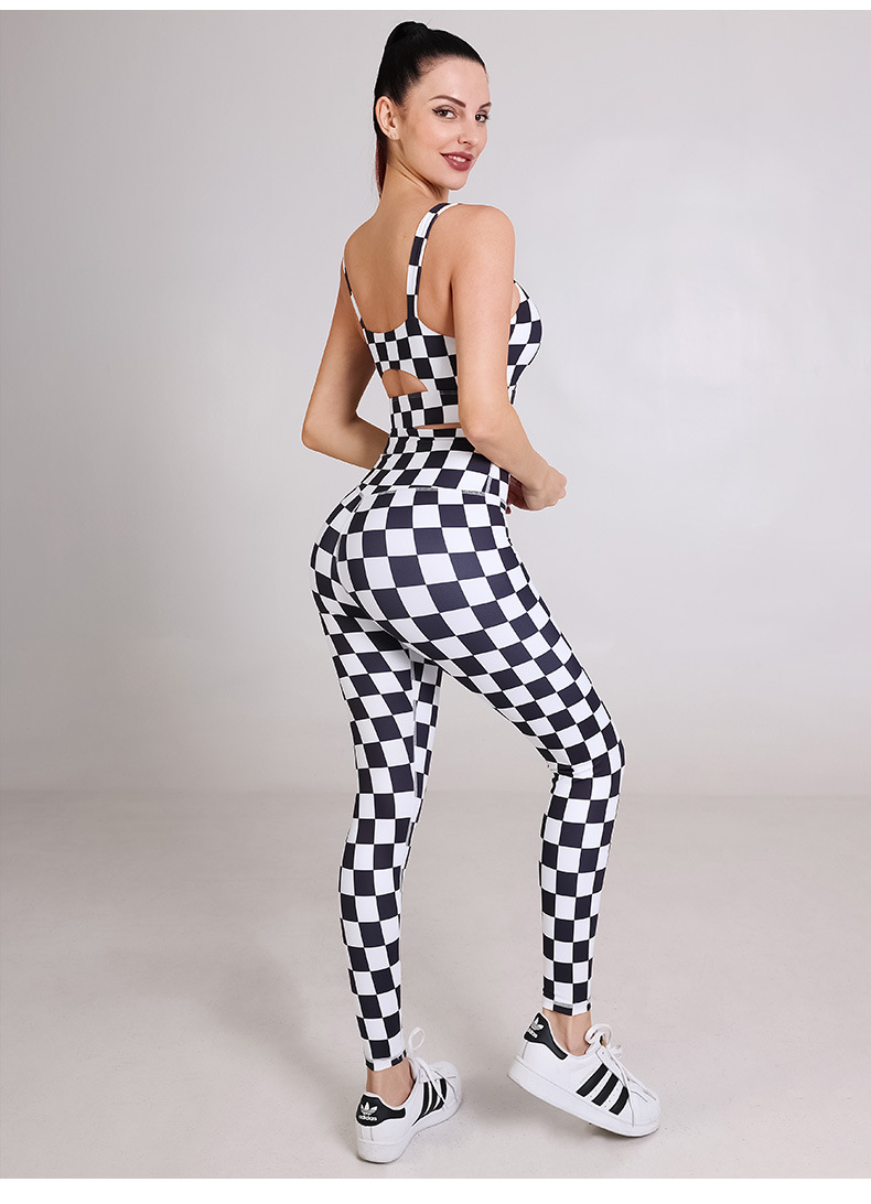 Womens sportswear custom checkerboard printed workout sports bras fitness leggings yoga wear set