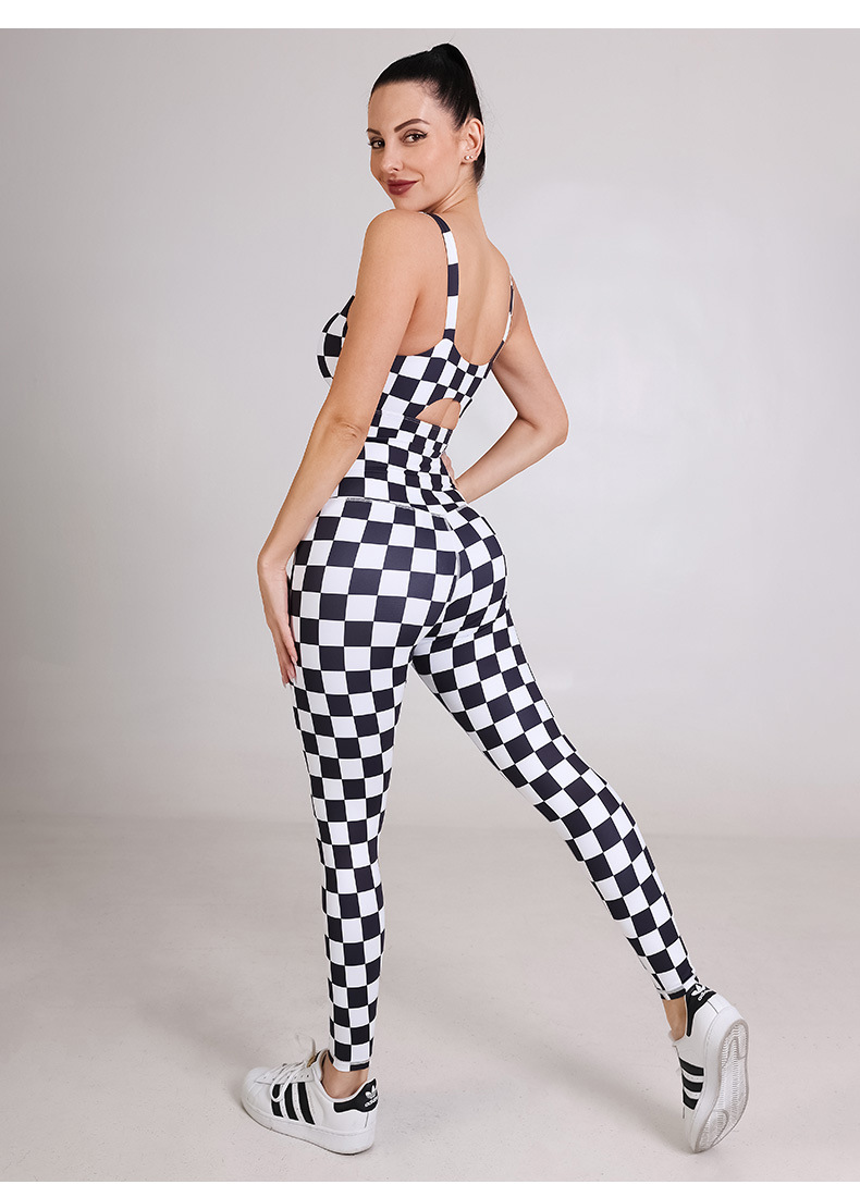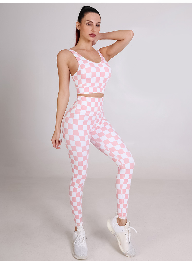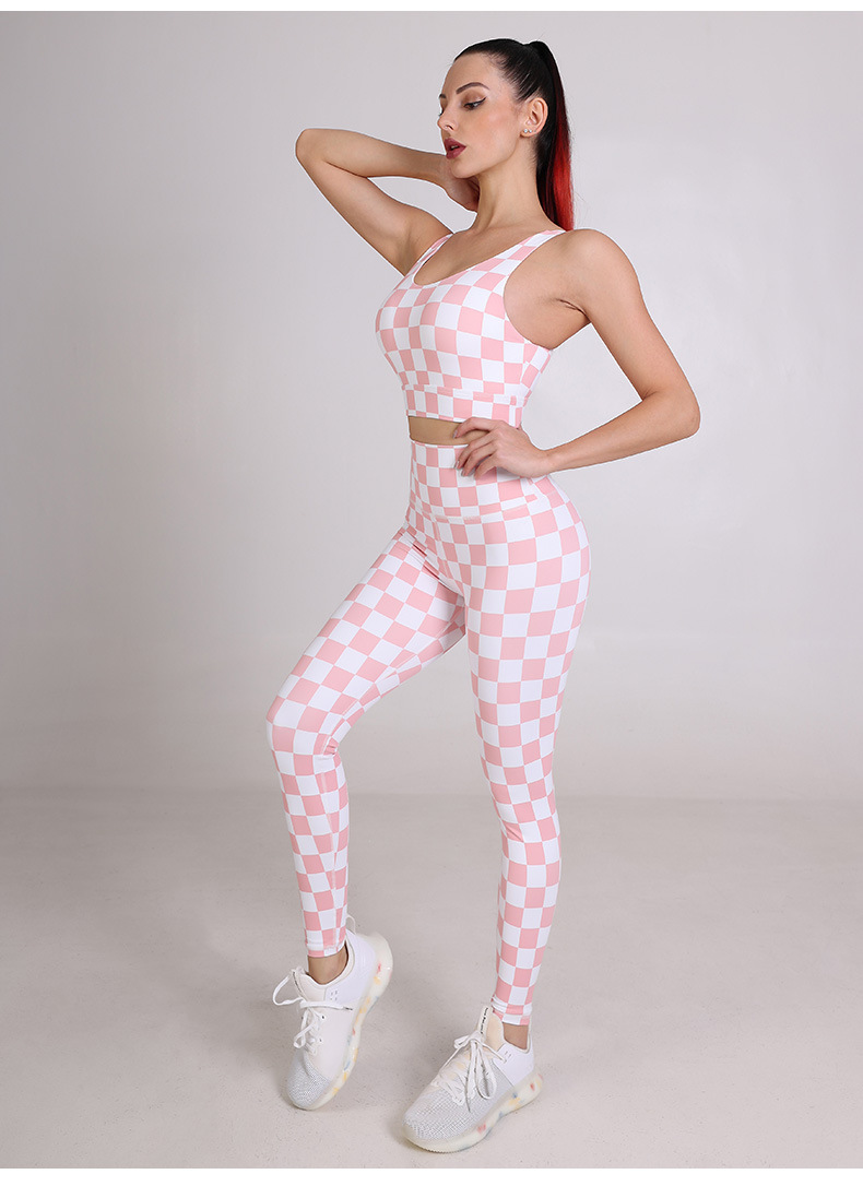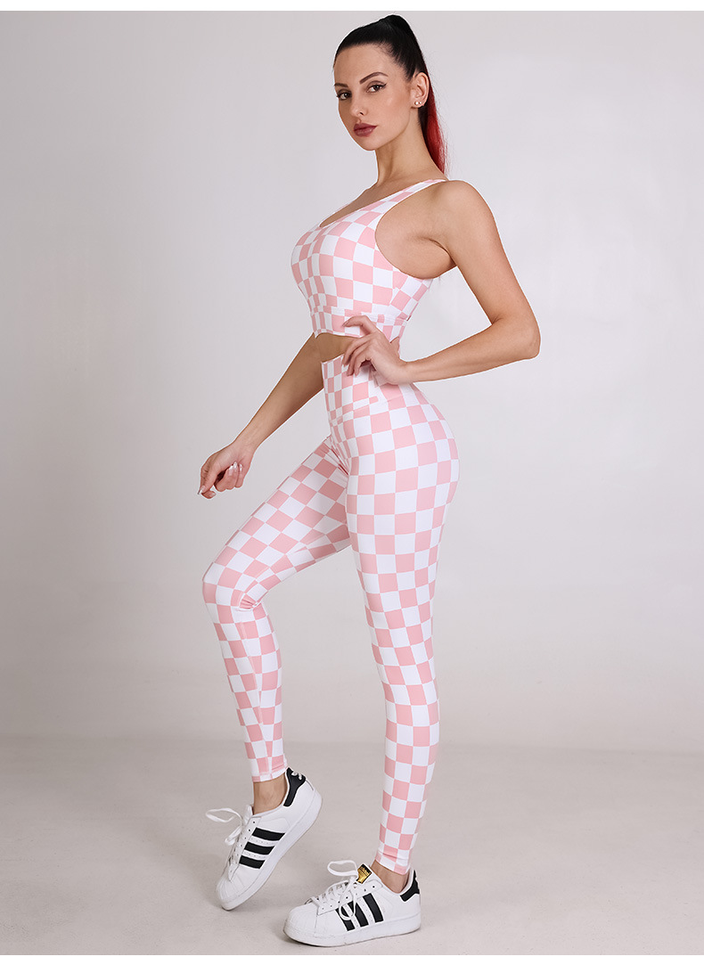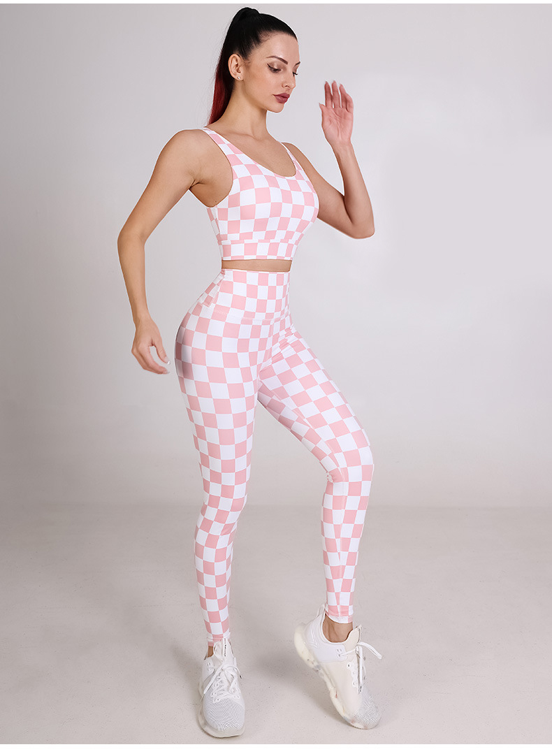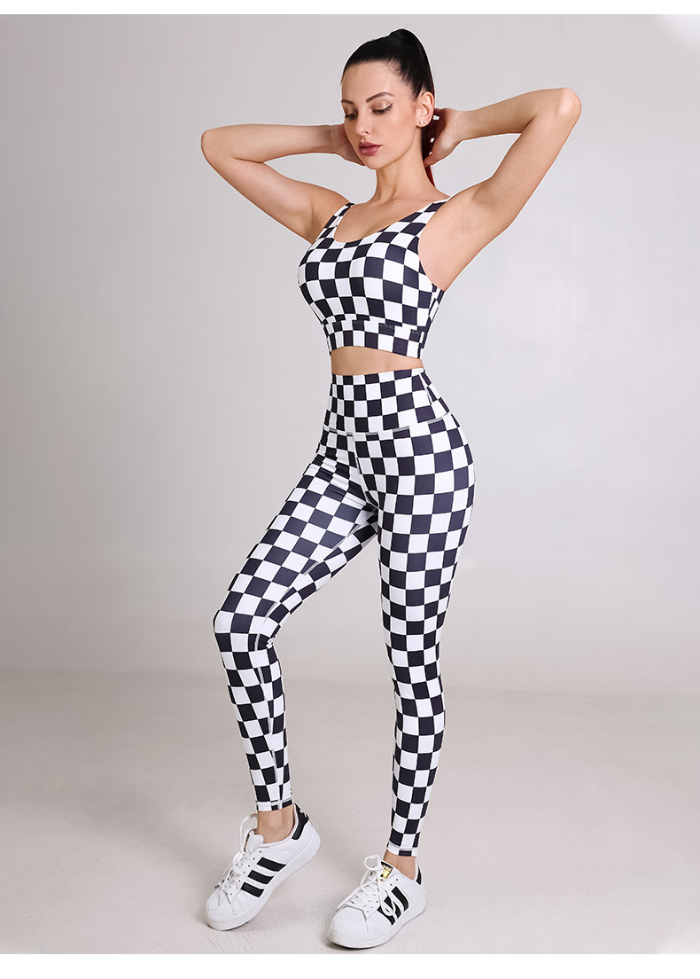 Womens sportswear custom checkerboard printed workout sports bras fitness leggings yoga wear set
