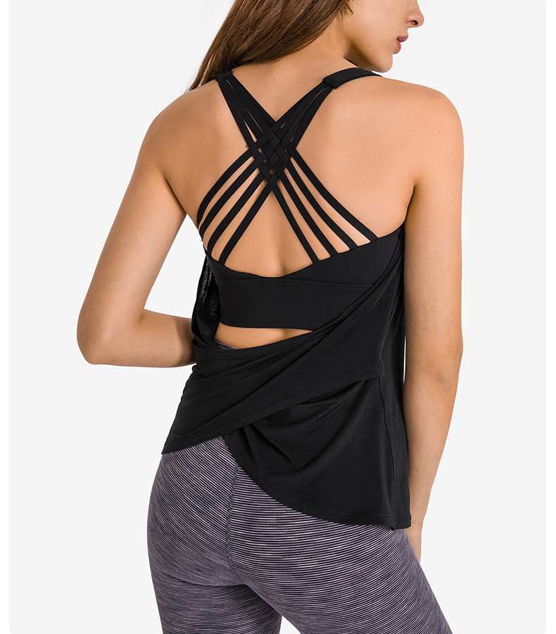 Womens tank top insert cross strap sports bra running yoga wear sleeveless shirts