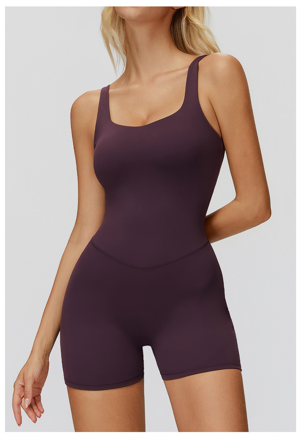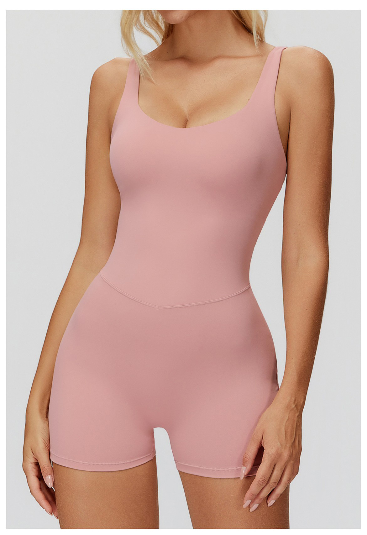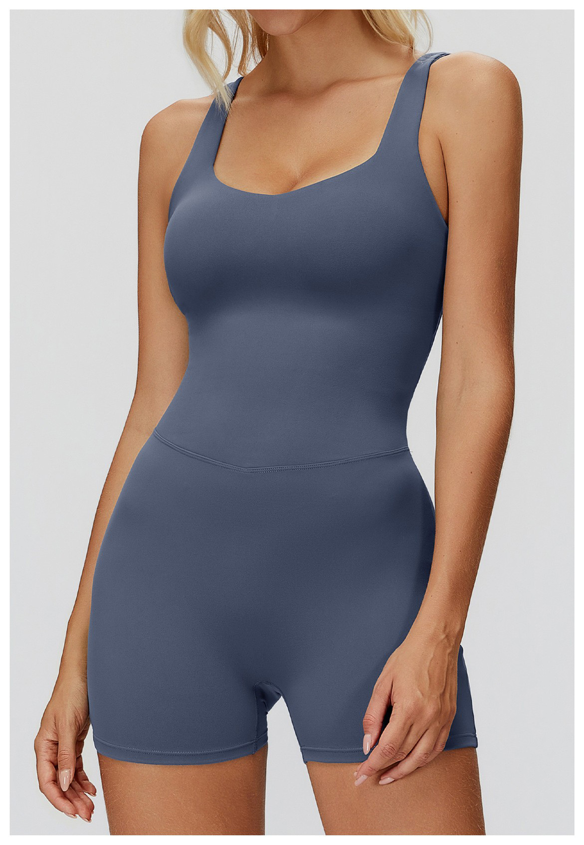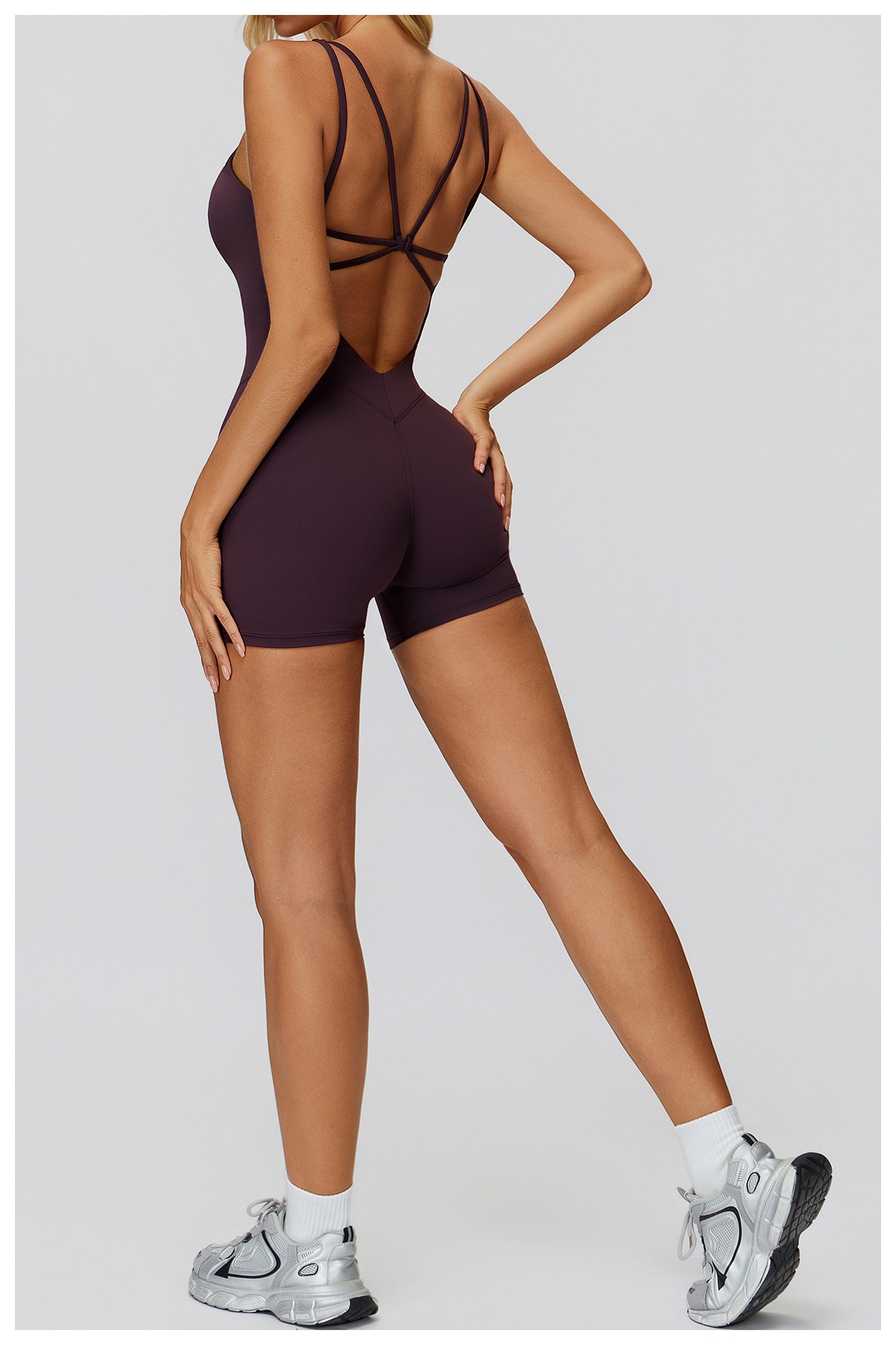 Women’s Tight-Fitting Crisscross Back Yoga Bodysuit – Customizable High Elastic Short-Length One-Piece for Yoga, Running & Gym