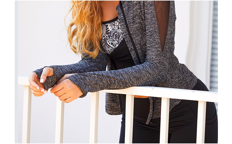 Women’s workout fitness yoga mesh patchwork thumb holes jacket – Sports Jackets | Sportswear