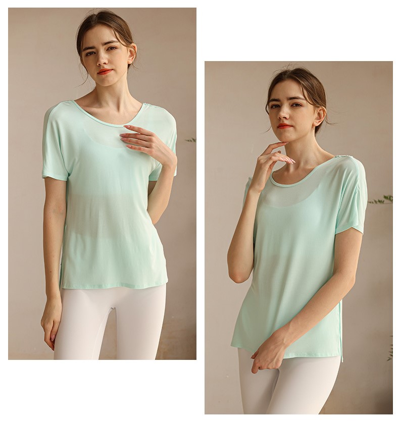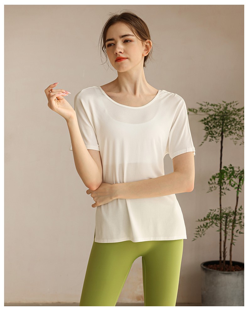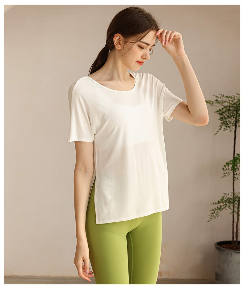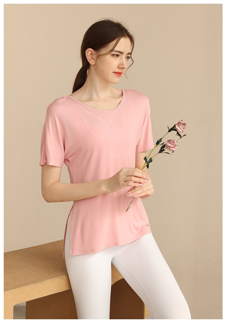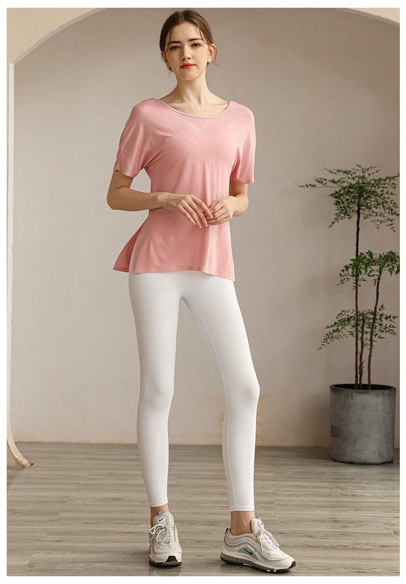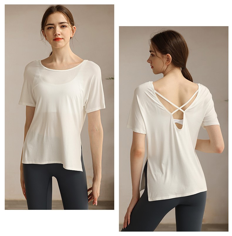 Womens workout tshirt side split V back with cross strappy sexy yoga running t-shirt