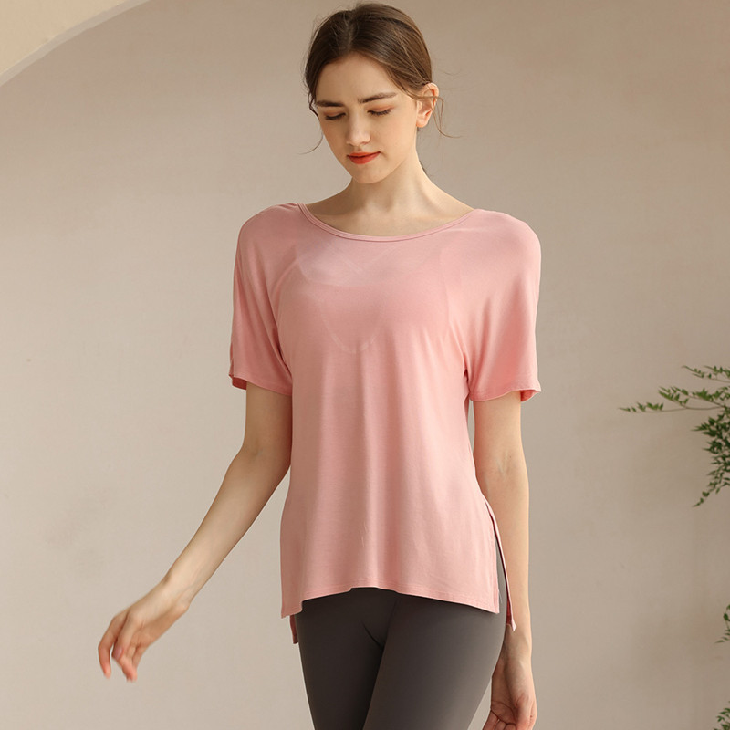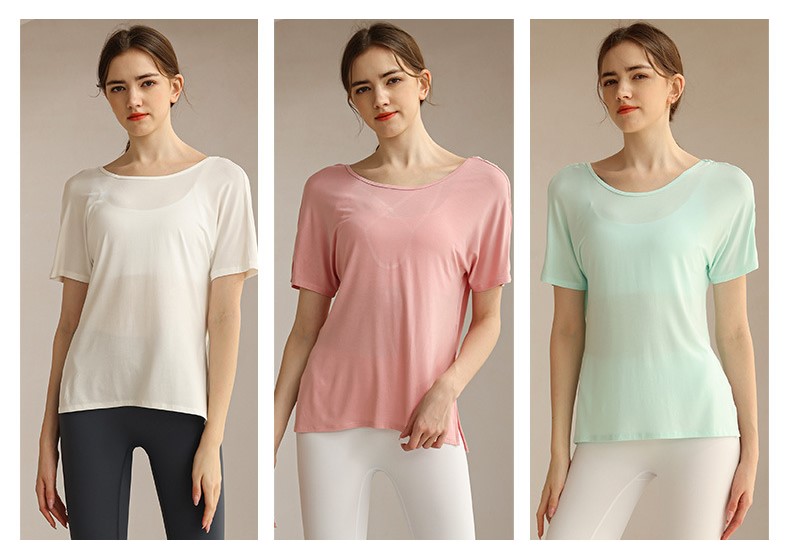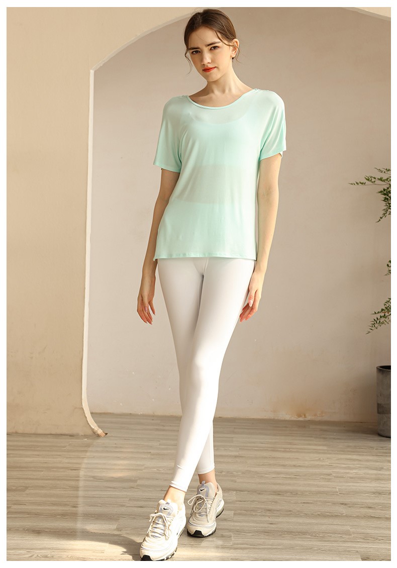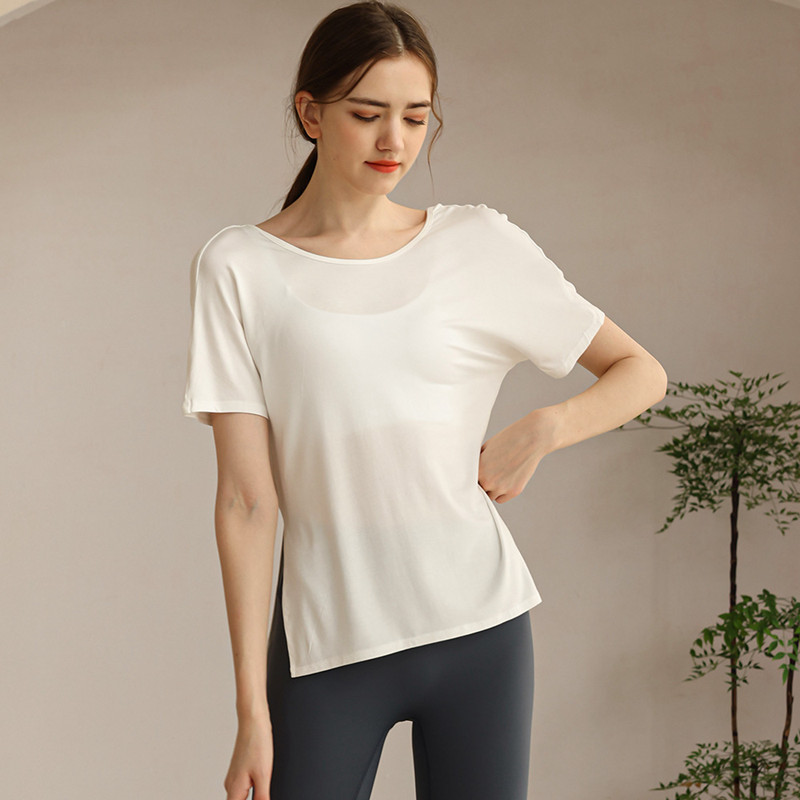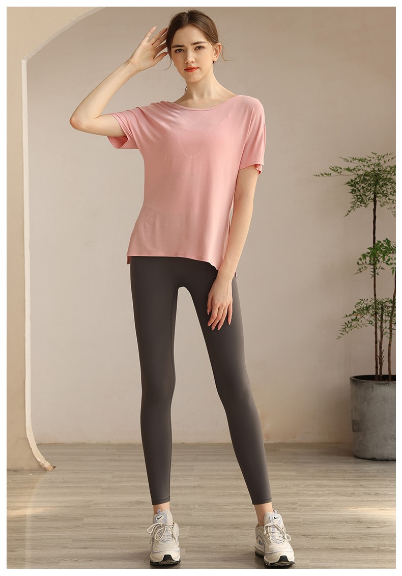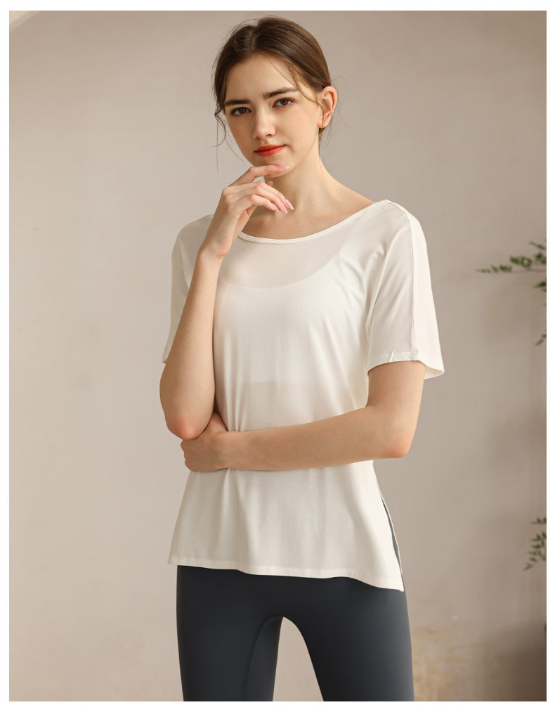 Womens workout tshirt side split V back with cross strappy sexy yoga running t-shirt