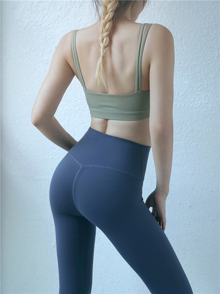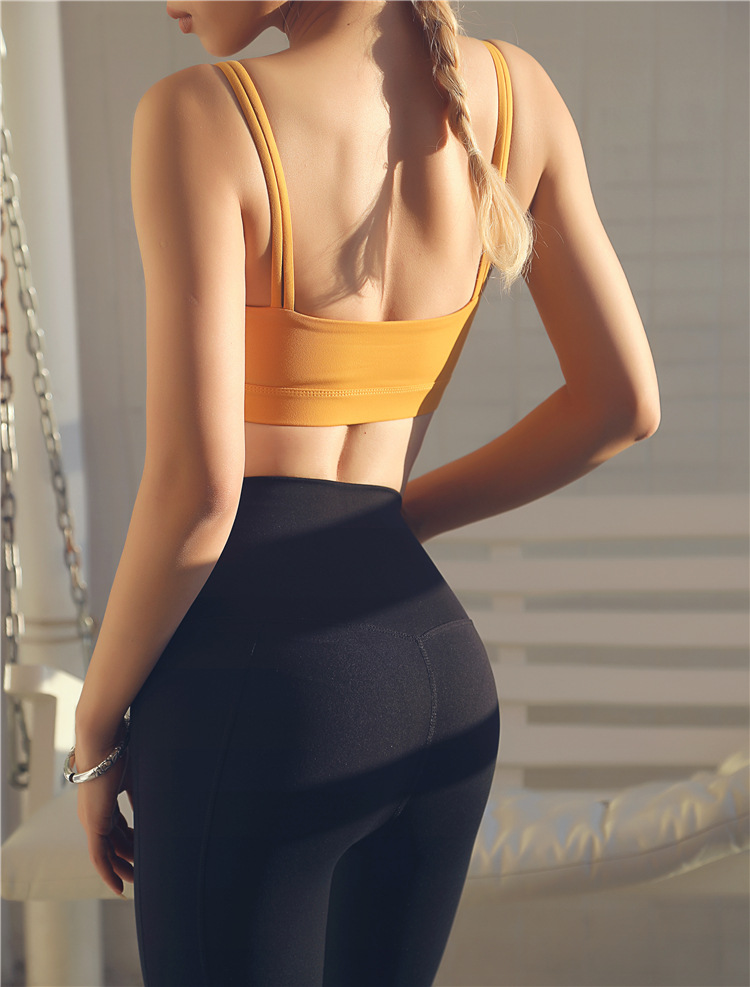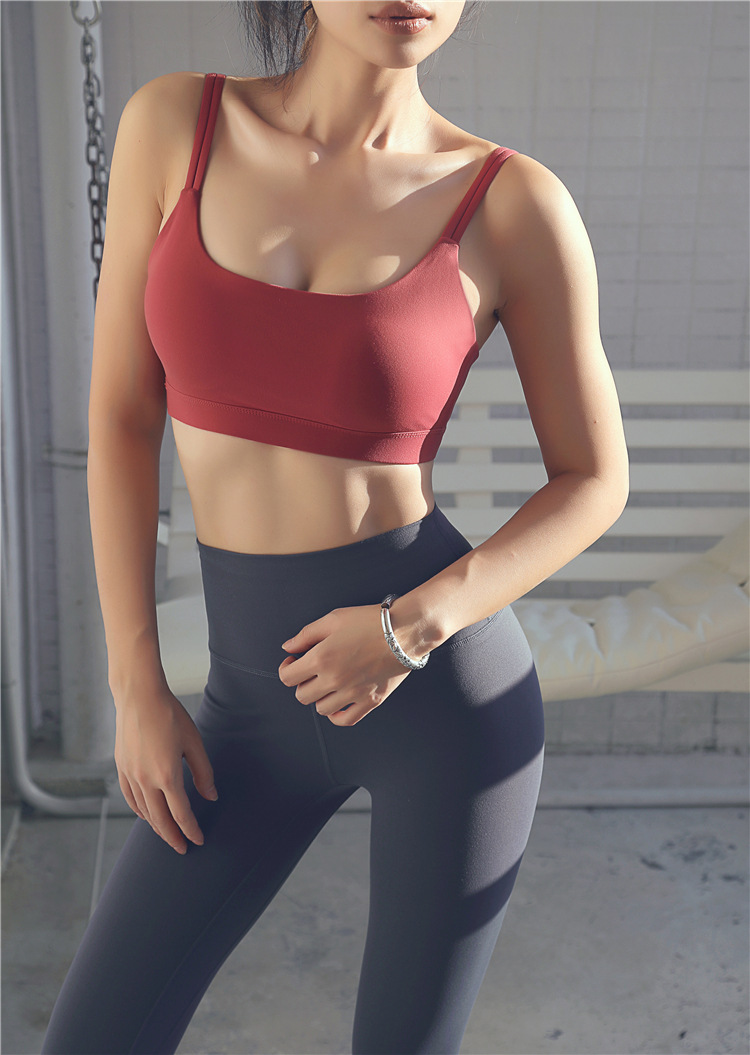 Womens yoga fitness sports bra double spaghetti straps running workout gym tops underwear