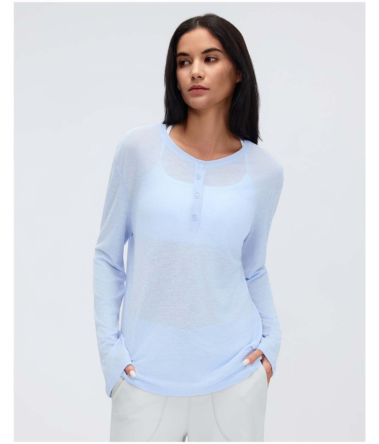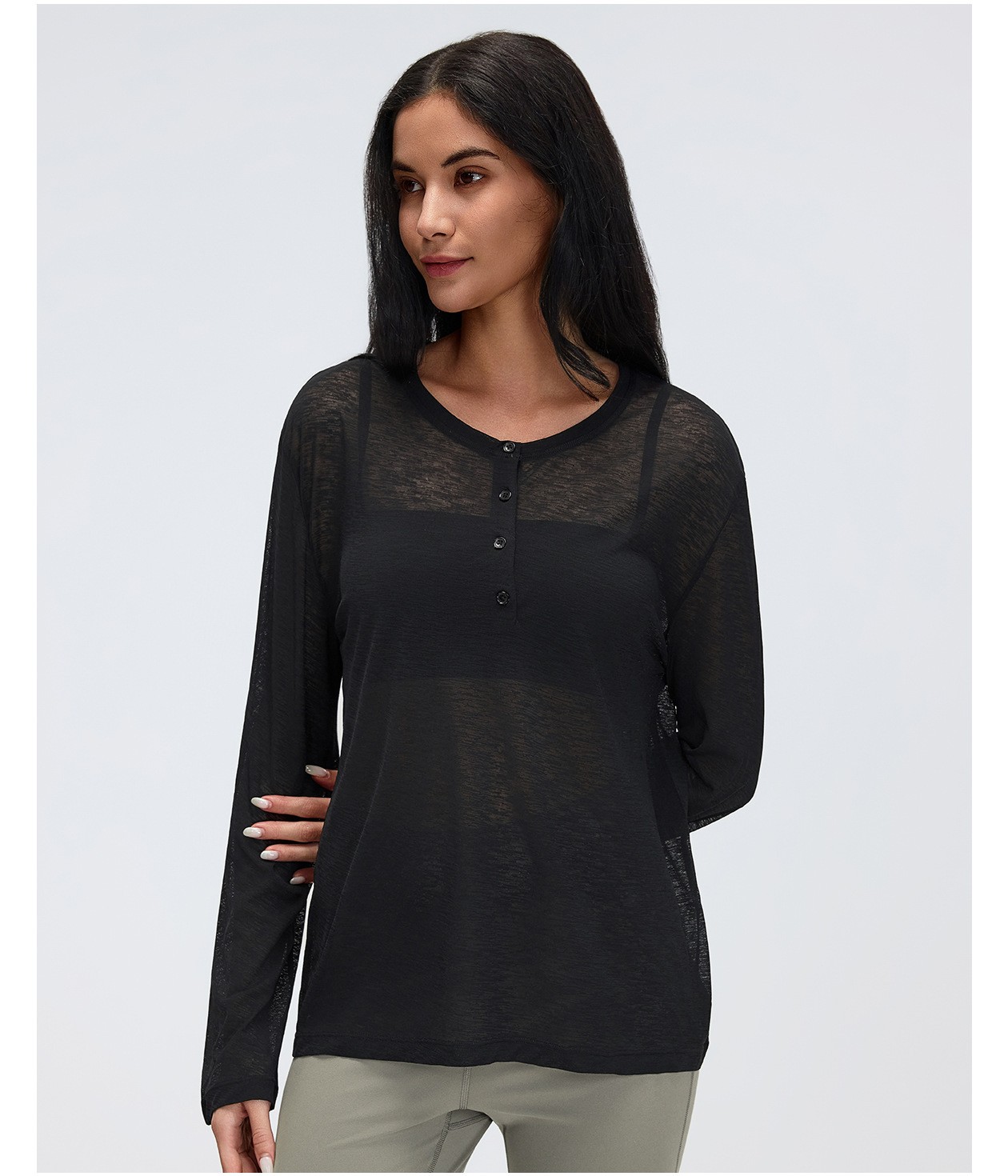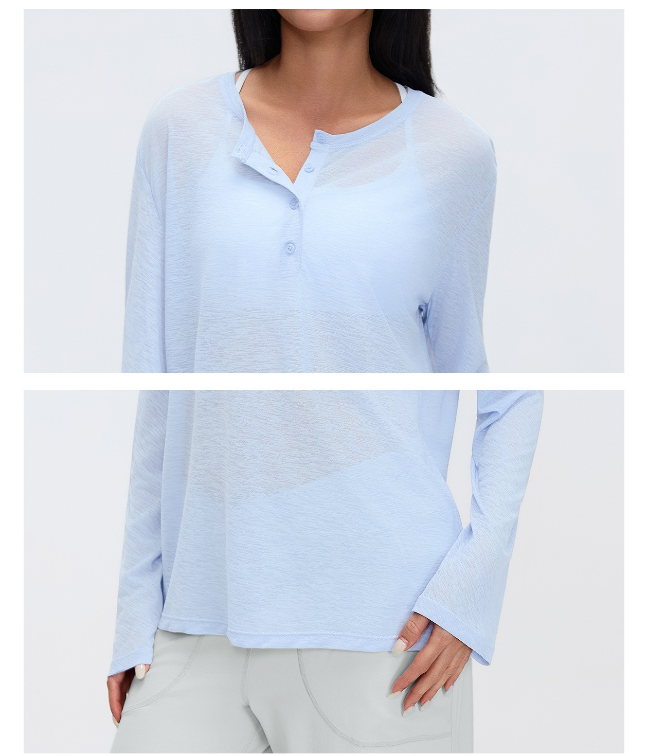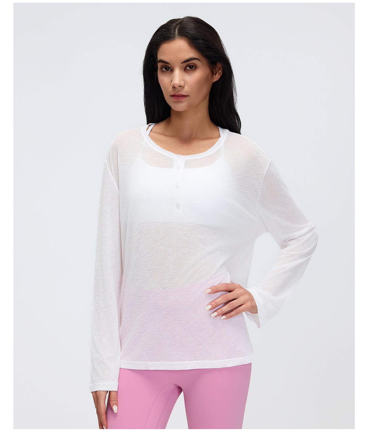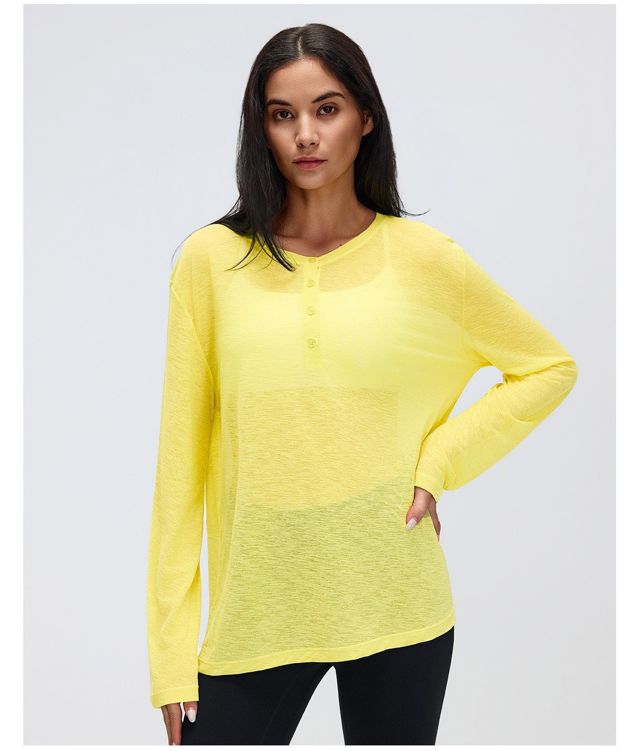 4. Loose Breathable Yoga Cover Up for Women, Long Sleeve Gym Top, Lightweight Casual Running Fitness T-Shirt: Women's yoga long sleeve cover up: loose, breathable and lightweight, perfect for yoga, gym, running and casual wear. Soft fabric keeps you comfortable all day. Direct factory bulk customization available by Omi Apparel Limited. High-quality material, exquisite craftsmanship, customizable size, color and logo. Fast delivery, competitive price. Ideal for wholesale and brand customization. Choose us for reliable fitness apparel supply.
