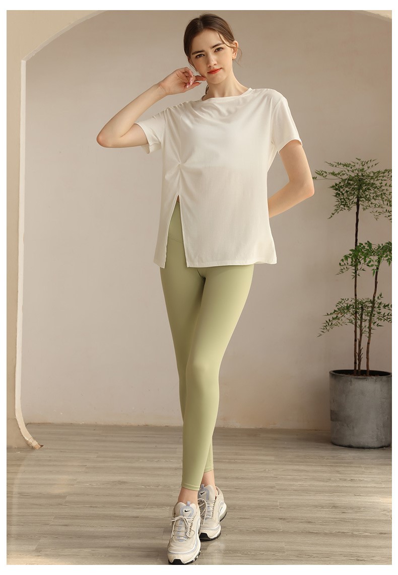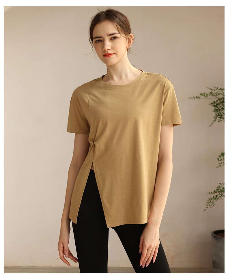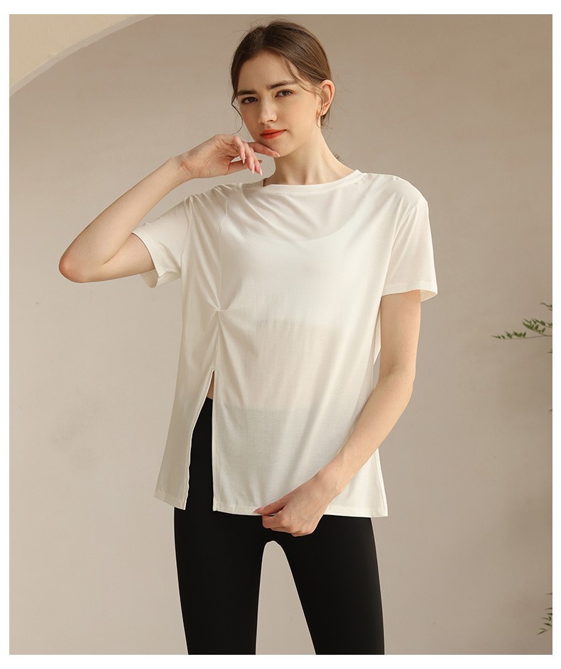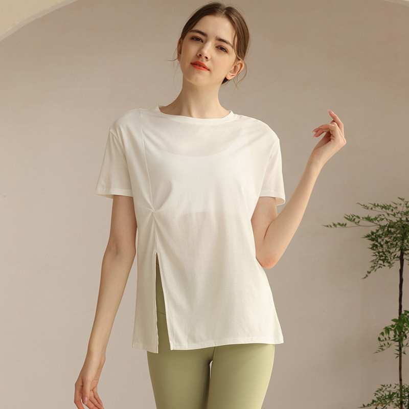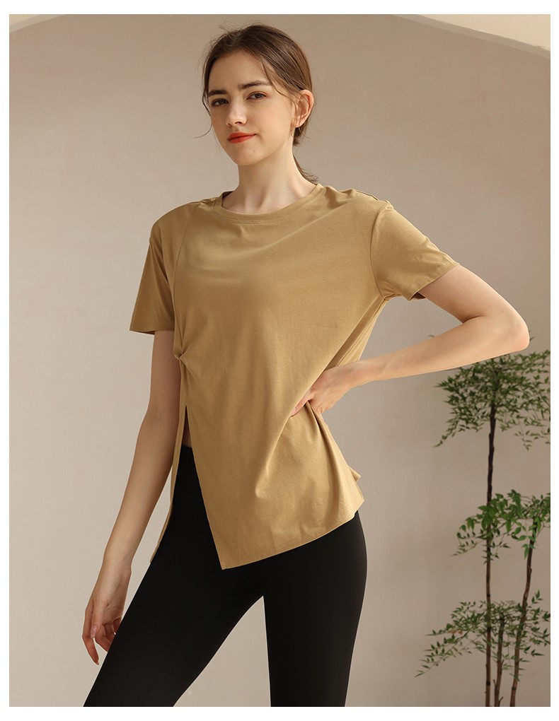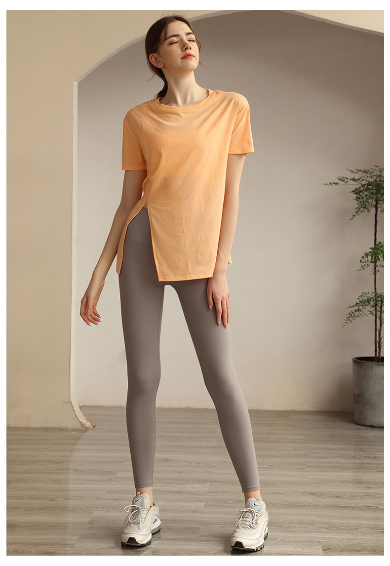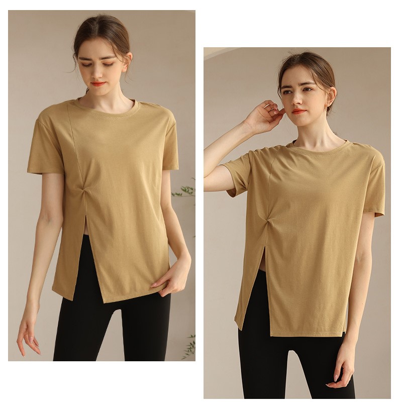 Womens yoga t-shirts round neck short sleeve side split running tshirts